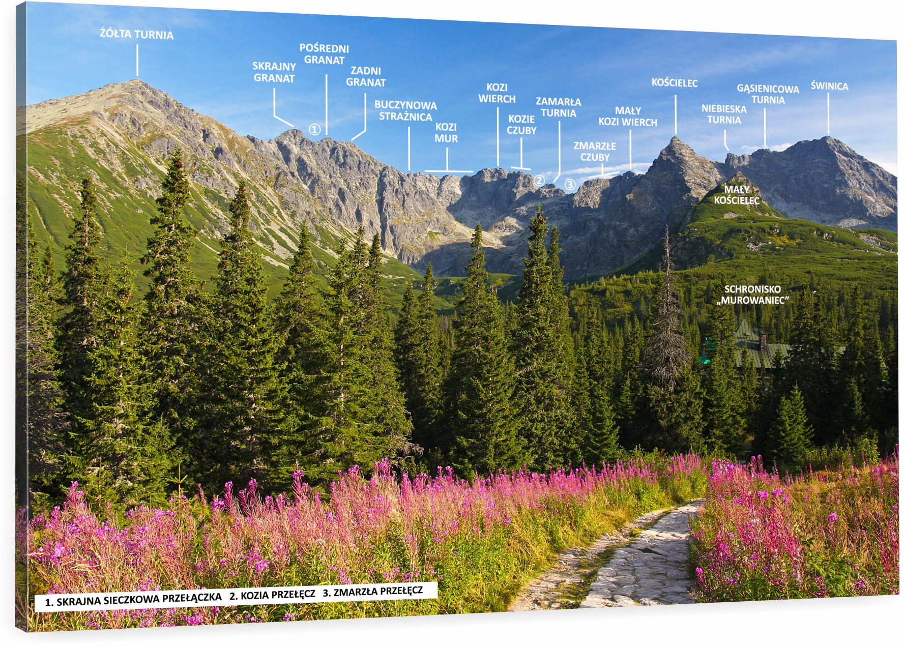 OBRAZ NA PŁÓTNIE panorama z HALI GĄSIENICOWEJ szczyty nazwy TATRY GÓRY