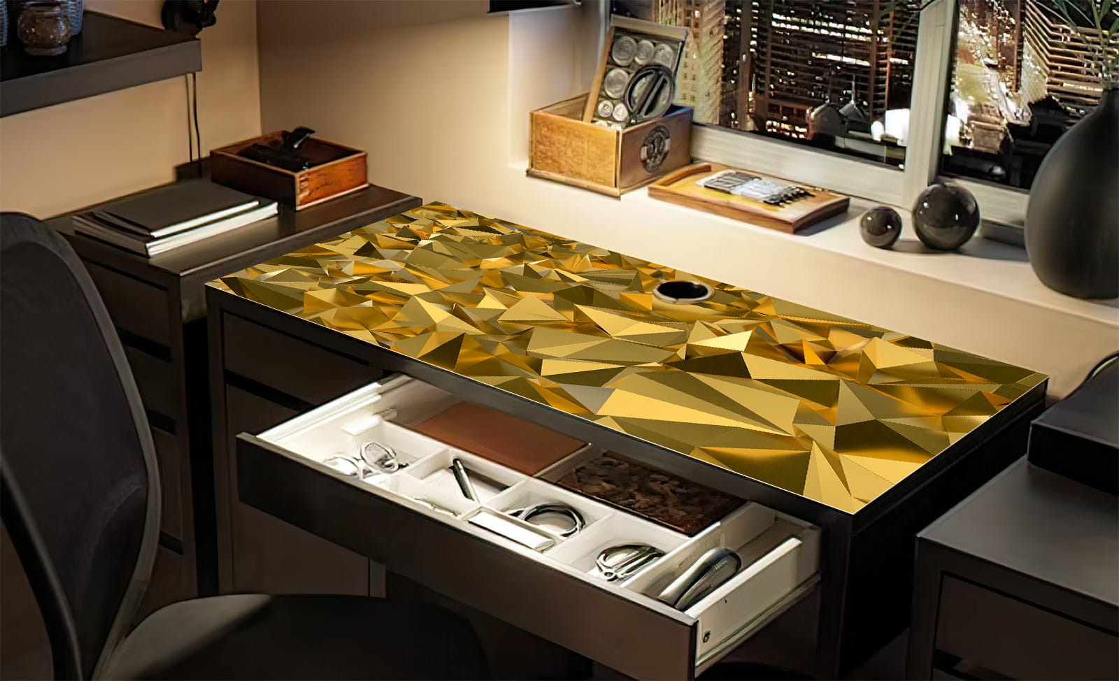 Podkładka do biura mata na biurko z IKEA MICKE złote trójkąty