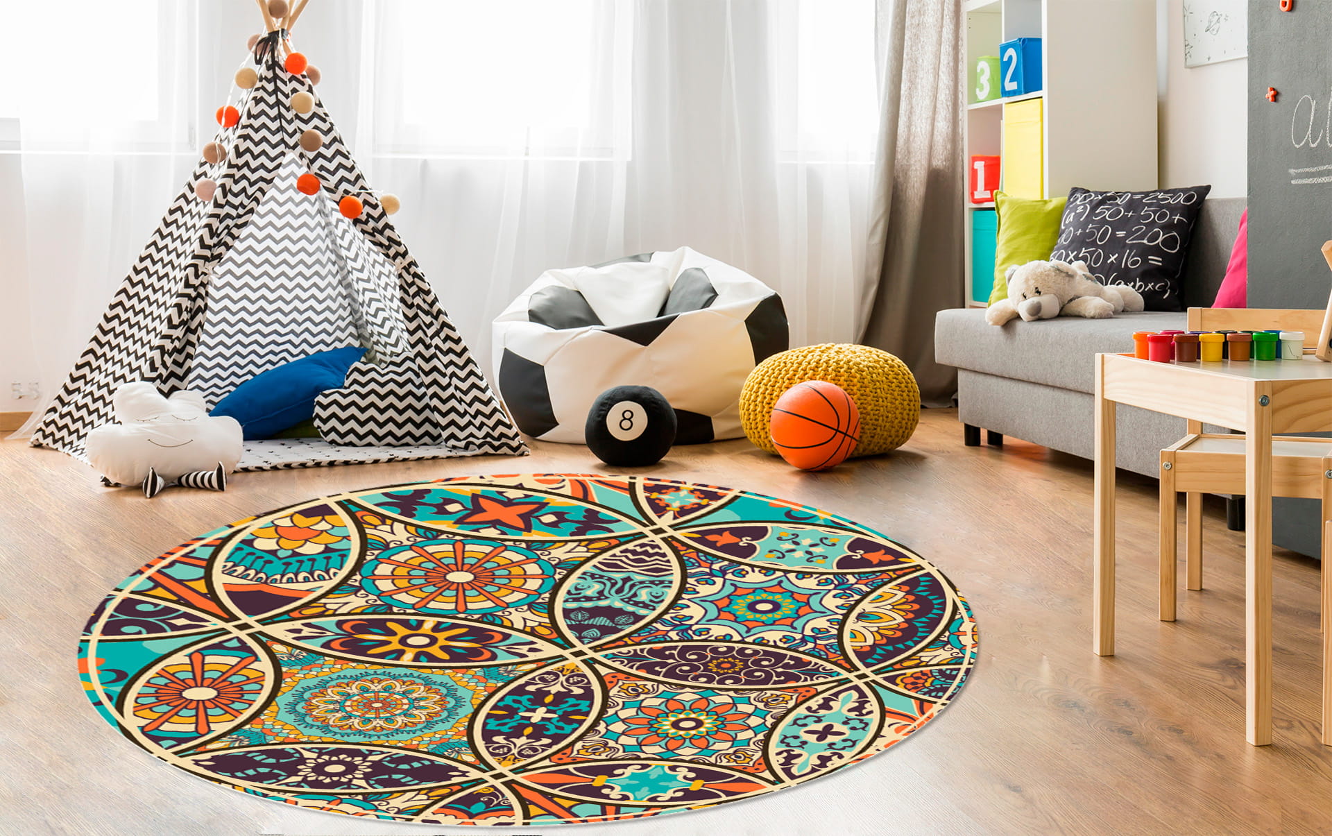 ANTYPOŚLIZGOWA MATA POD FOTEL OKRĄGŁA KOLOROWY PATCHWORK