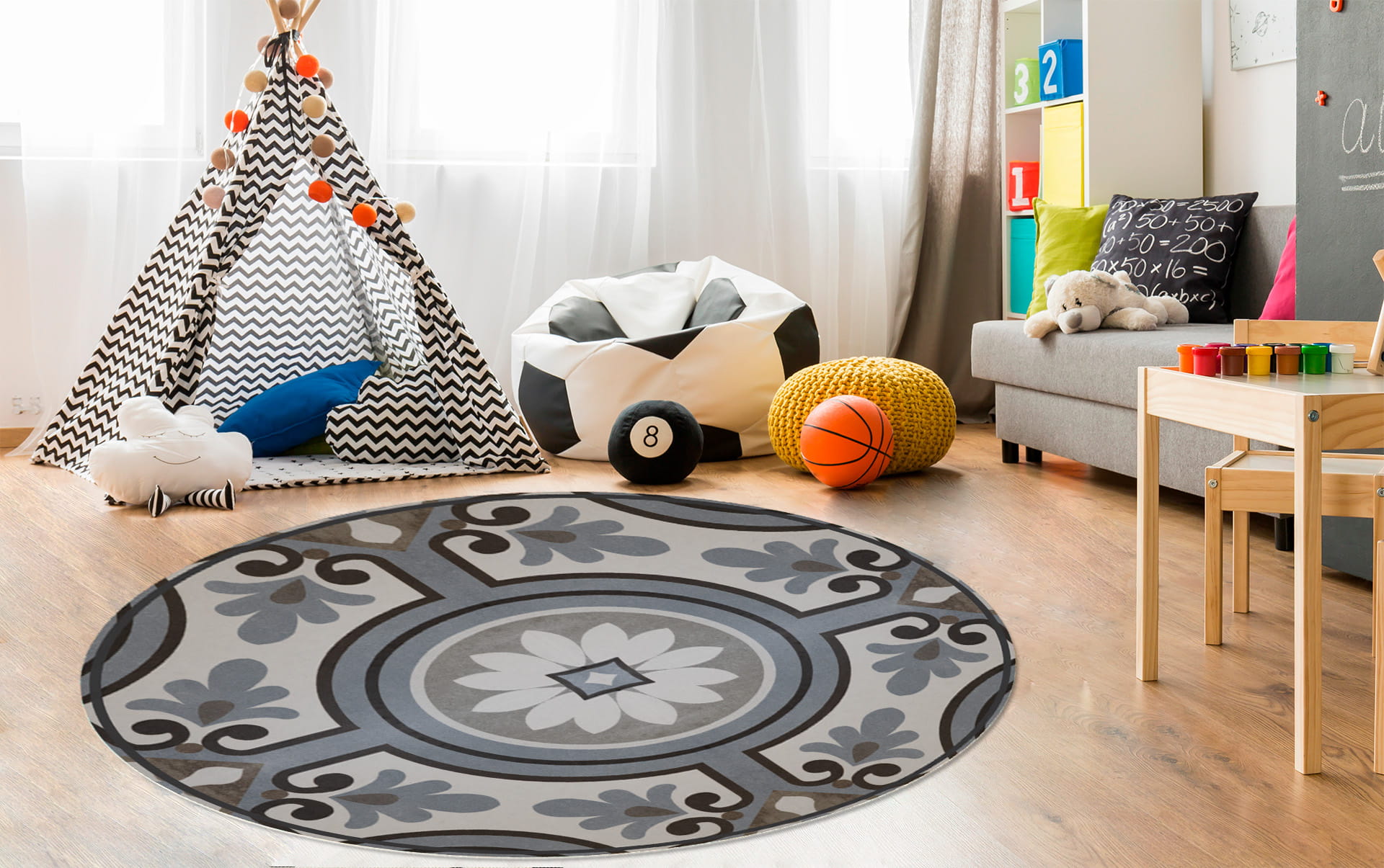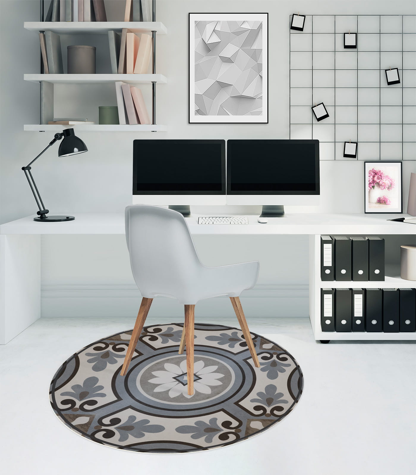 ANTYPOŚLIZGOWA MATA POD FOTEL OKRĄGŁA SZARY WZÓR