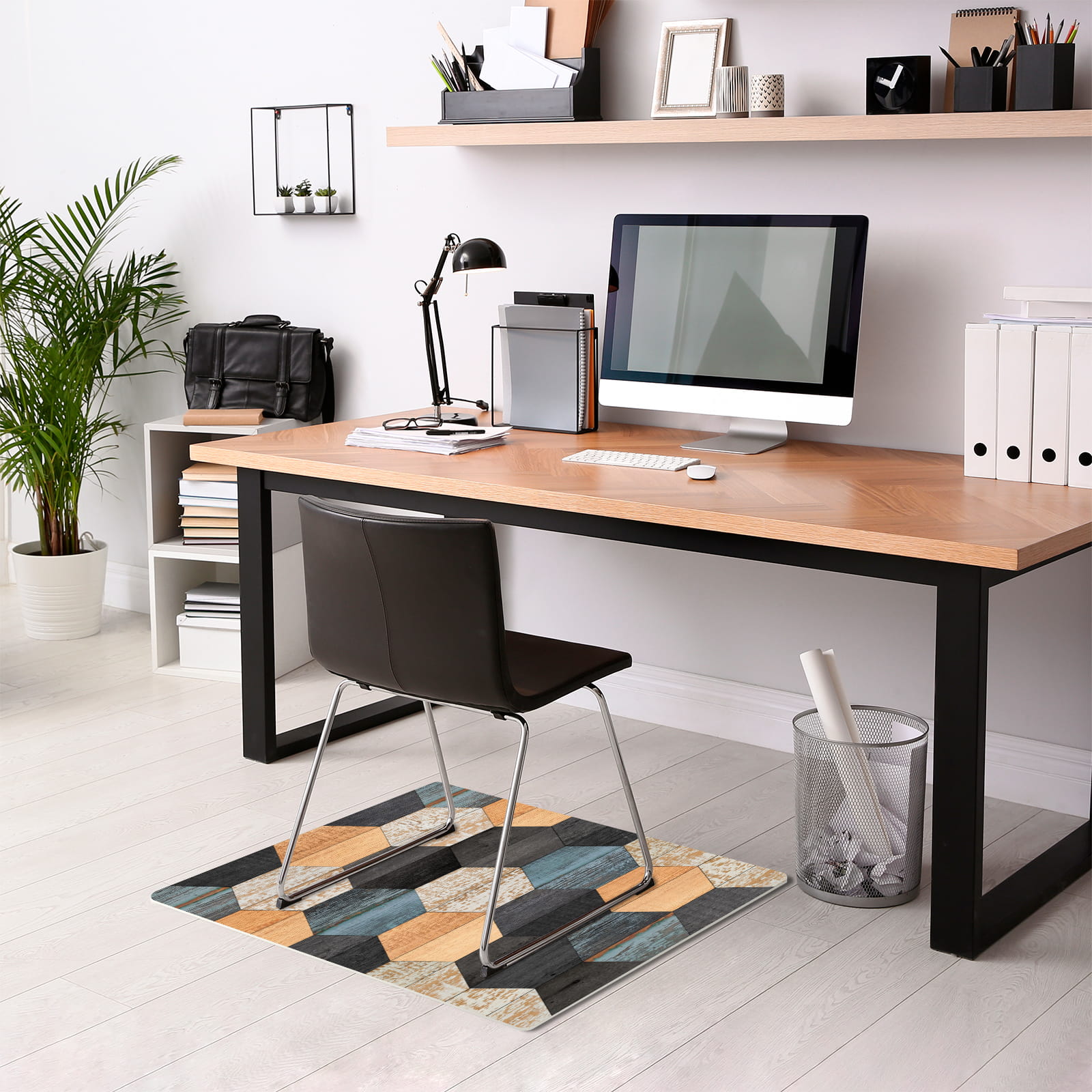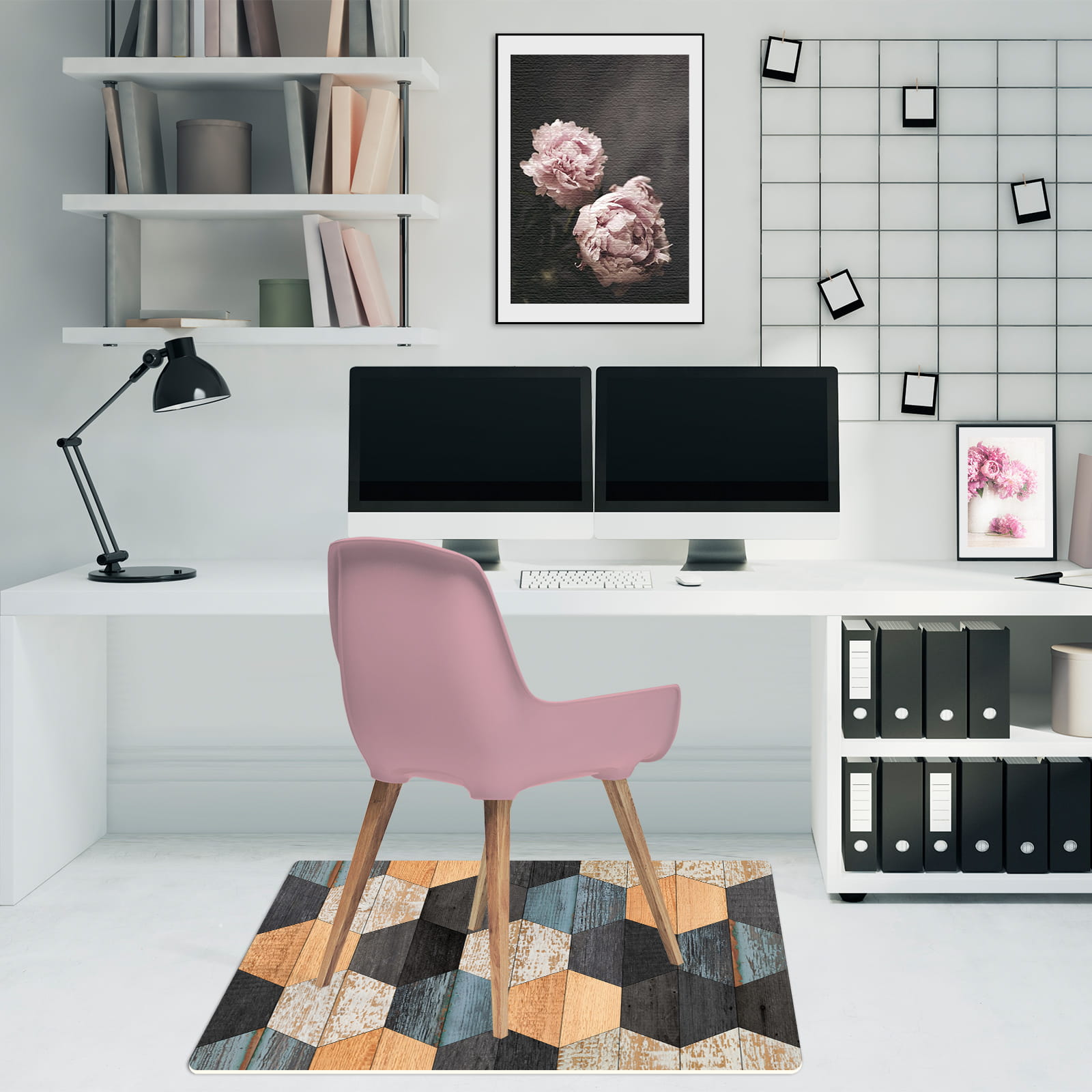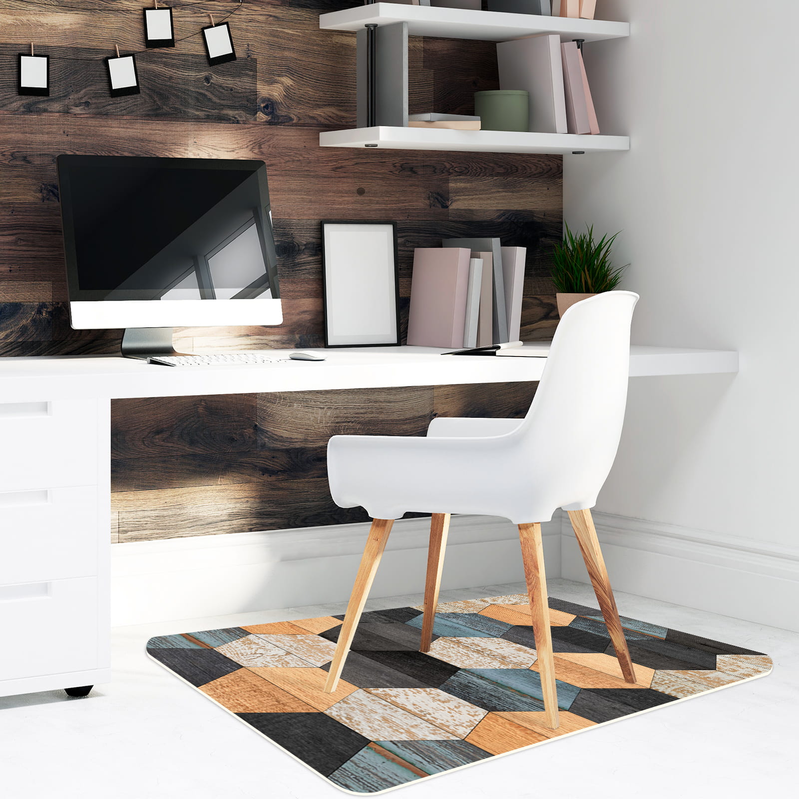 Antypoślizgowa mata winylowa pod fotel krzesło SZEŚCIANY DREWNO