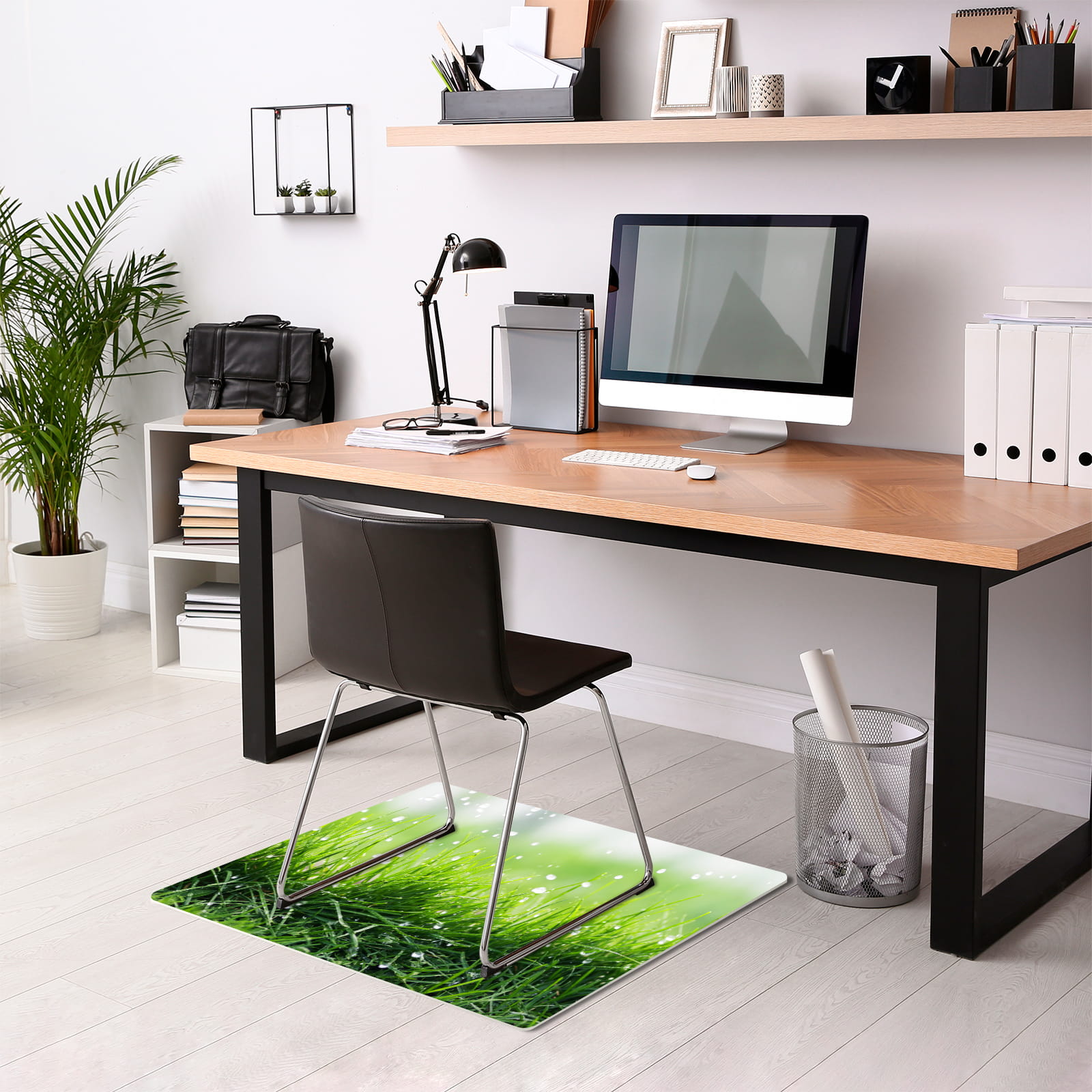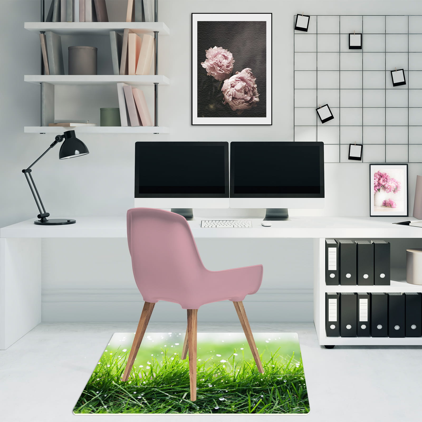Antypoślizgowa mata winylowa pod fotel krzesło ZIELONA TRAWA ROSA