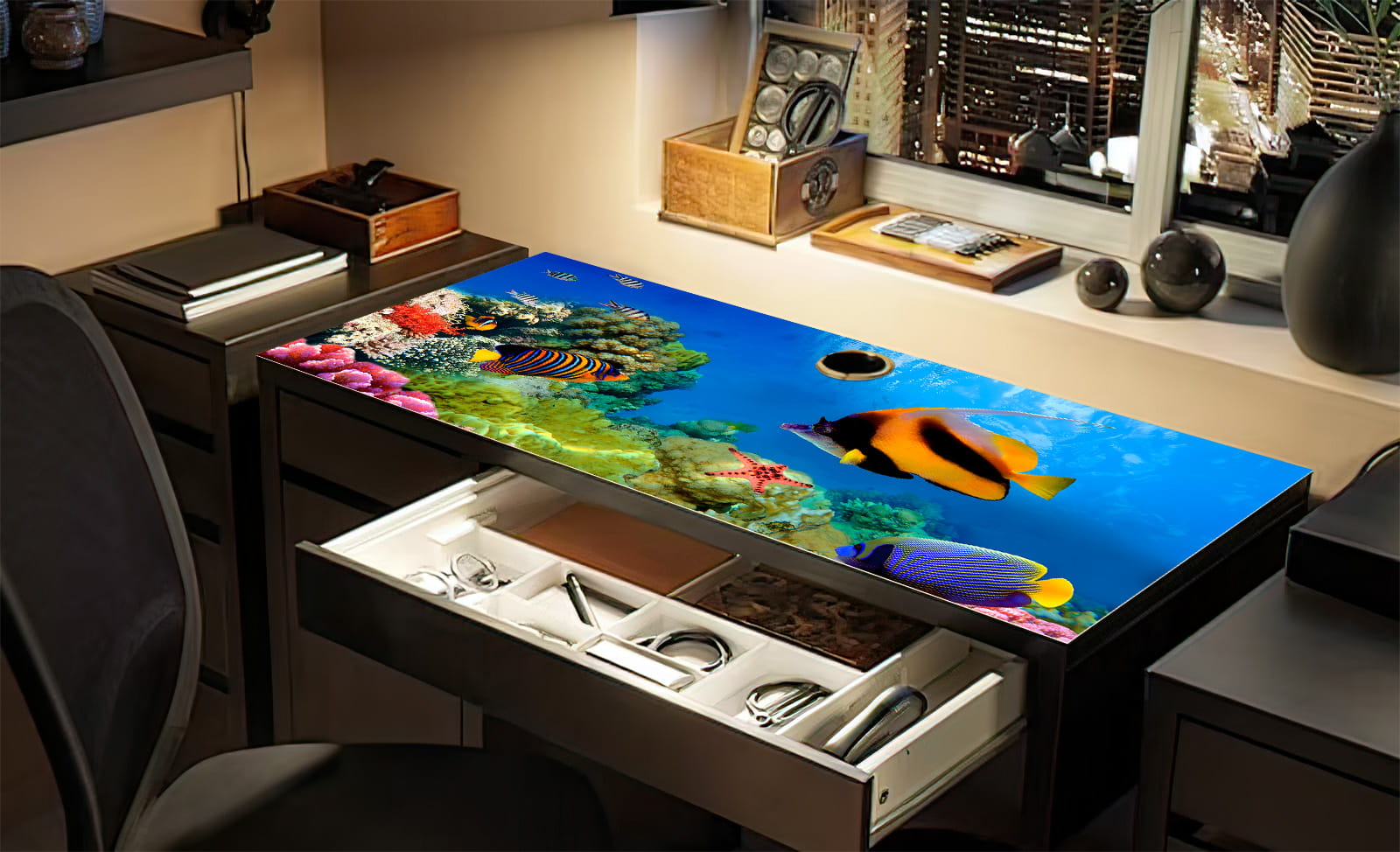 Antypoślizgowa podkładka na biurko ikea micke podwodny świat ryby