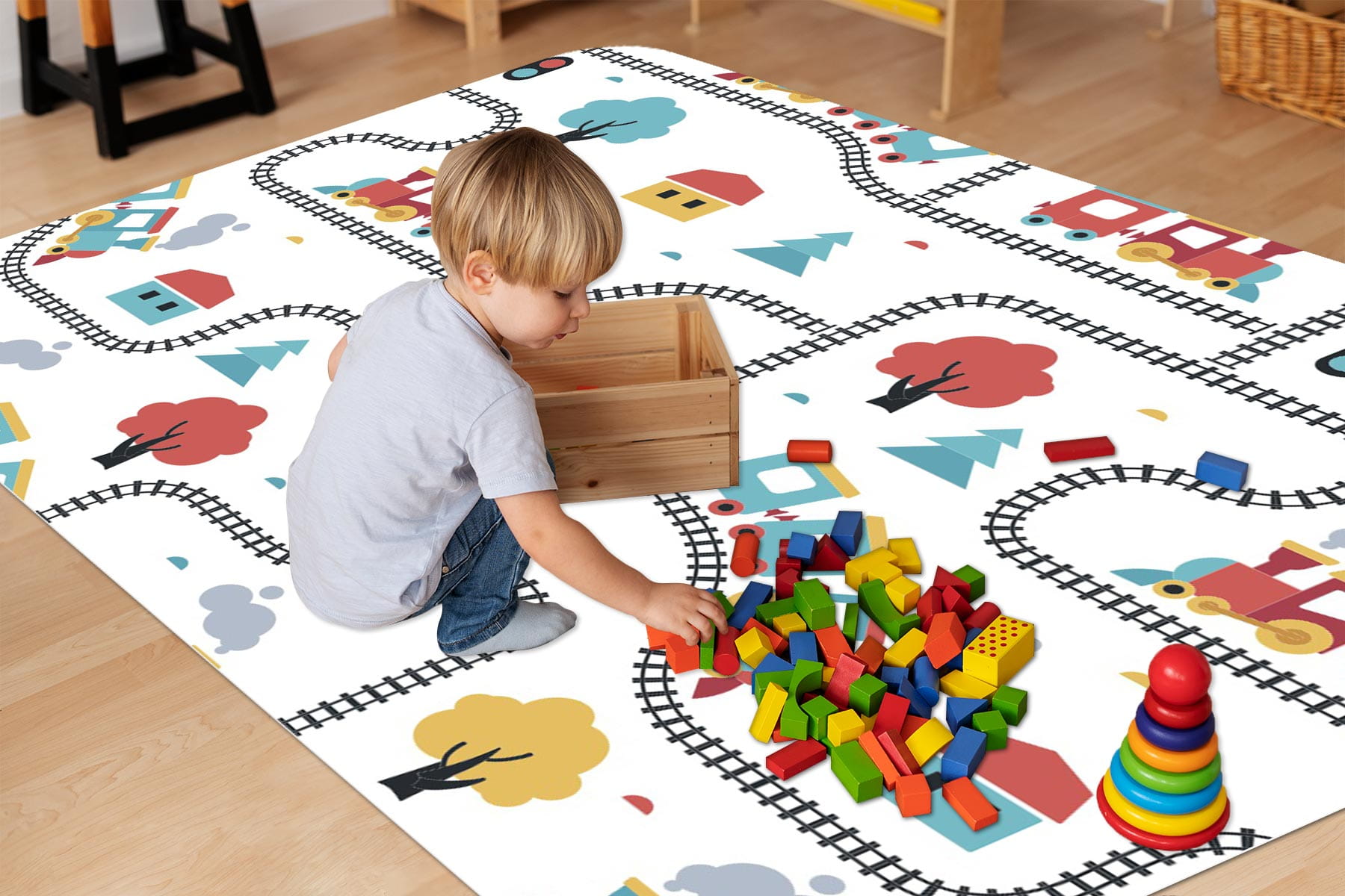 DYWANIK WINYLOWY MATA ANTYALERGICZNA dla chłopca droga pociąg tory