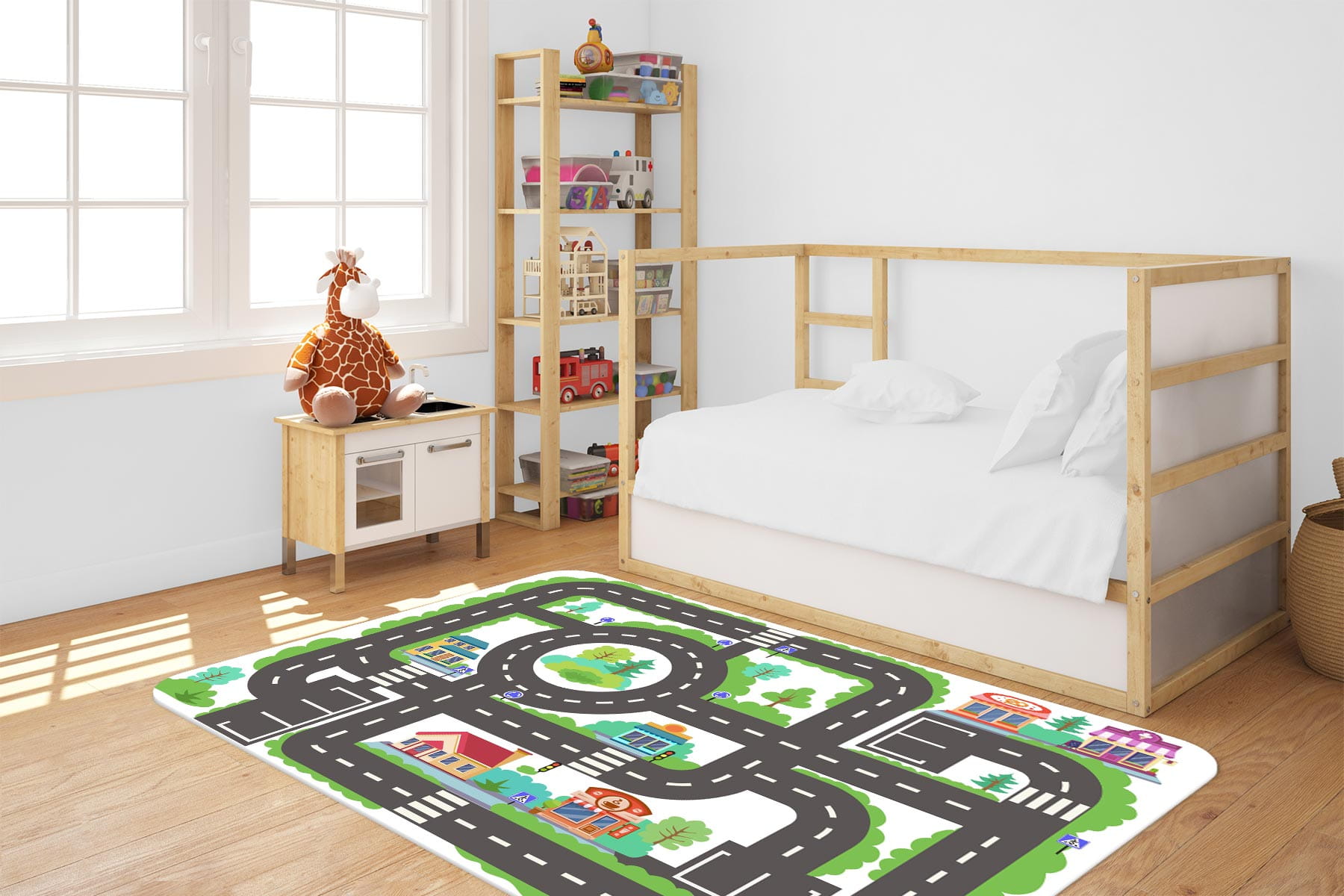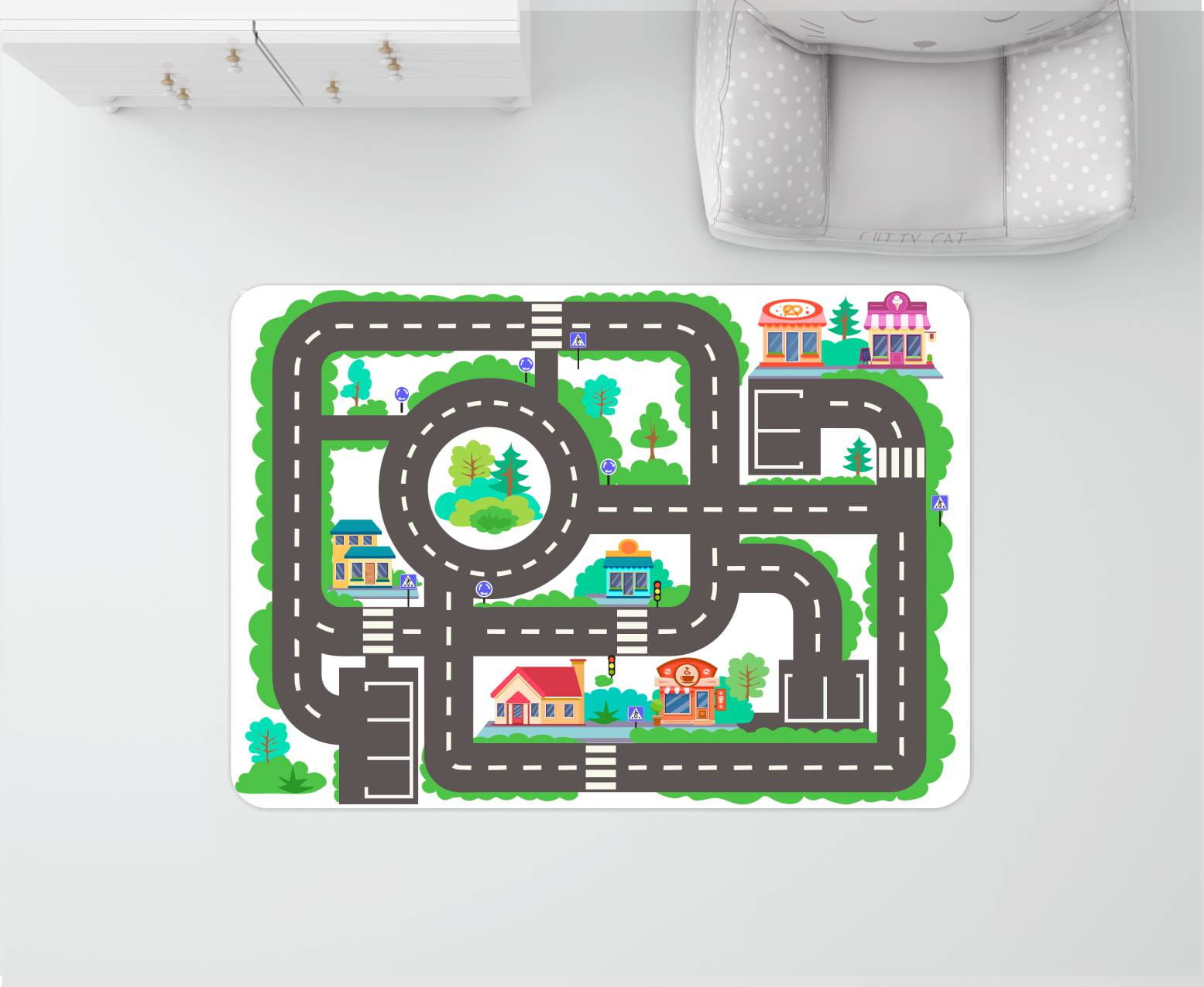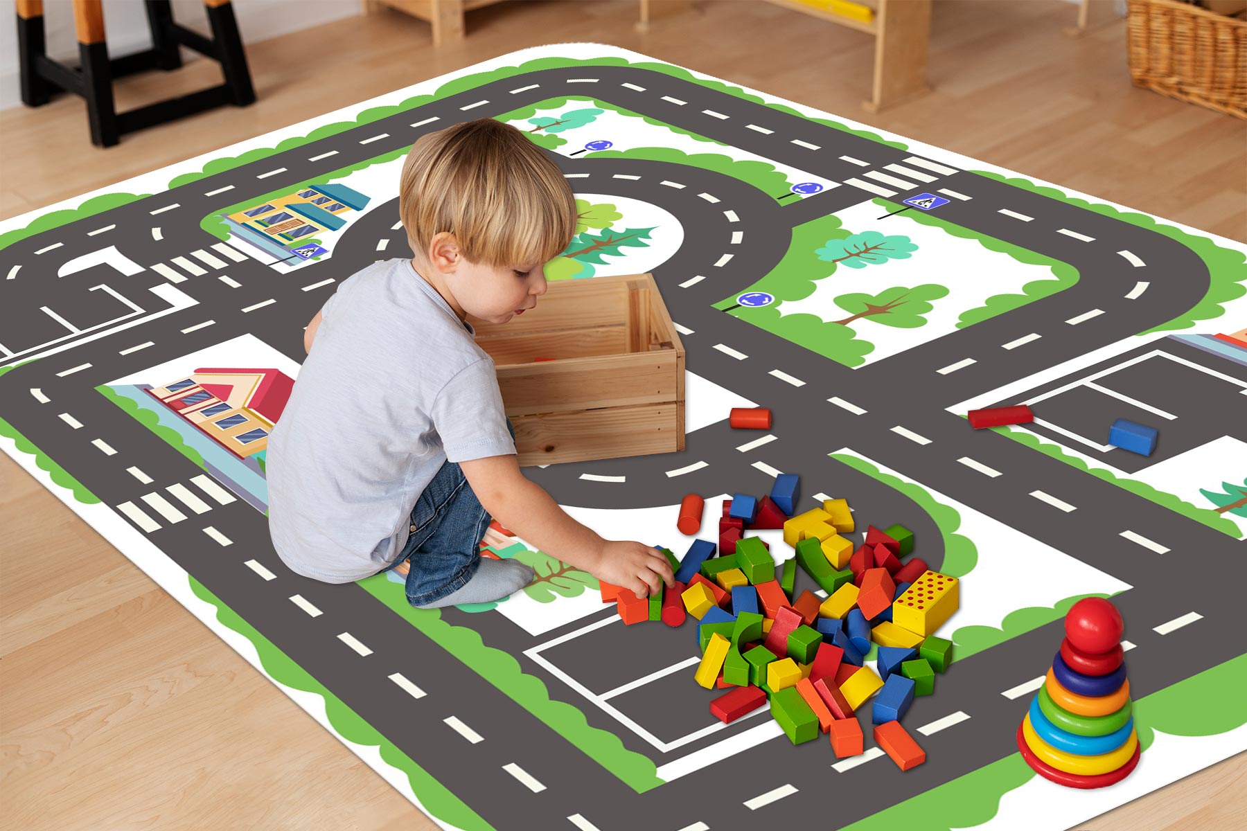 DYWANIK WINYLOWY MATA ANTYALERGICZNA dla dzieci droga miasto drzewa