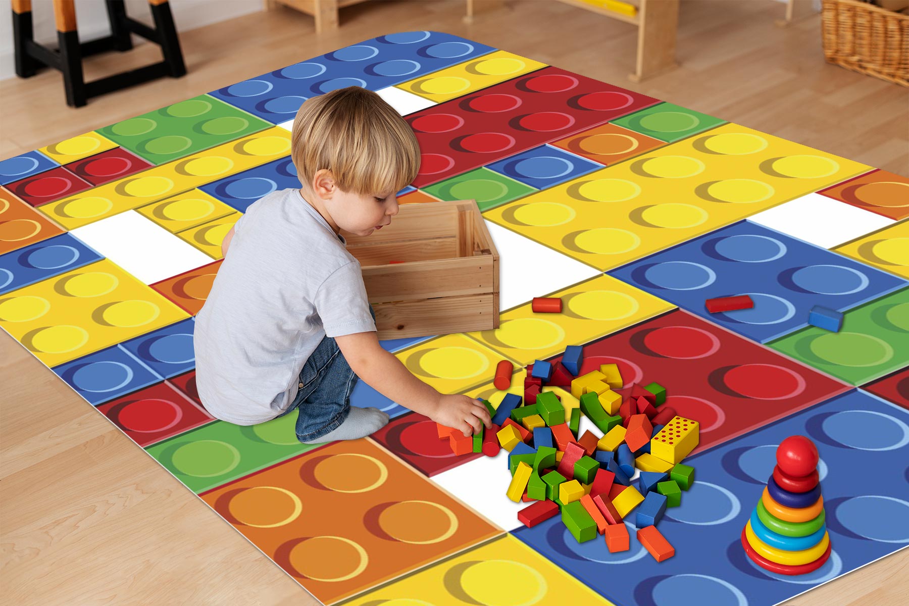 DYWANIK WINYLOWY MATA ANTYALERGICZNA dla dzieci klocki kolorowe