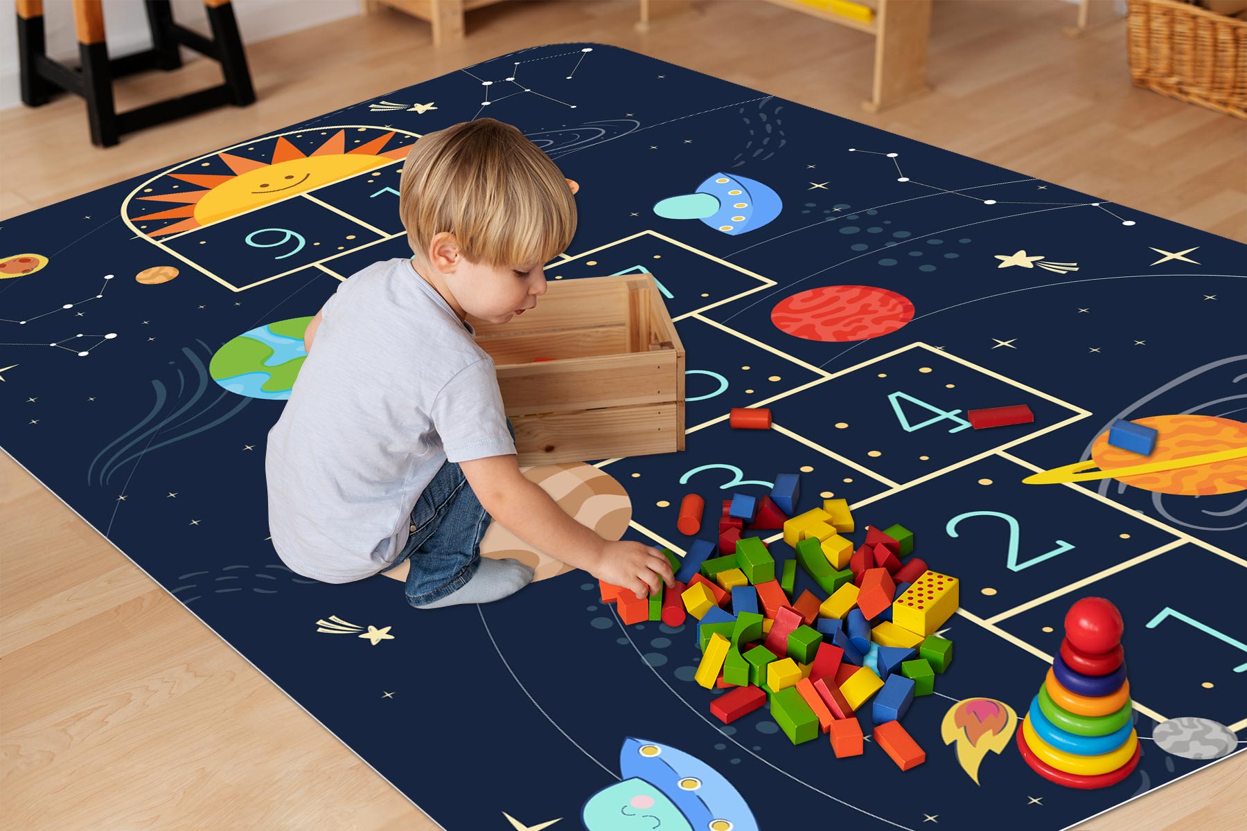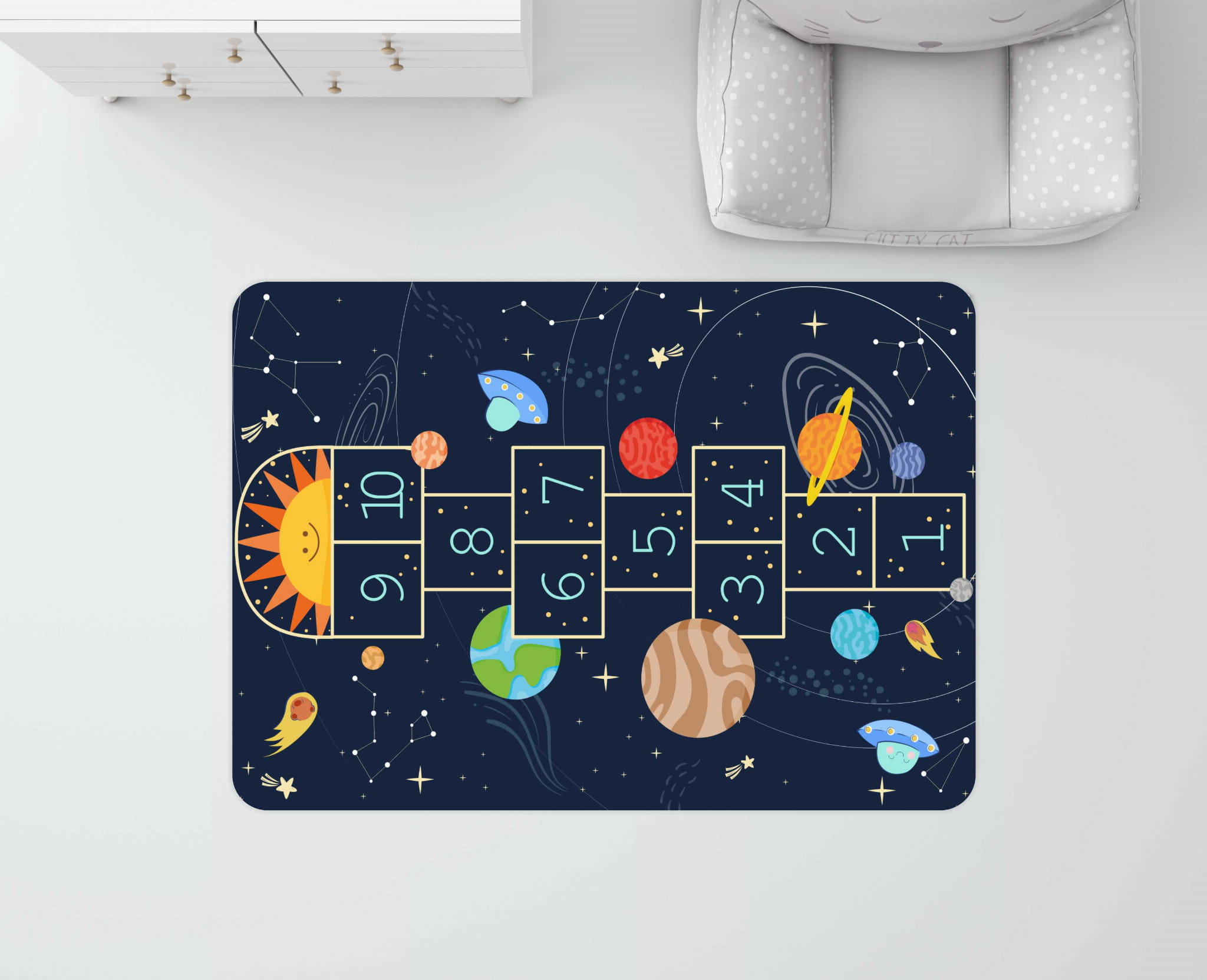 DYWANIK WINYLOWY MATA ANTYALERGICZNA dla dzieci kosmos gwiazdy klasy