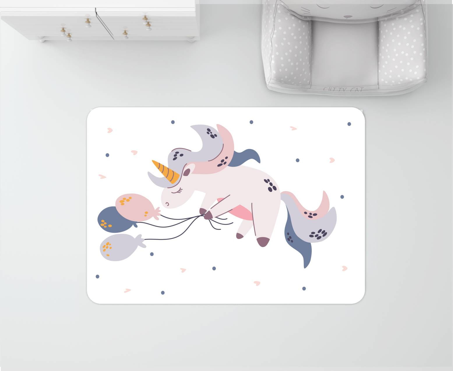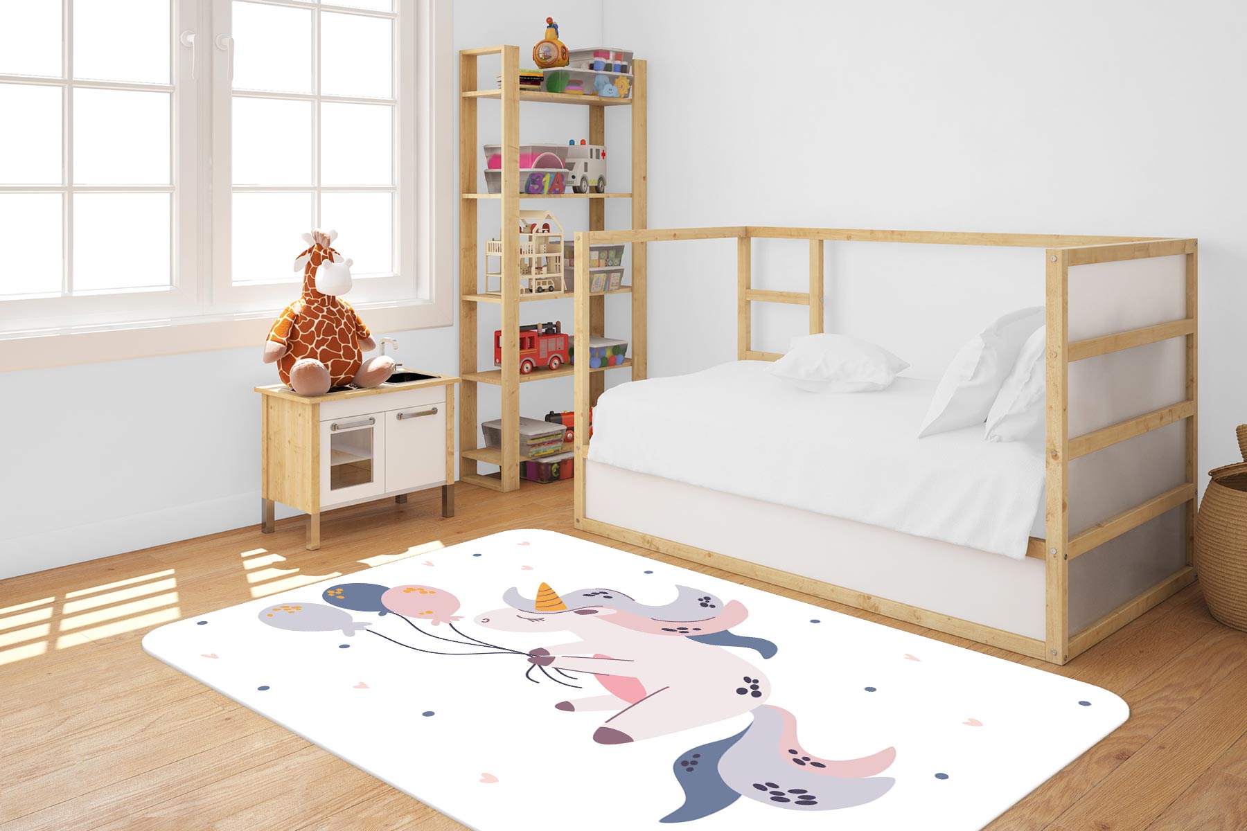 DYWANIK WINYLOWY MATA ANTYALERGICZNA dla dziewczynek jednorożec balony