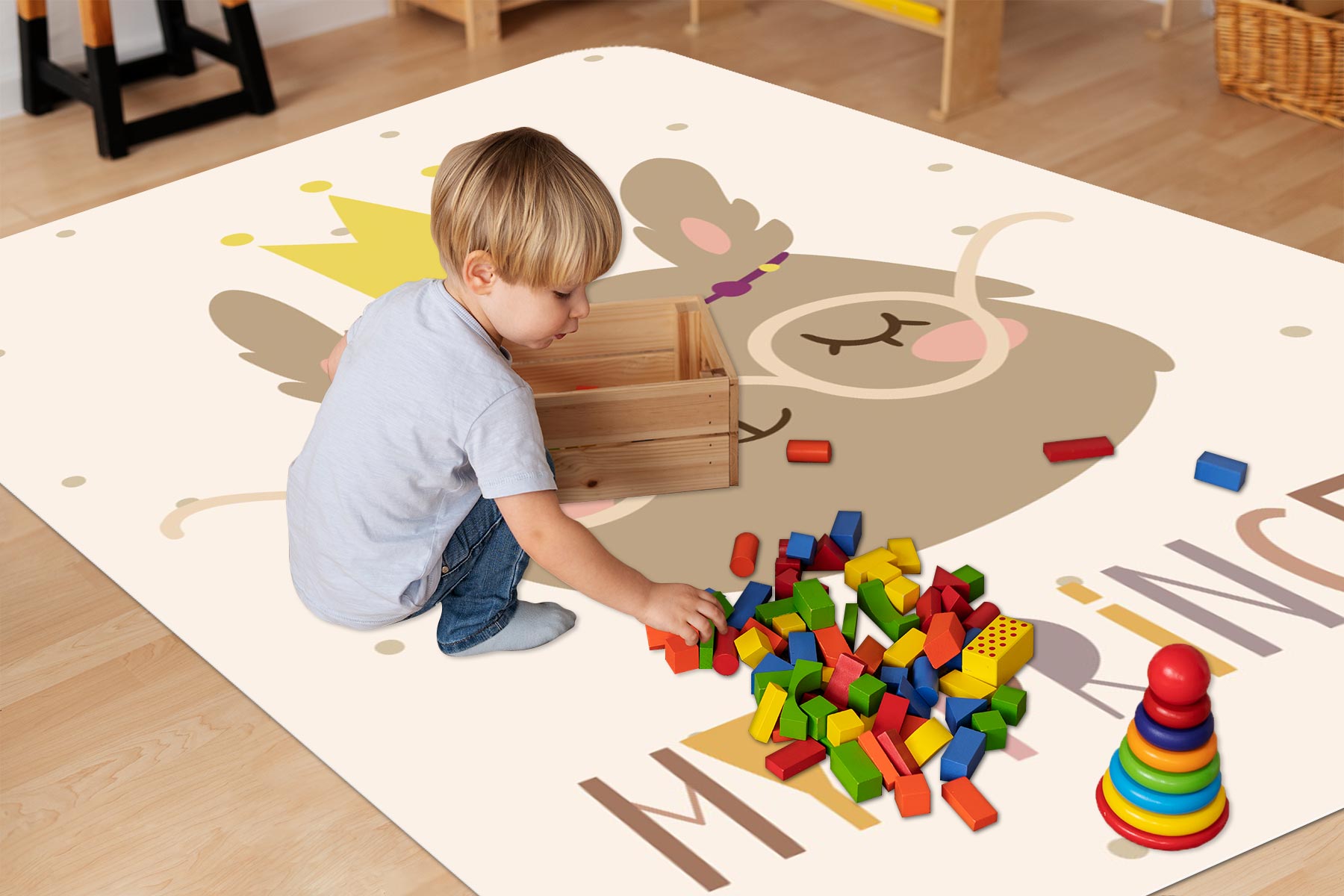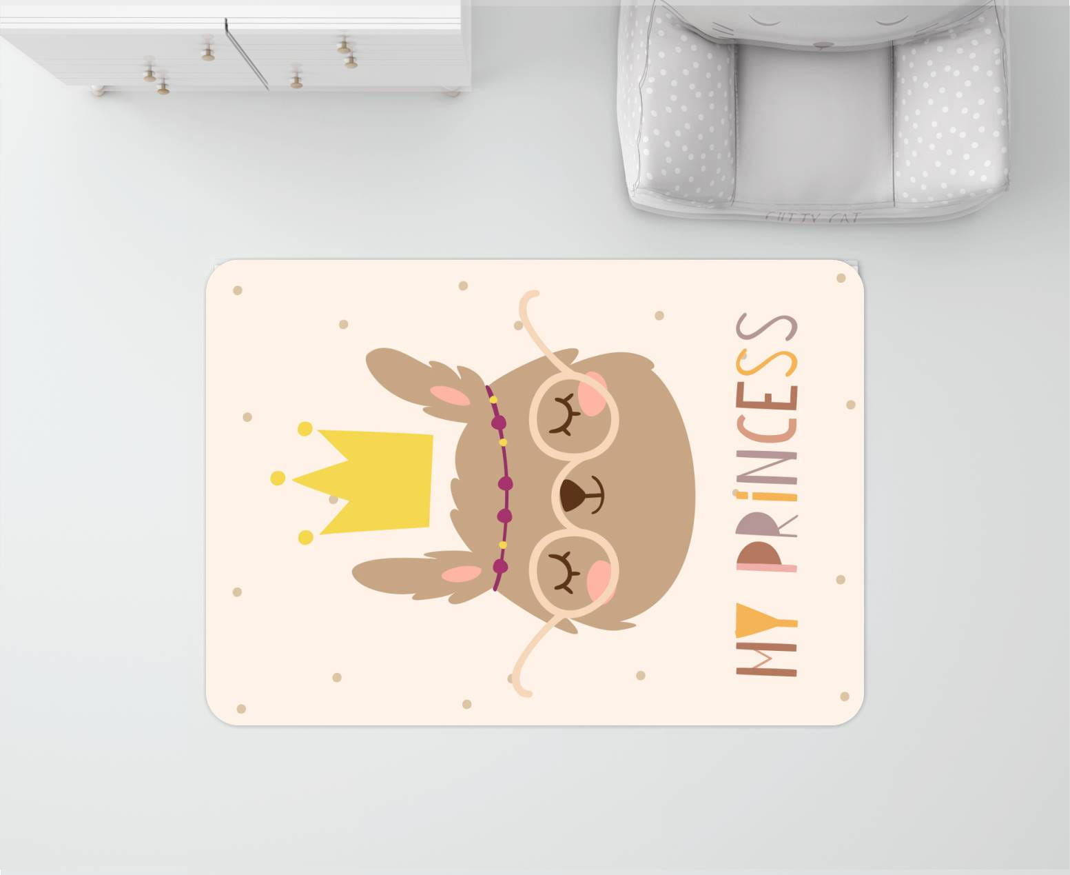 DYWANIK WINYLOWY MATA ANTYALERGICZNA dla dziewczynek królik korona brąz