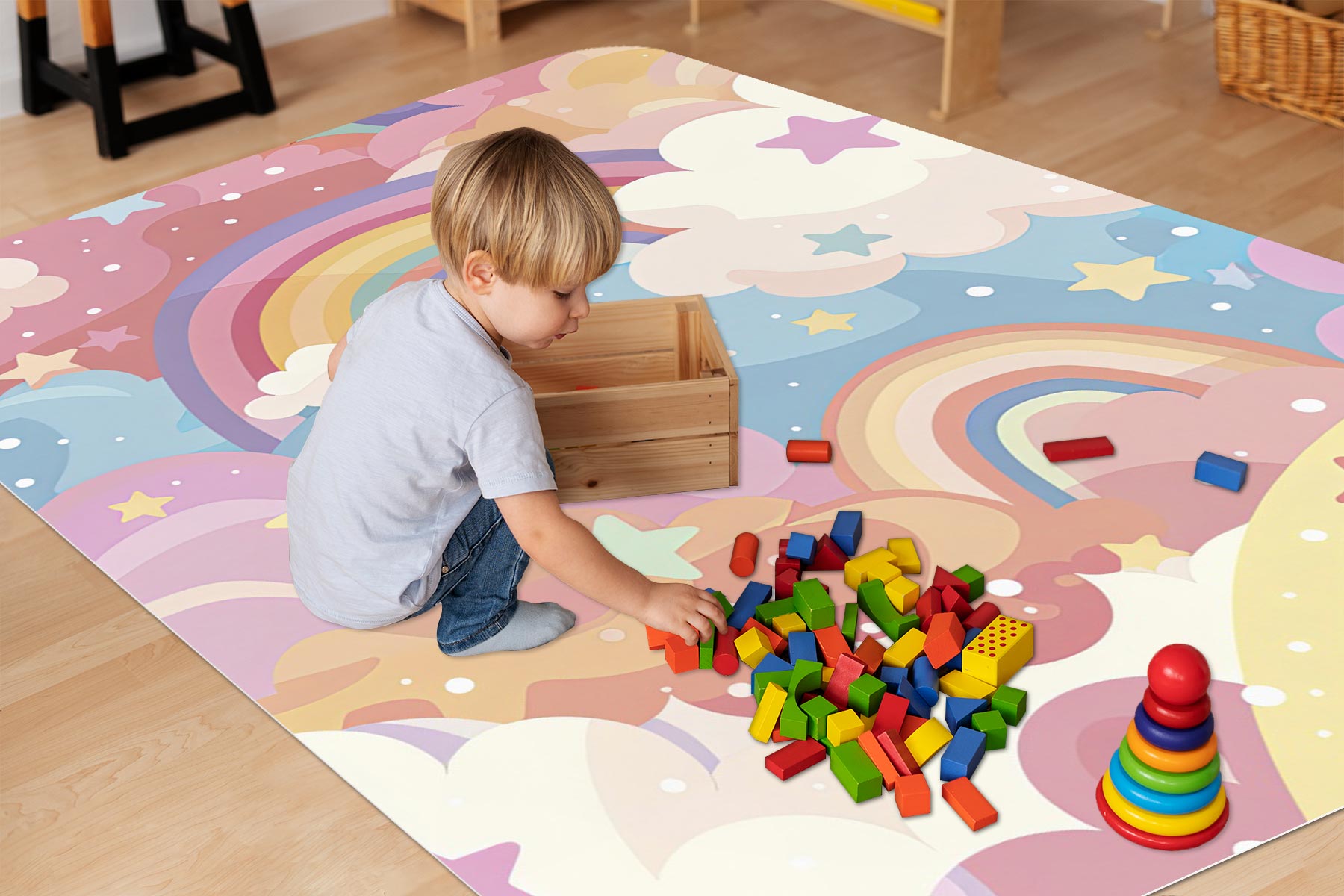 DYWANIK WINYLOWY MATA ANTYALERGICZNA dla dziewczynek tęcza kolory