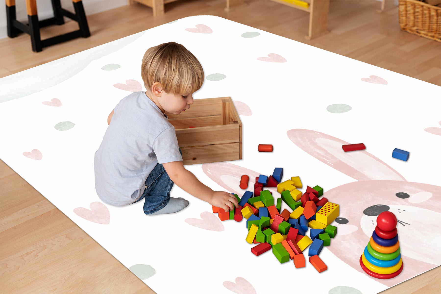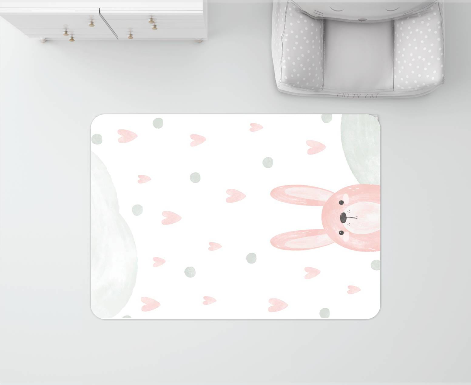 DYWANIK WINYLOWY MATA ANTYALERGICZNA dla dziewczynki królik różowy