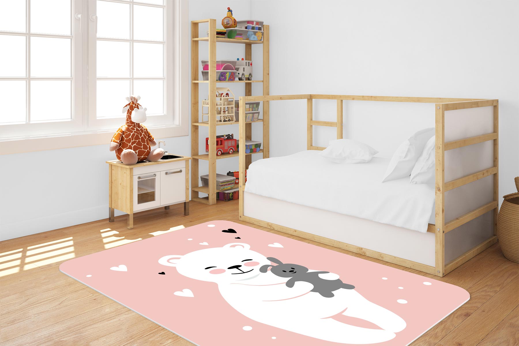DYWANIK WINYLOWY MATA ANTYALERGICZNA dla dziewczynki miś królik serce