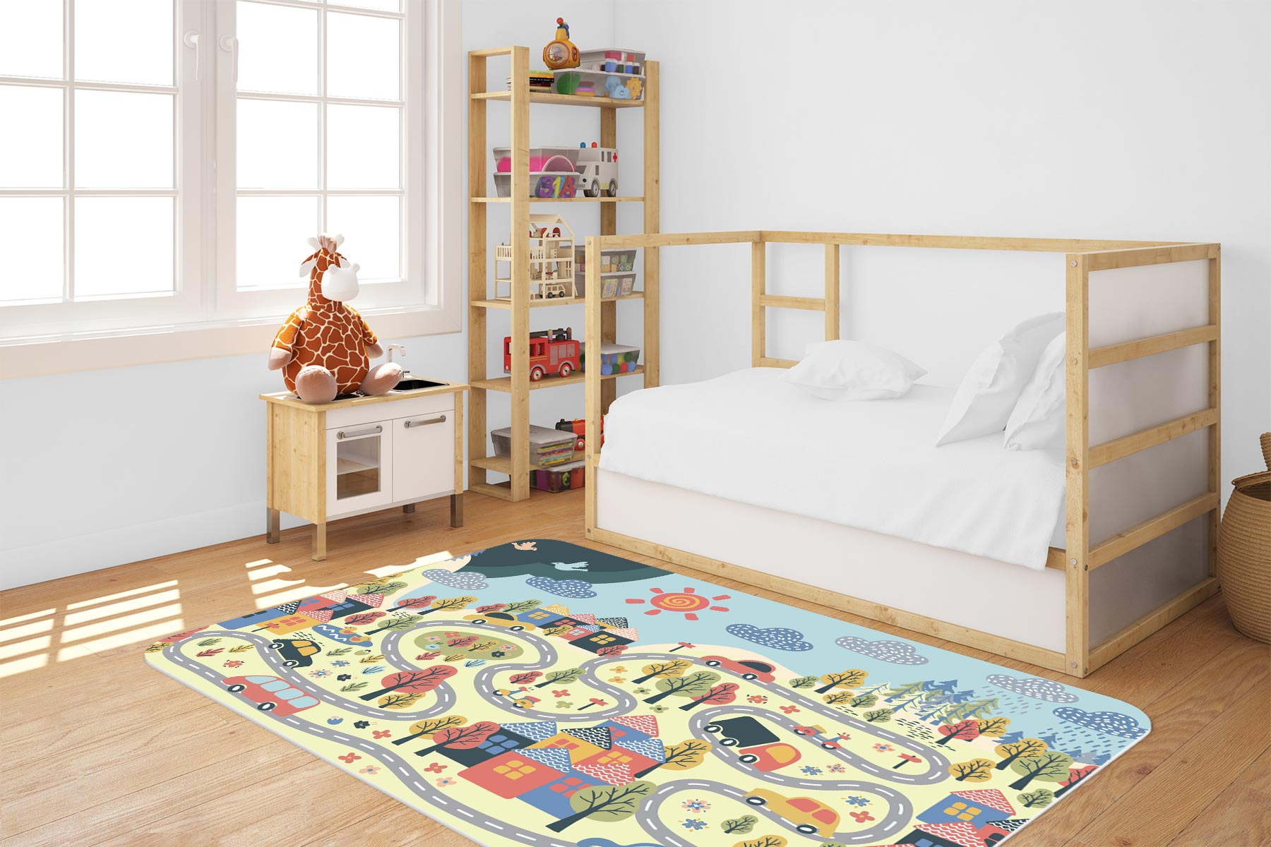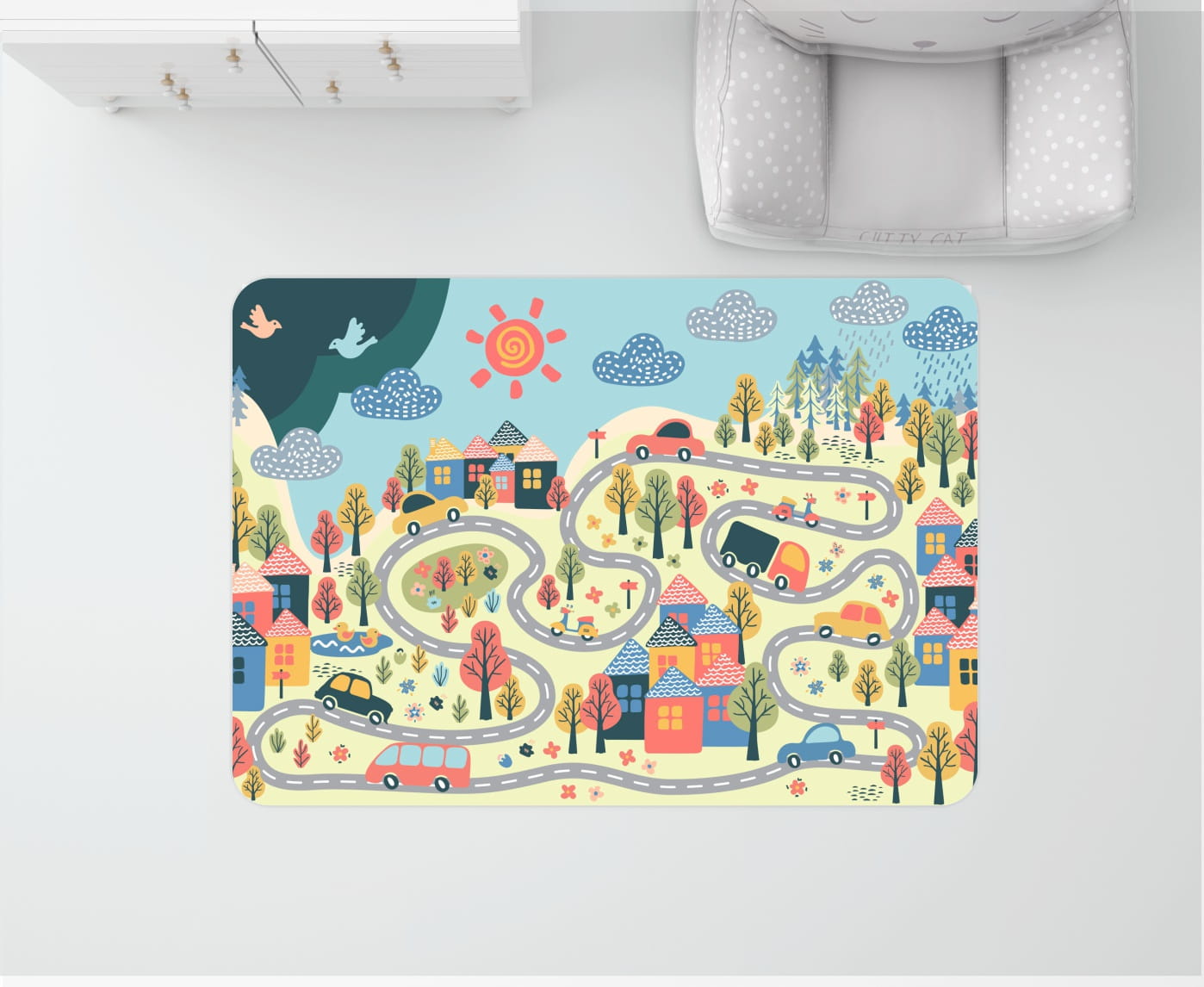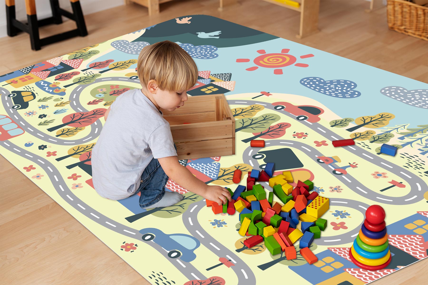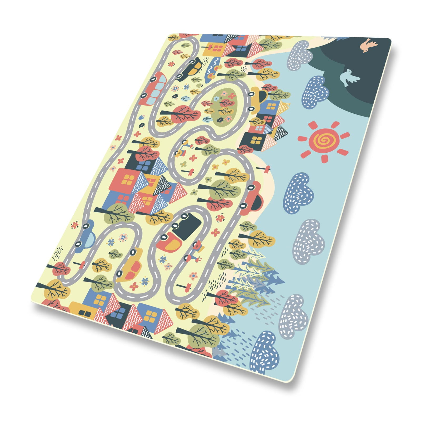 DYWANIK WINYLOWY MATA PODŁOGOWA dla dzieci miasteczko jezioro las