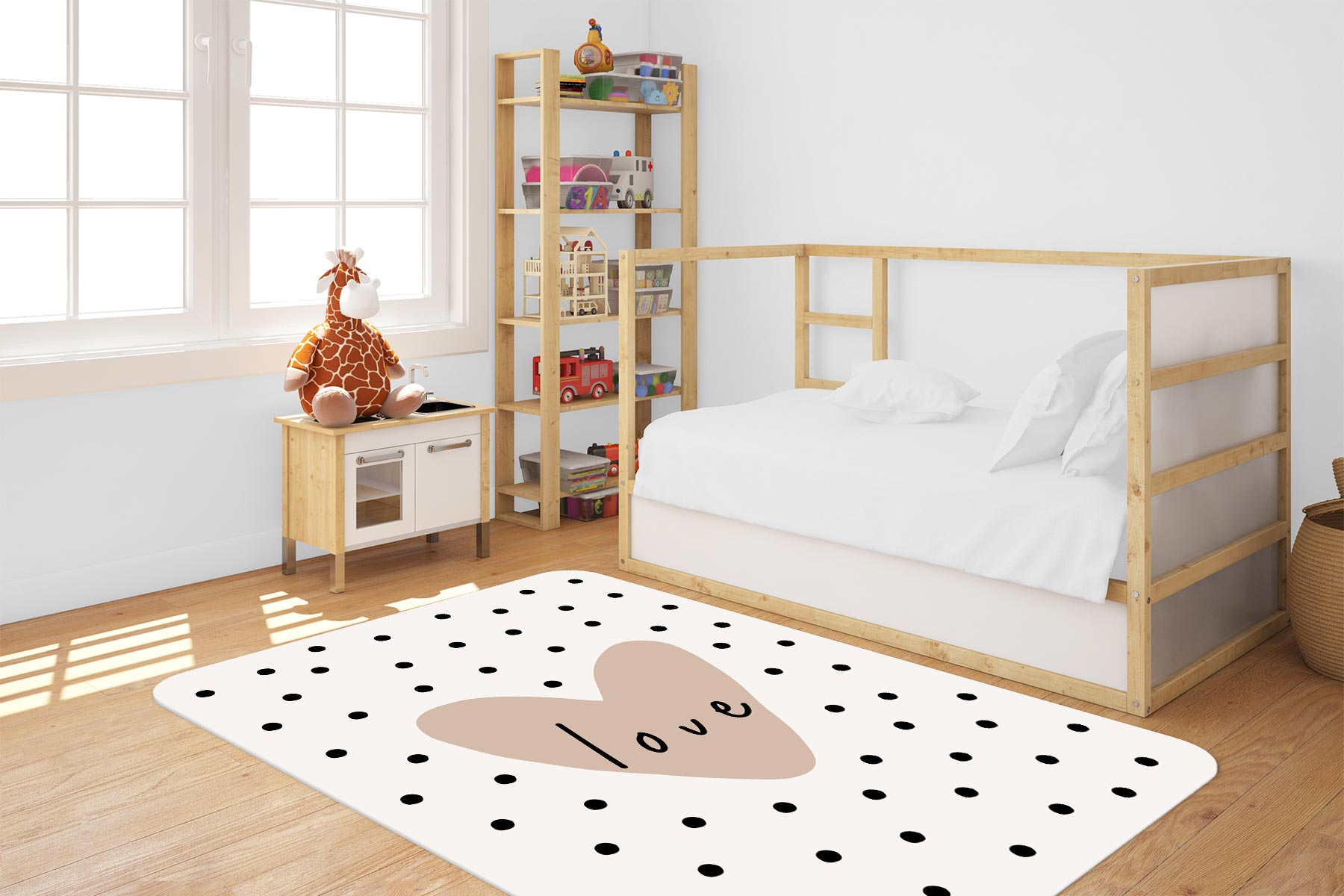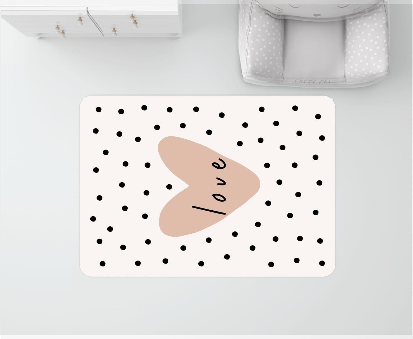 DYWANIK WINYLOWY MATA PODŁOGOWA dla dziewczynki serce kropki