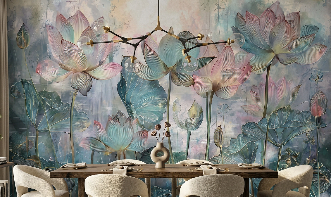 Stylistyka Zen: Motyw lotosu, symbolu czystości i odrodzenia, wprowadza do wnętrza kojącą energię i wizualną równowagę.