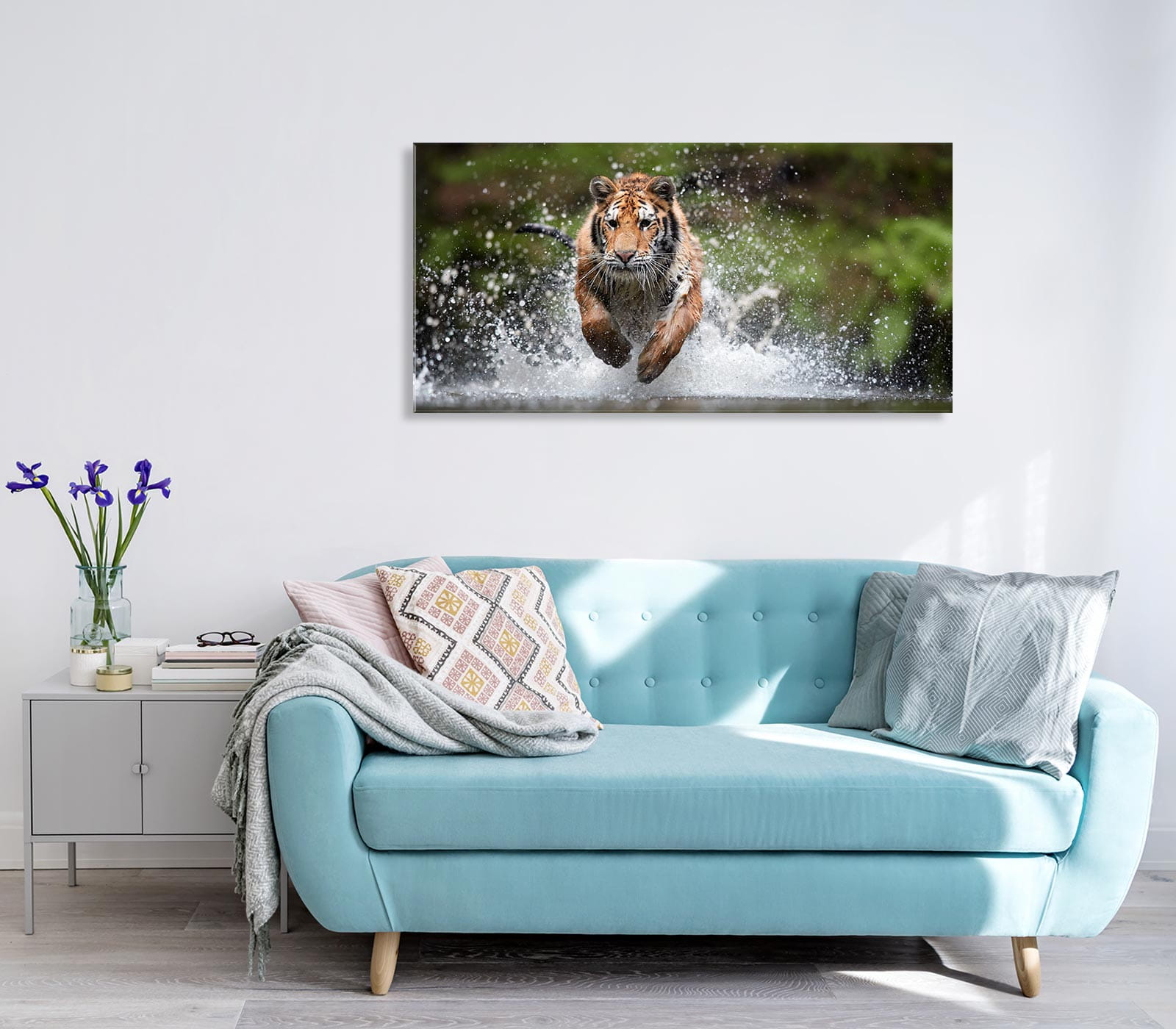 FOTO OBRAZ NA SZKLE do salonu TYGRYS RZEKA DŻUNGLA