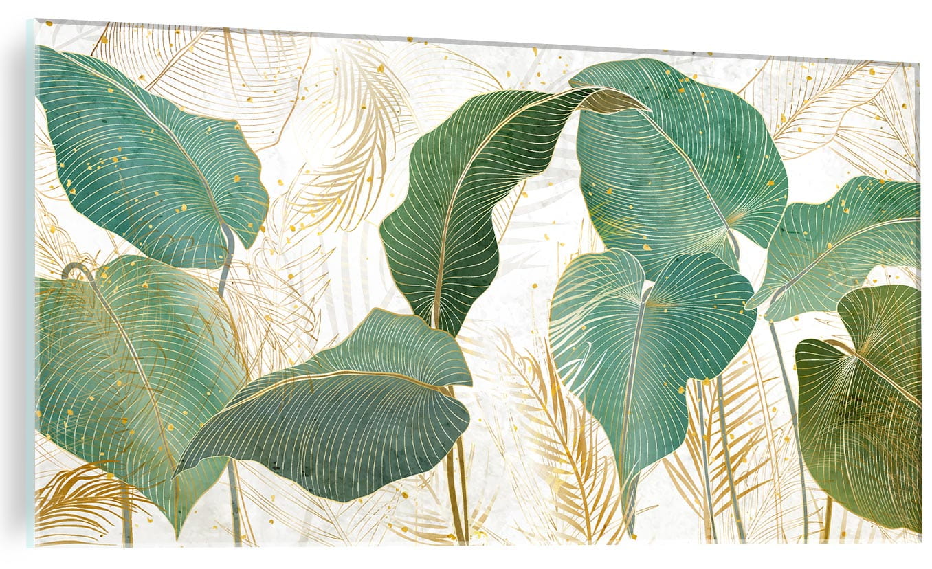 FOTO OBRAZ SZKLANY DO SALONU ELEGANCKIE ZŁOTE LIŚCIE