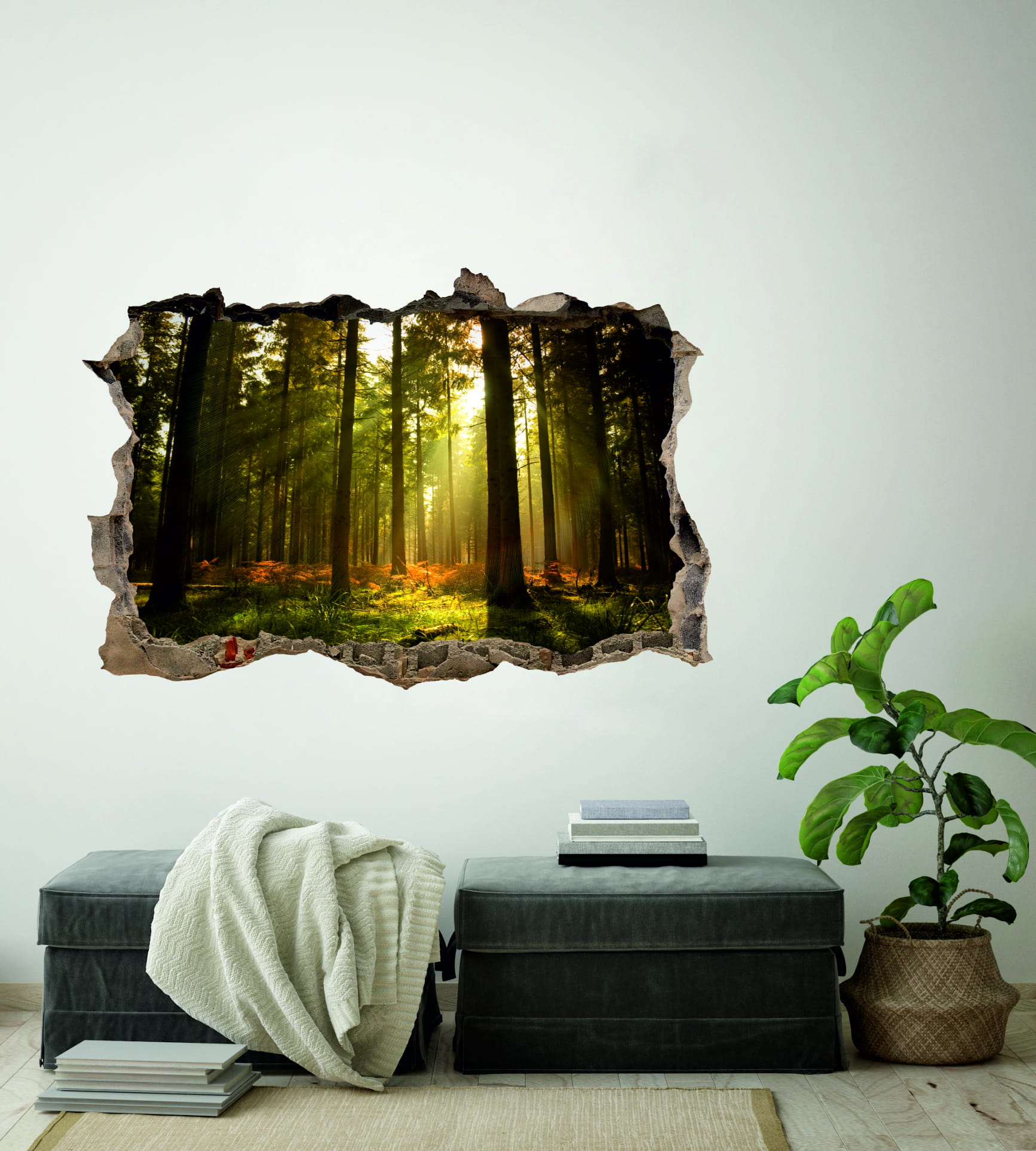 FOTOTAPETA 3D SAMOPRZYLEPNA naklejka ścienna CIEPŁE SŁOŃCE W LESIE