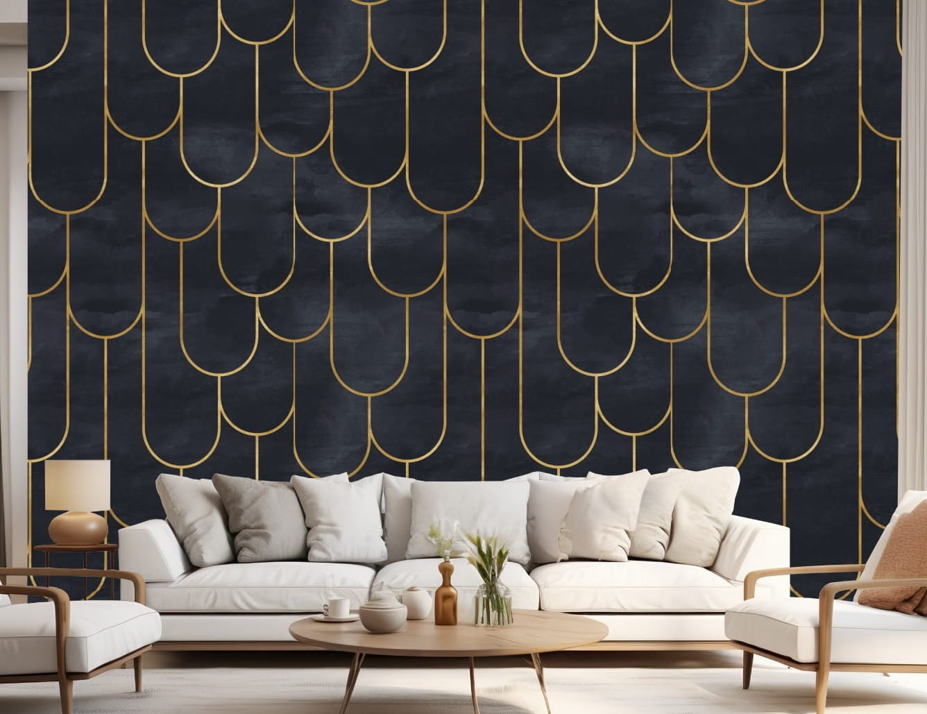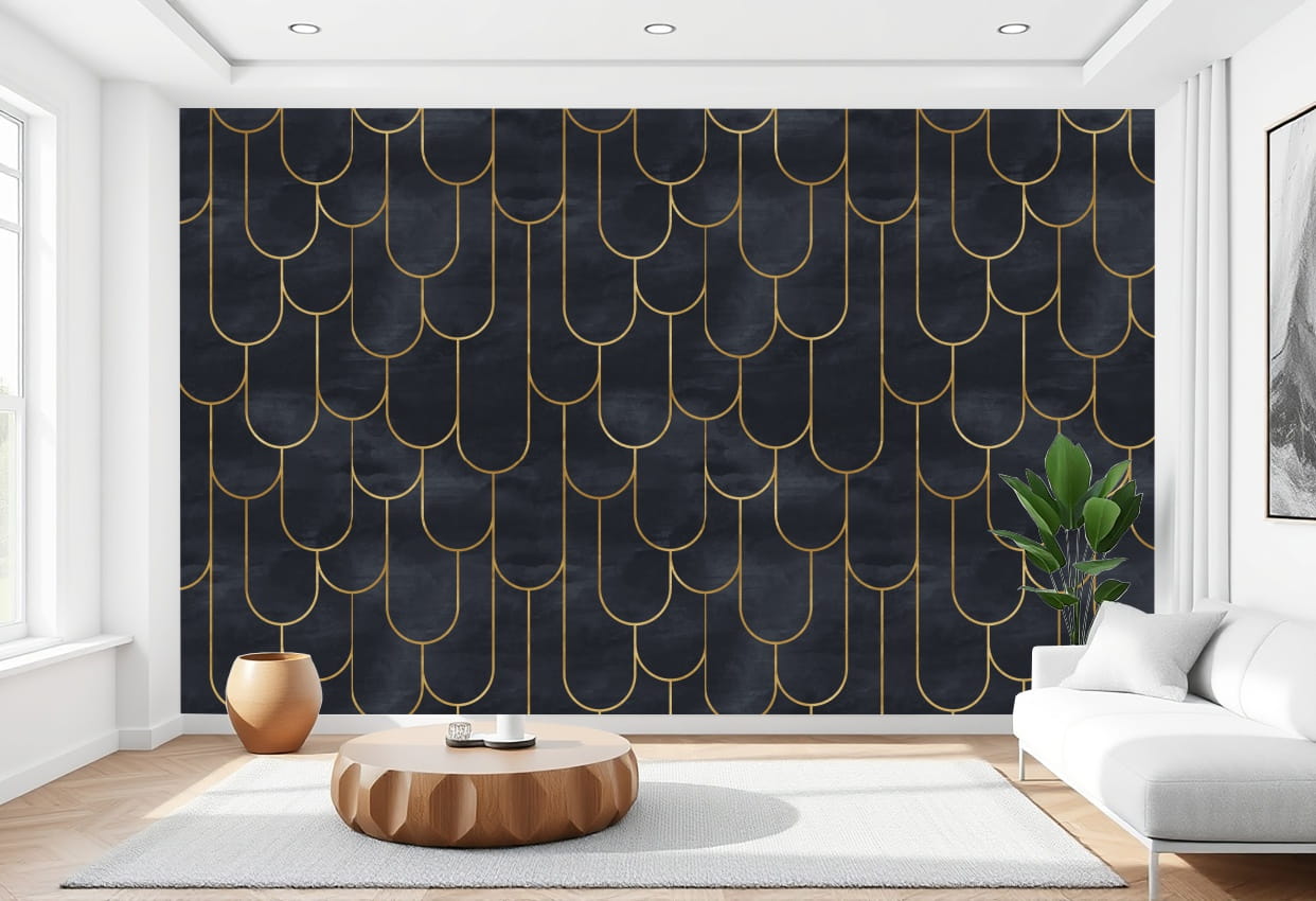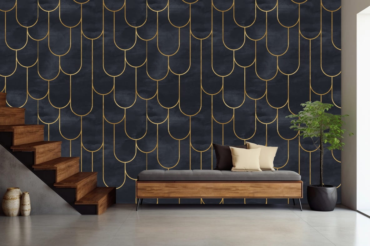 FOTOTAPETA 3D do salonu sypialni ART DECO geometryczne pozłacane łuki