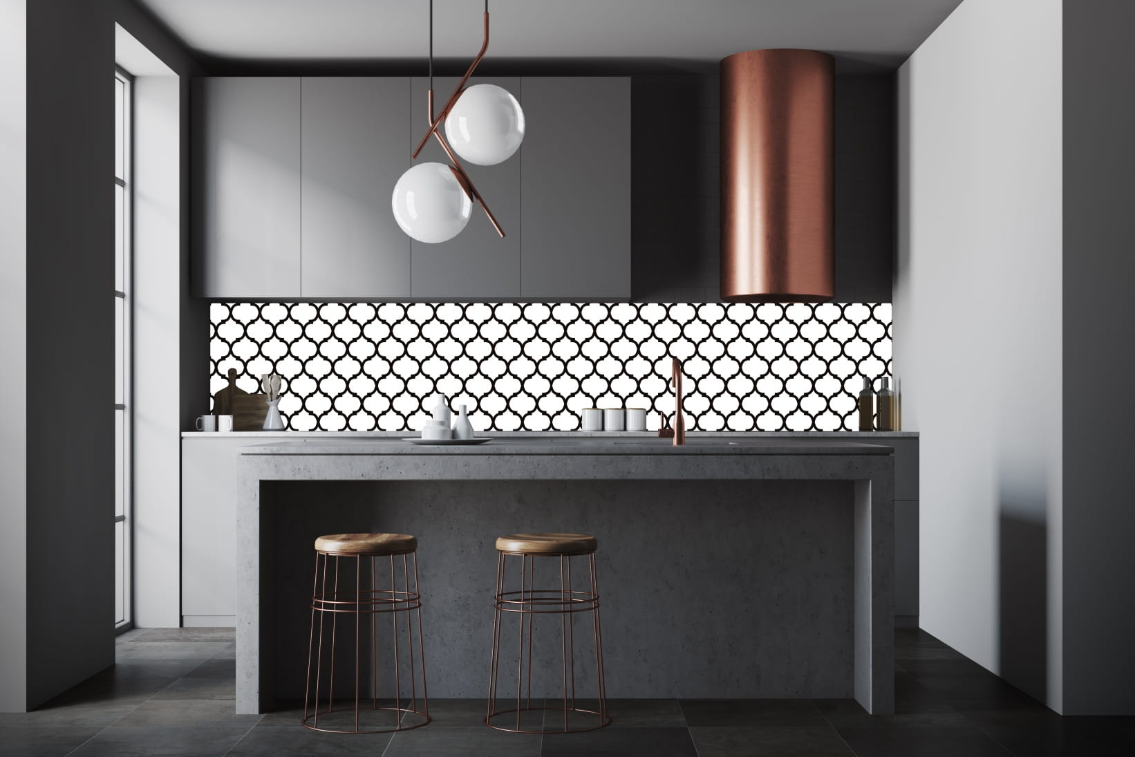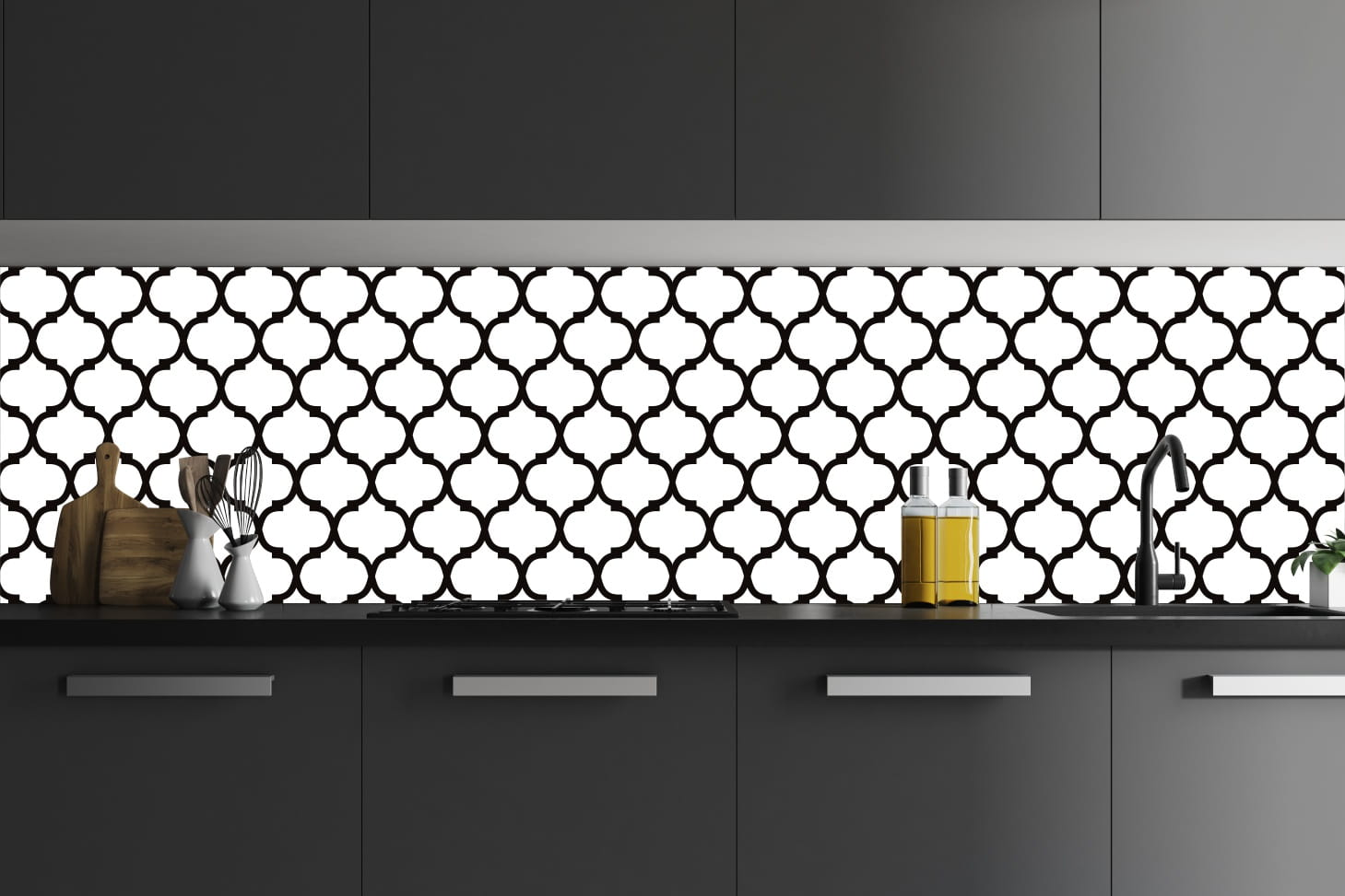 FOTOTAPETA DO KUCHNI ZMYWALNA BIAŁO CZARNY WZÓR