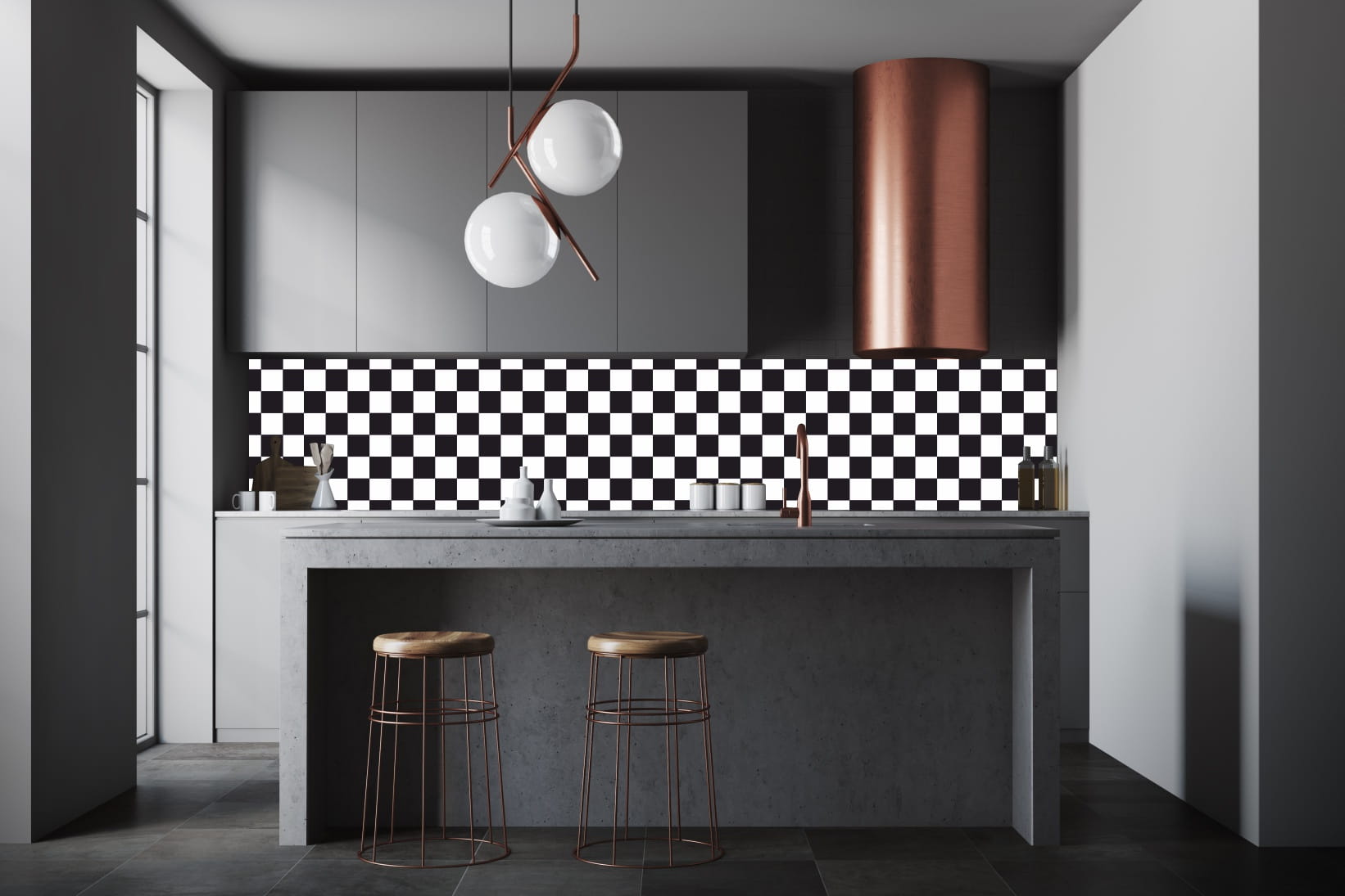FOTOTAPETA DO KUCHNI ZMYWALNA SZACHOWNICA BLACK WHITE