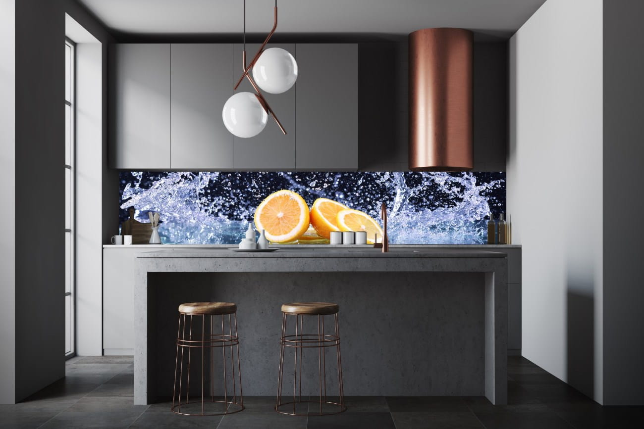 FOTOTAPETA DO KUCHNI ZMYWALNA pomarańcze woda energia krople