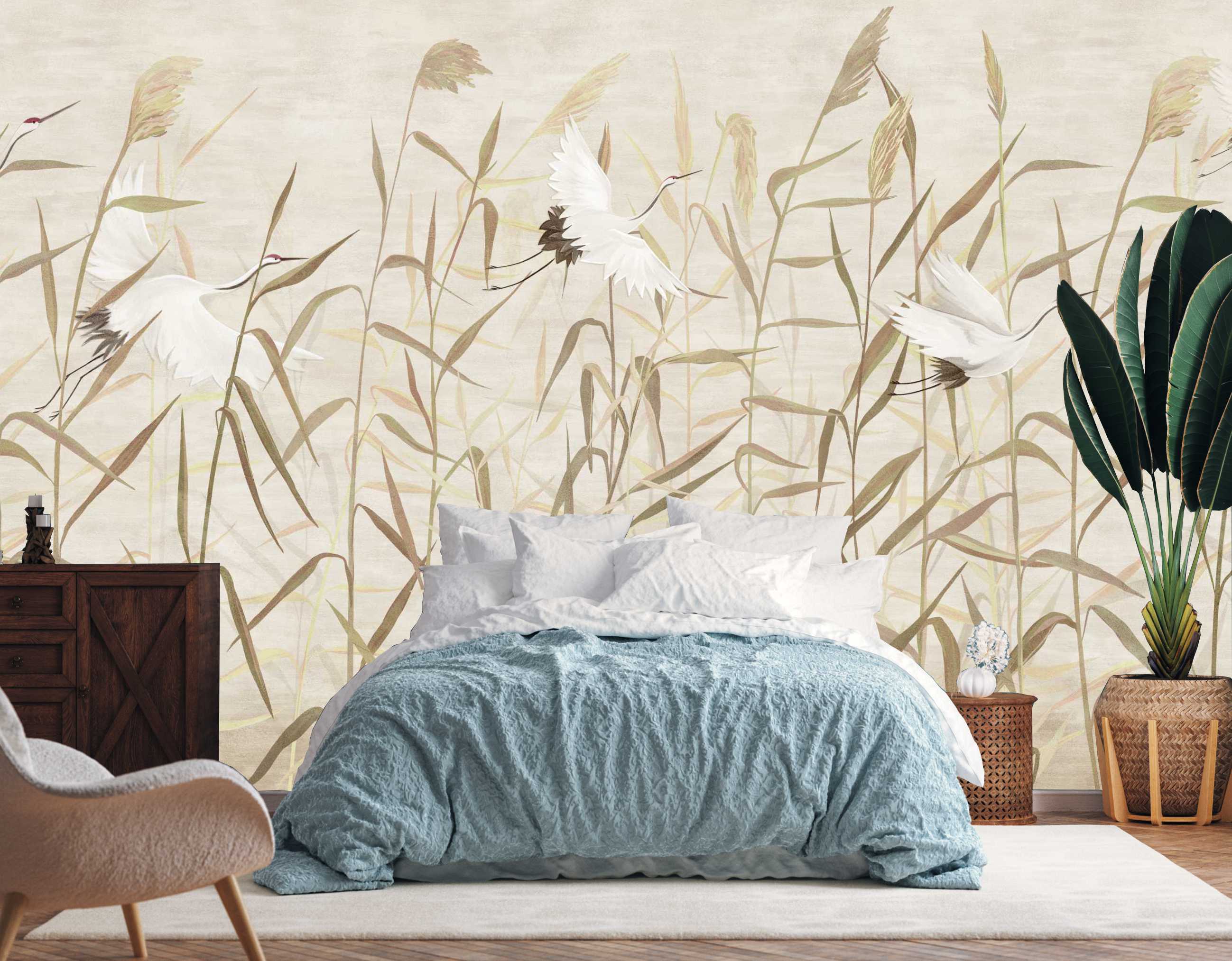 FOTOTAPETA DO SALONU SYPIALNI DRZEWO PTAKI NATURA