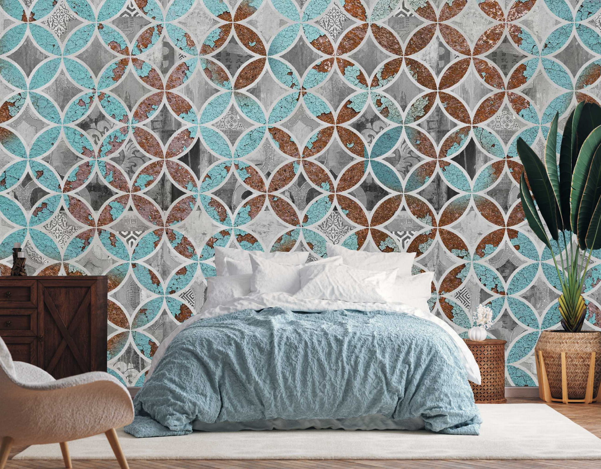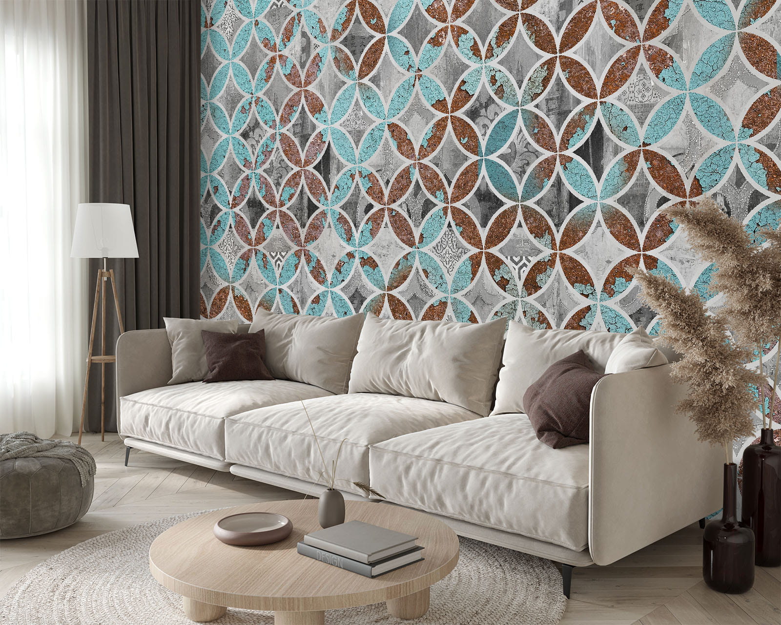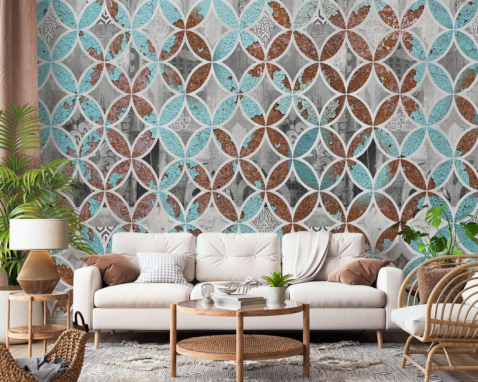 FOTOTAPETA DO SALONU SYPIALNI KAFLE MOZAIKA RETRO