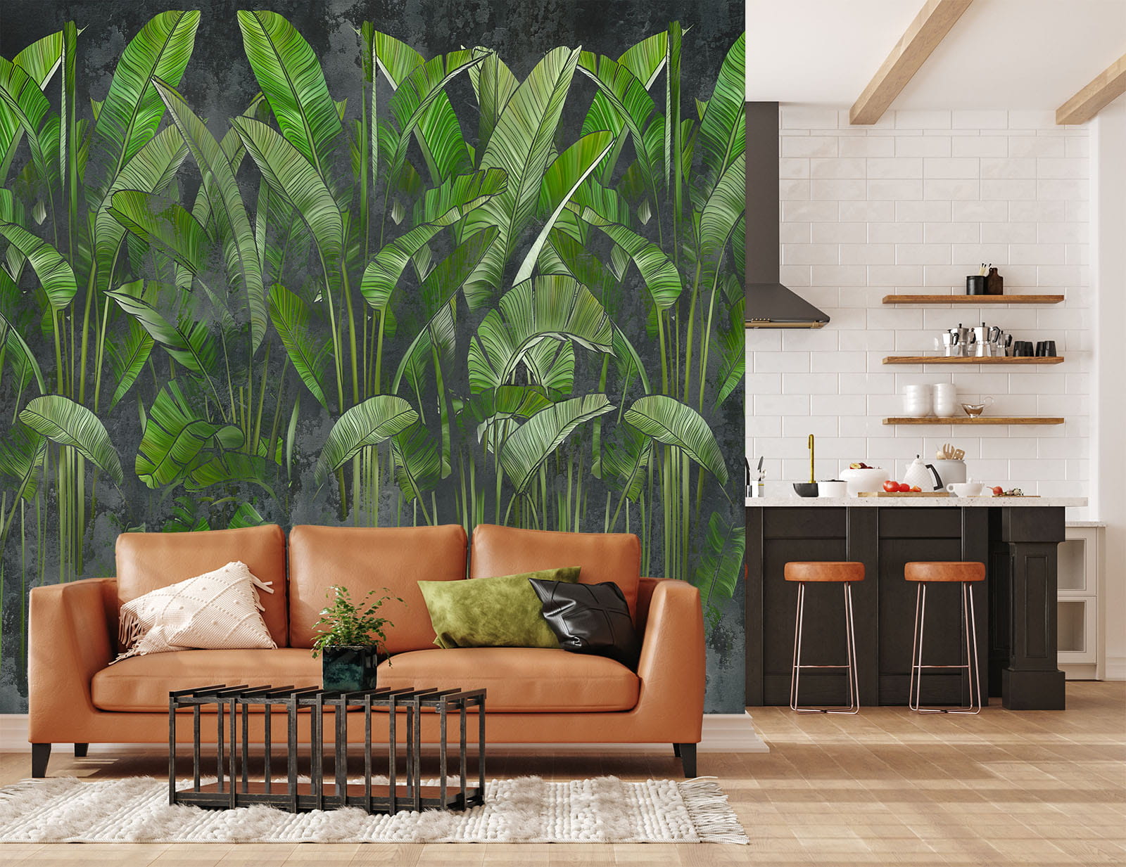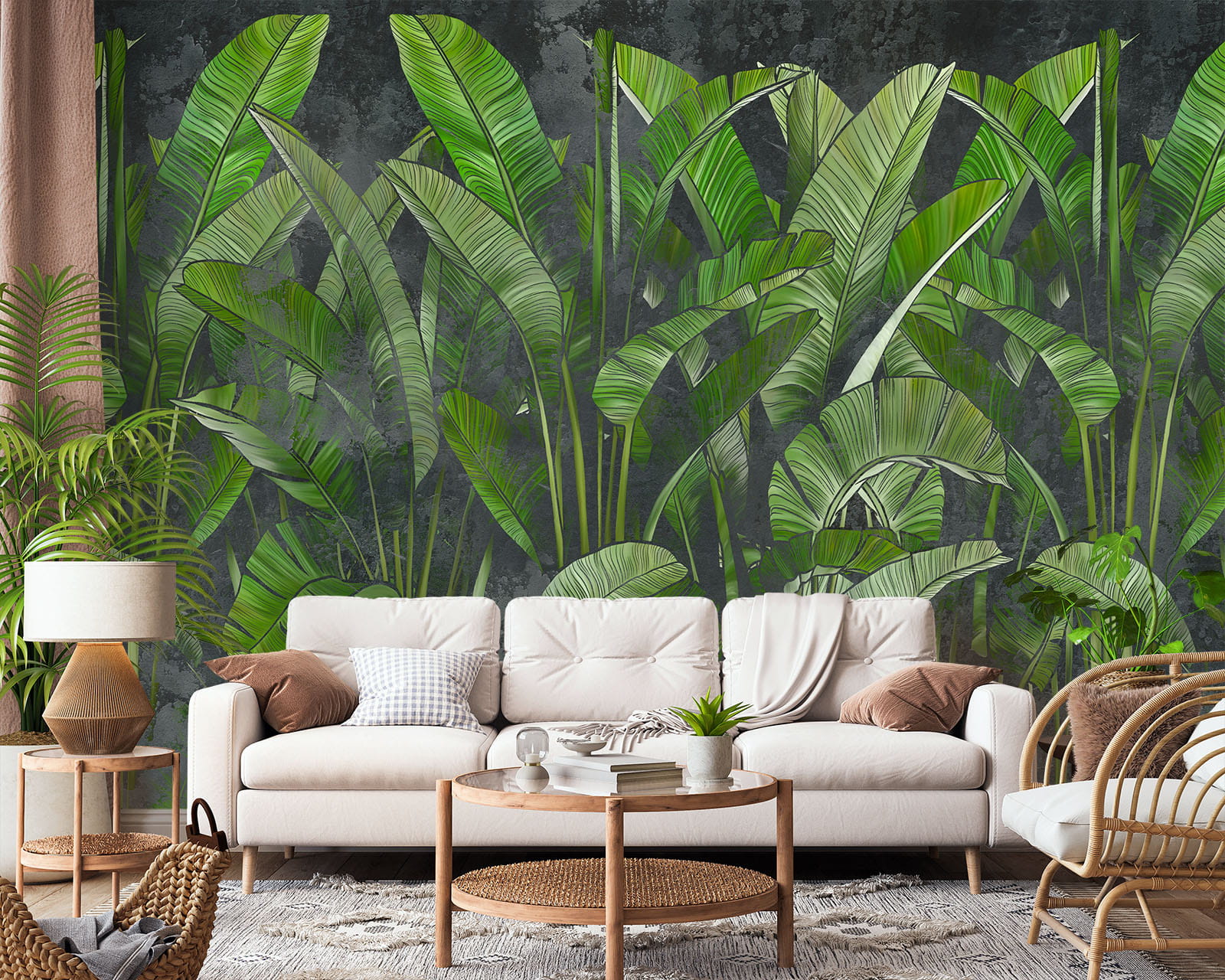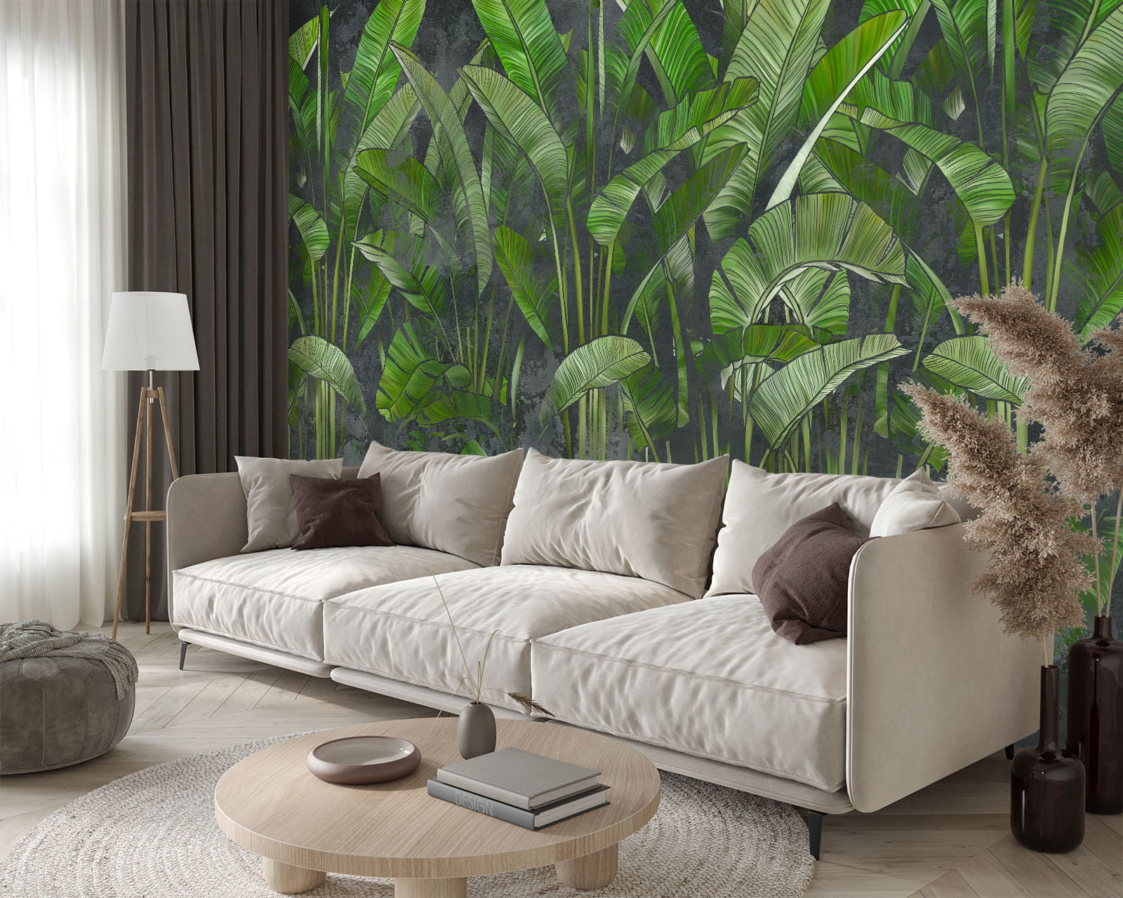 FOTOTAPETA DO SALONU SYPIALNI LIŚCIE BANANOWCA