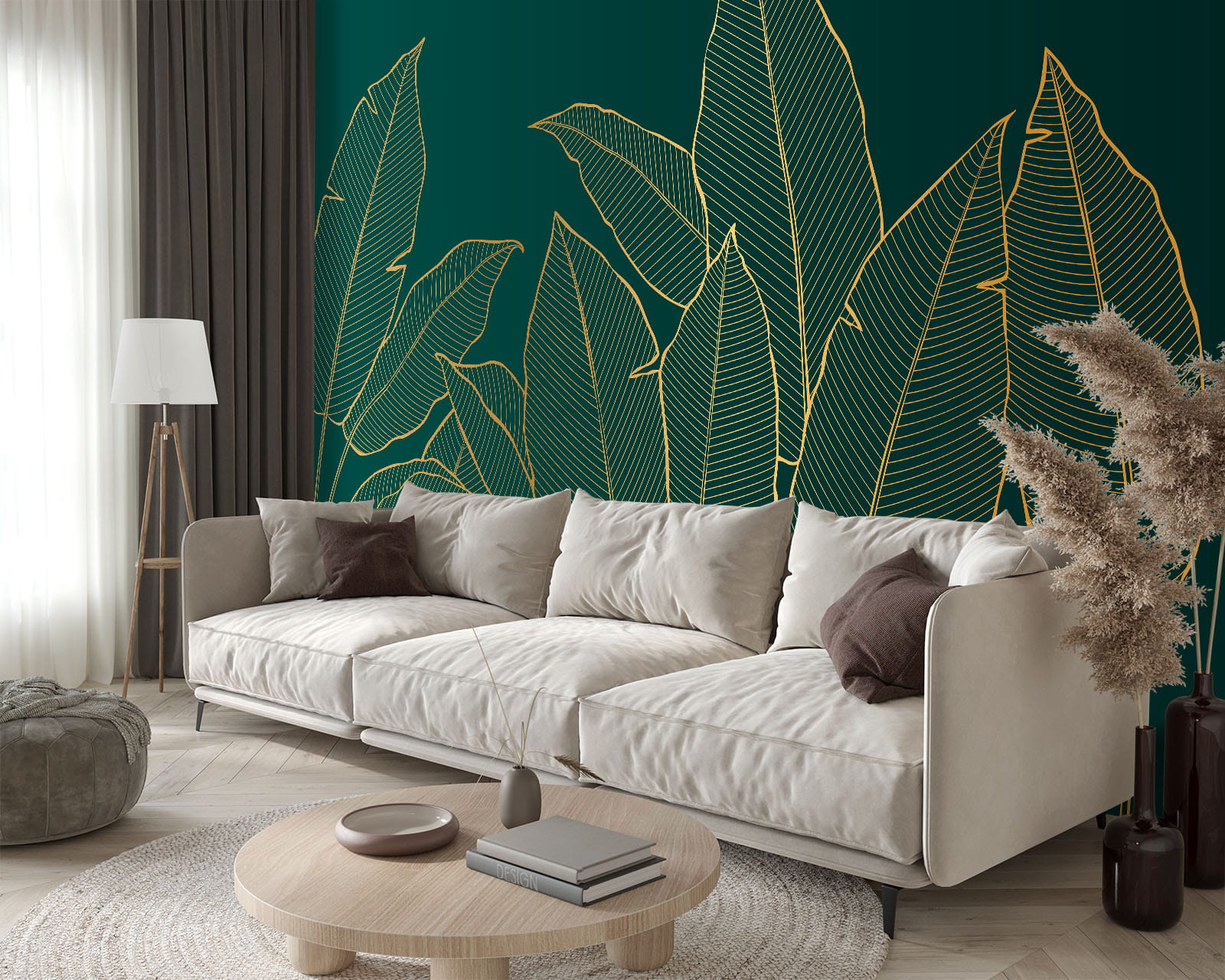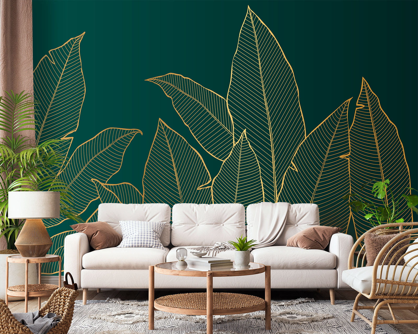 FOTOTAPETA DO SALONU SYPIALNI ZŁOTE LIŚCIE BANANOWCA