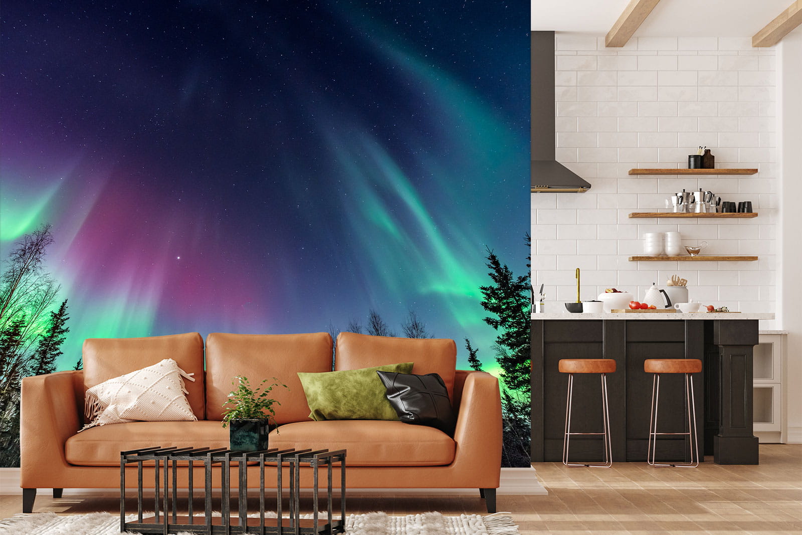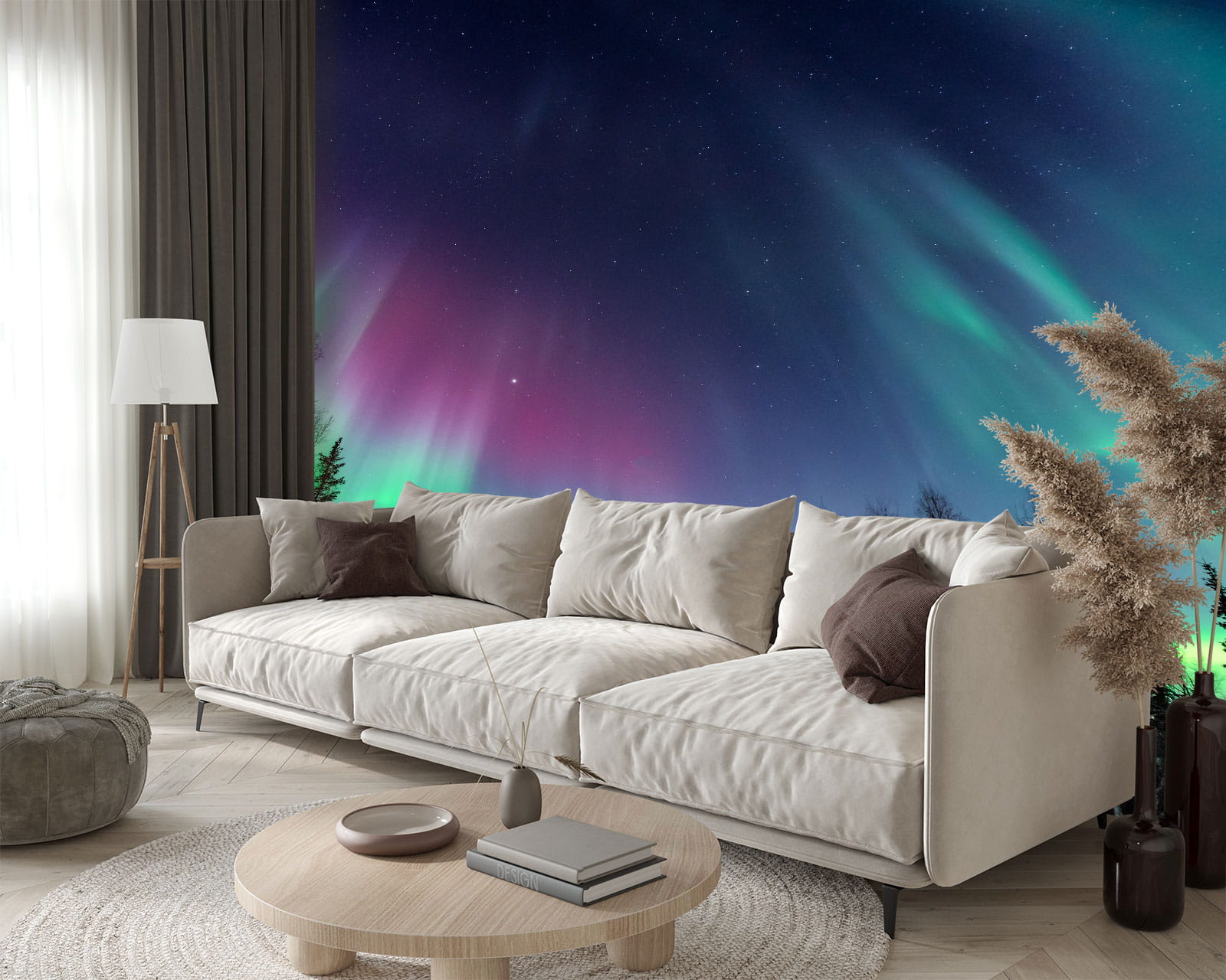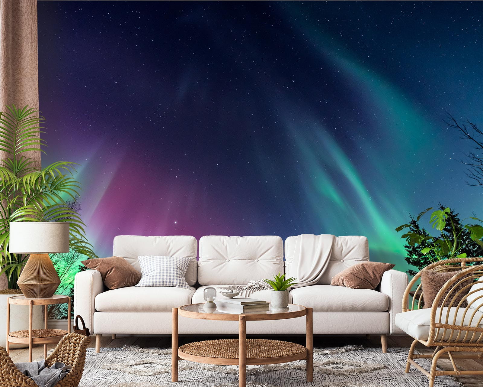 FOTOTAPETA DO SALONU SYPIALNI ZORZA POLARNA LAS