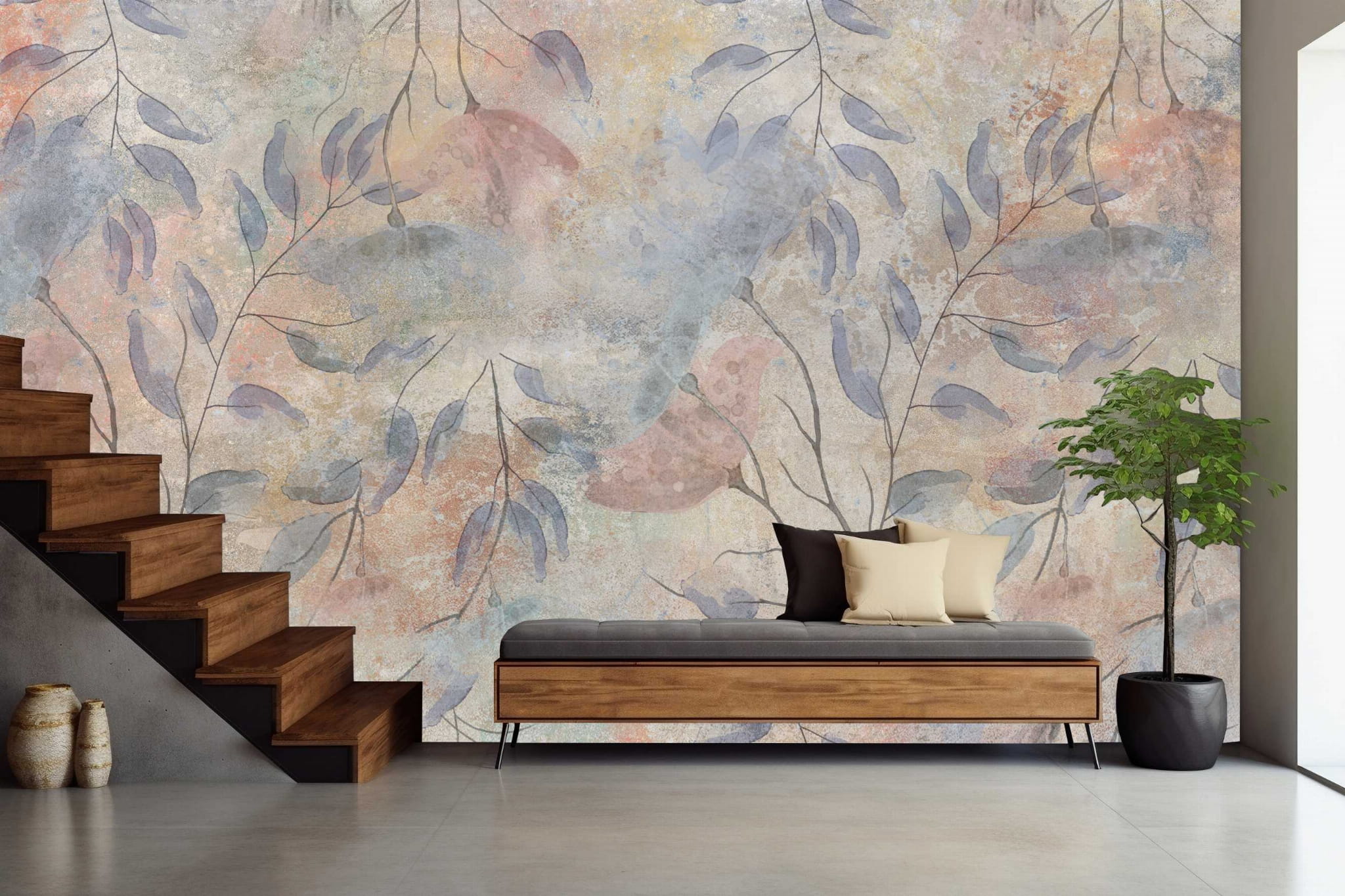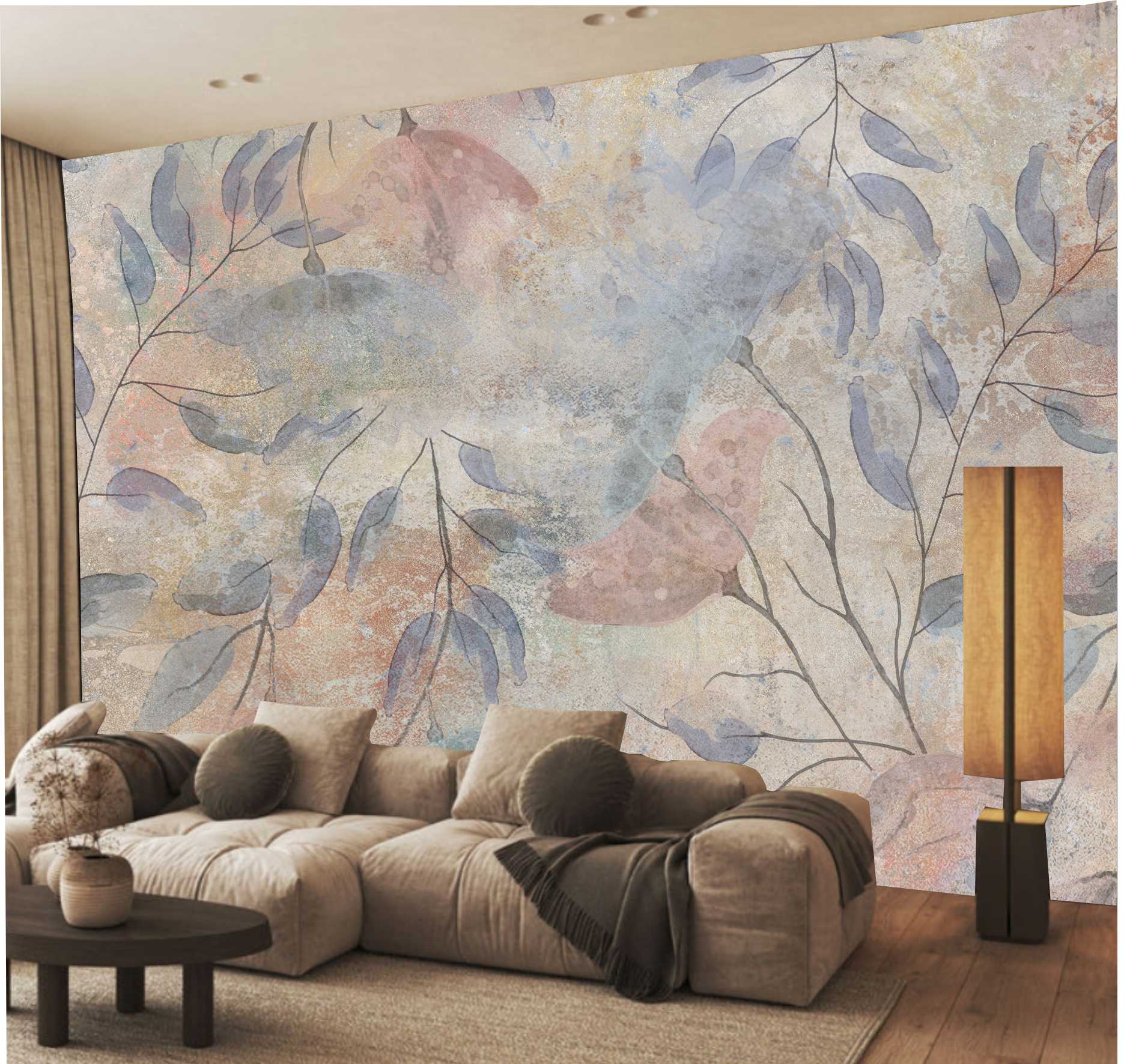 FOTOTAPETA delikatne kwiaty liście do salonu sypialni PASTELLO