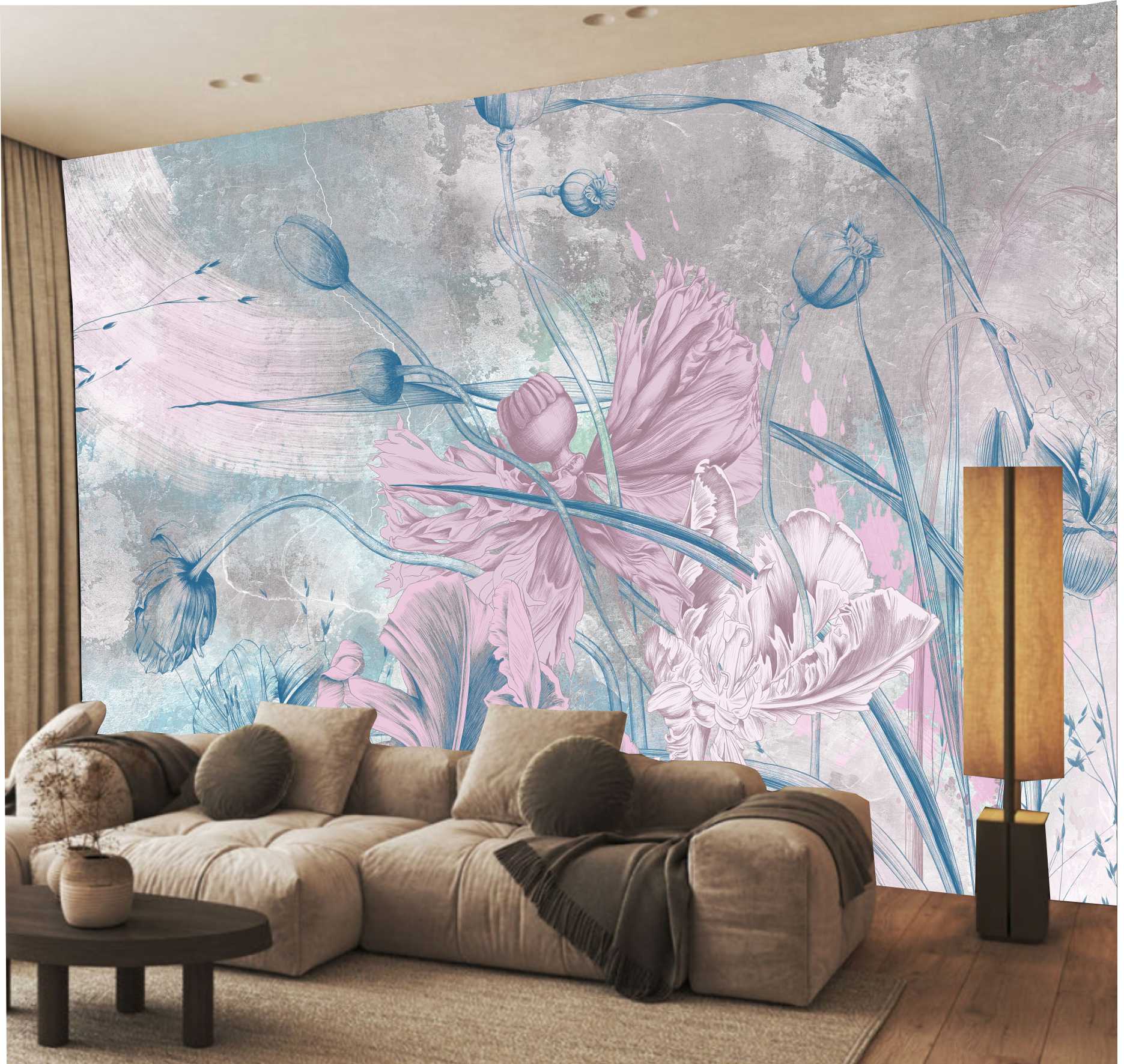 Wizualizacje w ofercie mają charakter podglądowy - ostateczny wygląd tapety zależy od jej wymiarów i zostanie przedstawiony na wysłanej do Państwa po zakupie wizualizacji.