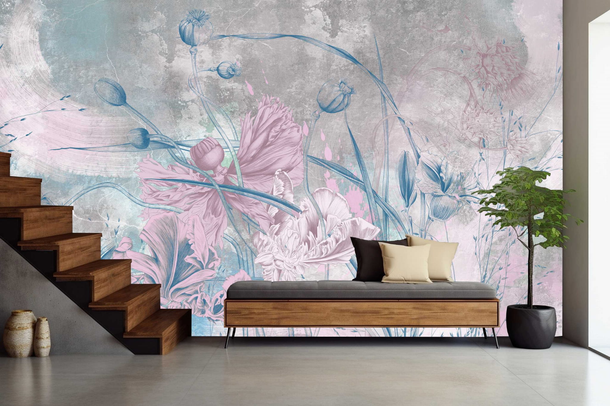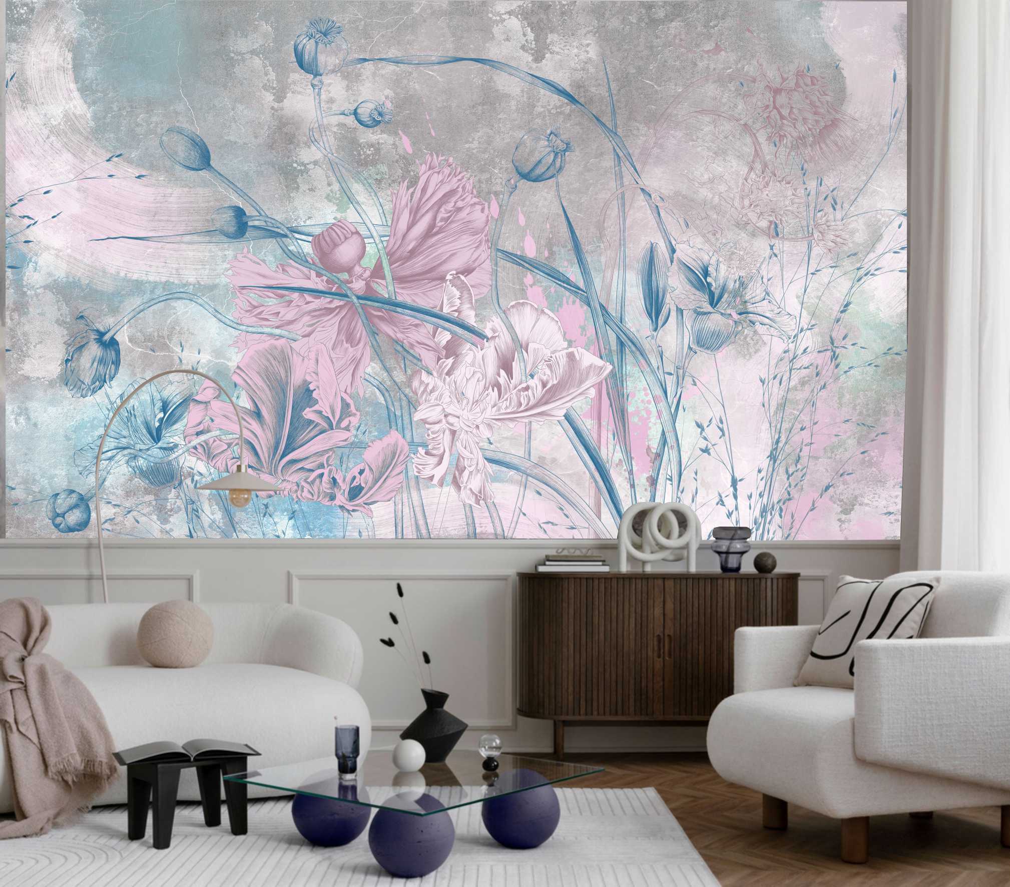 FOTOTAPETA kwiaty beton kwiat do salonu sypialni BLOMME