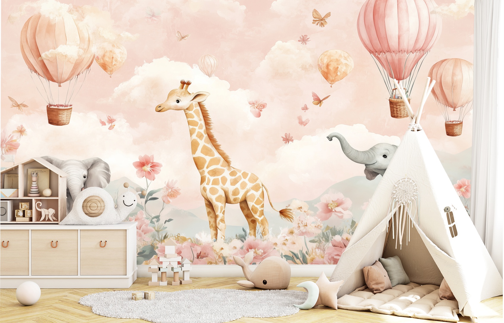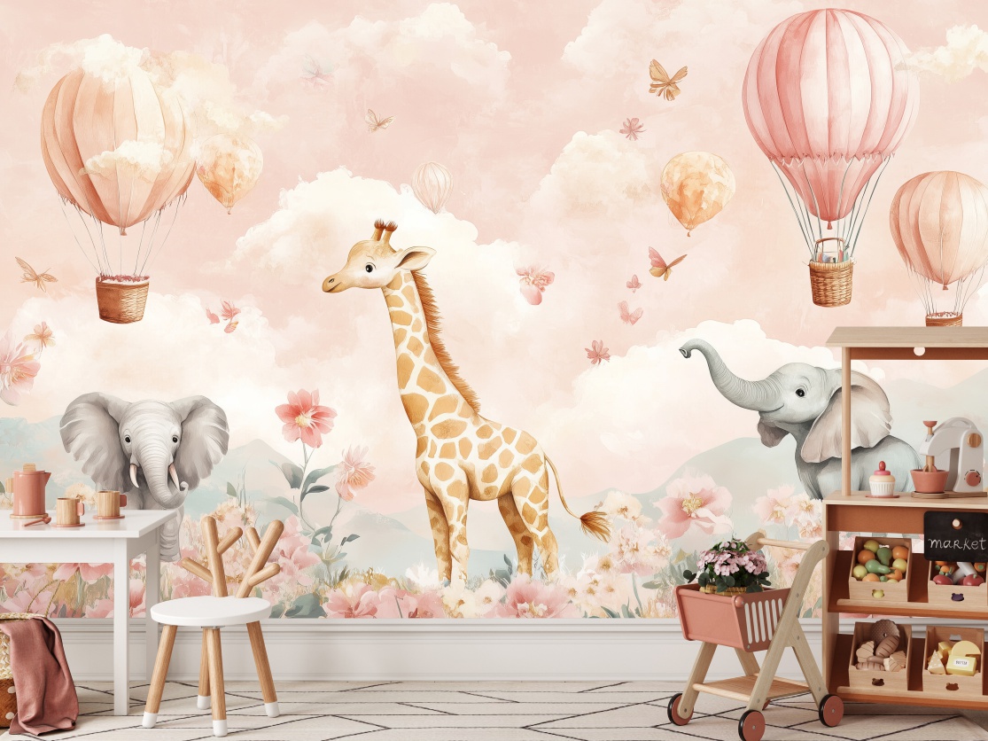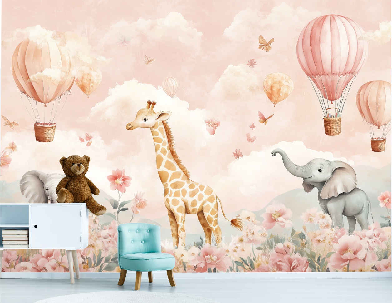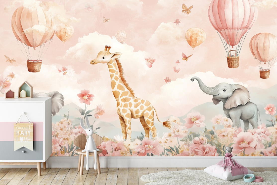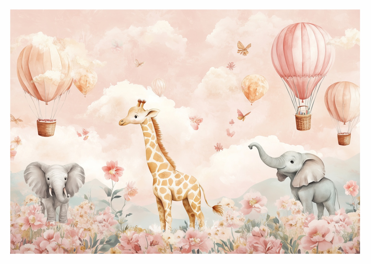 Fototapeta DZIECIĘCA zwierzątka balony żyrafa słonie