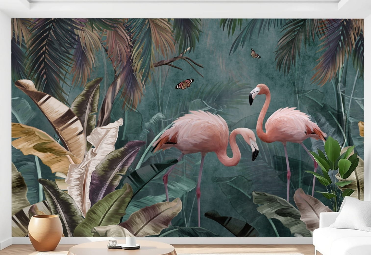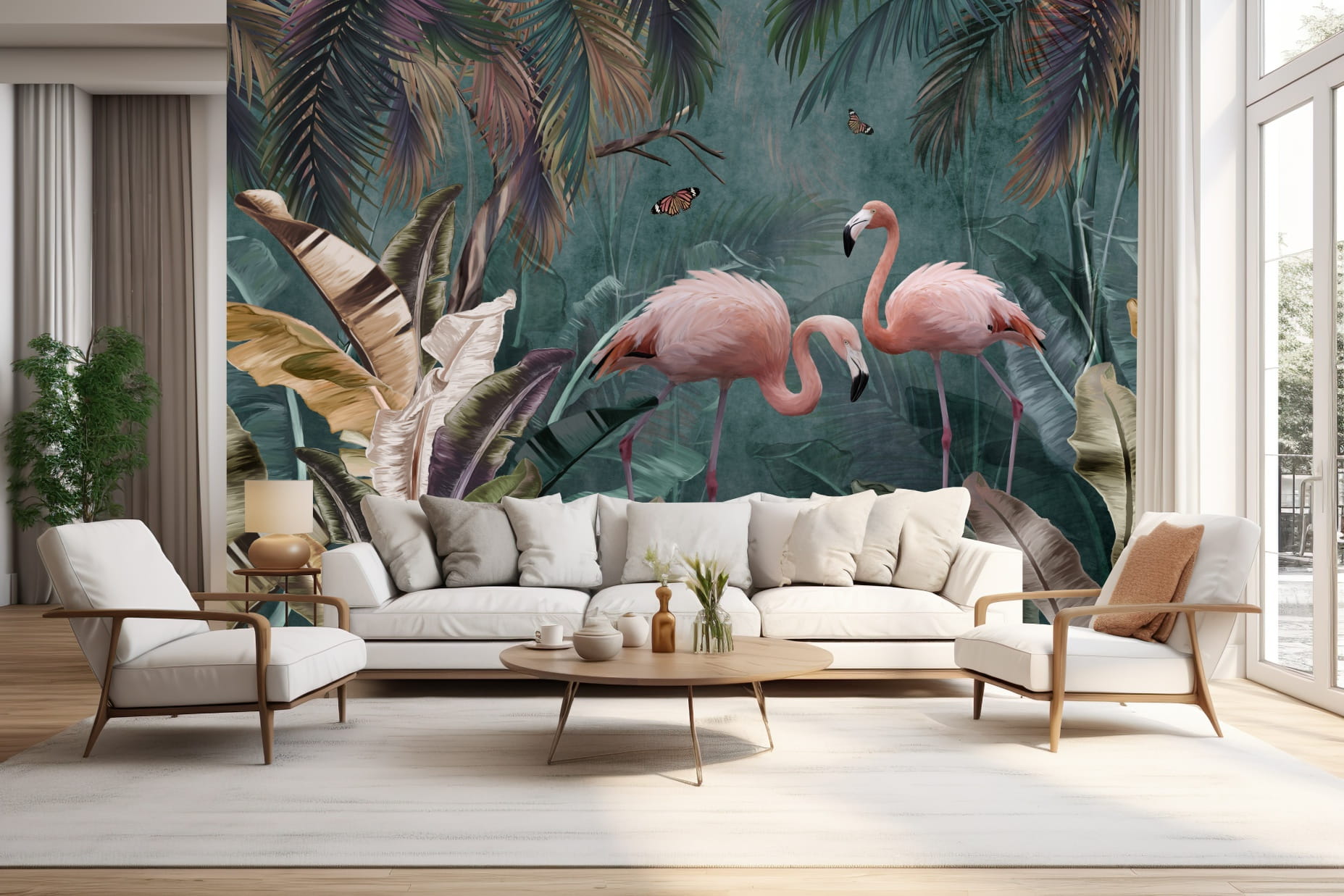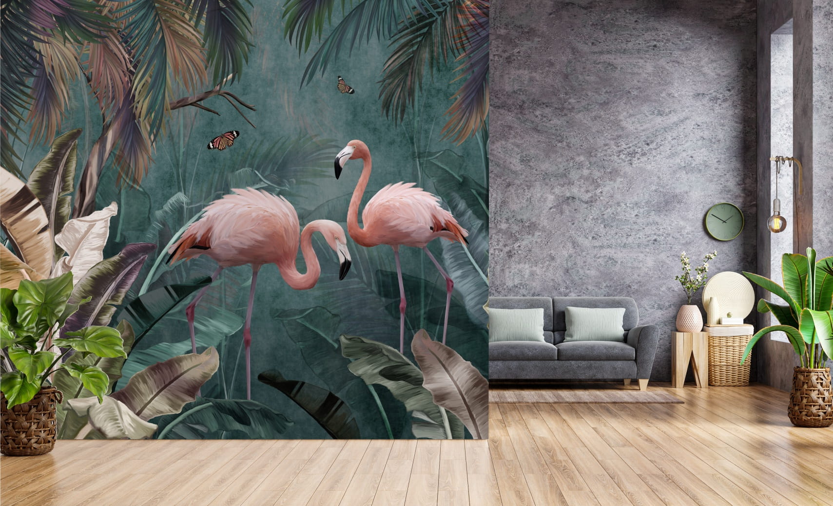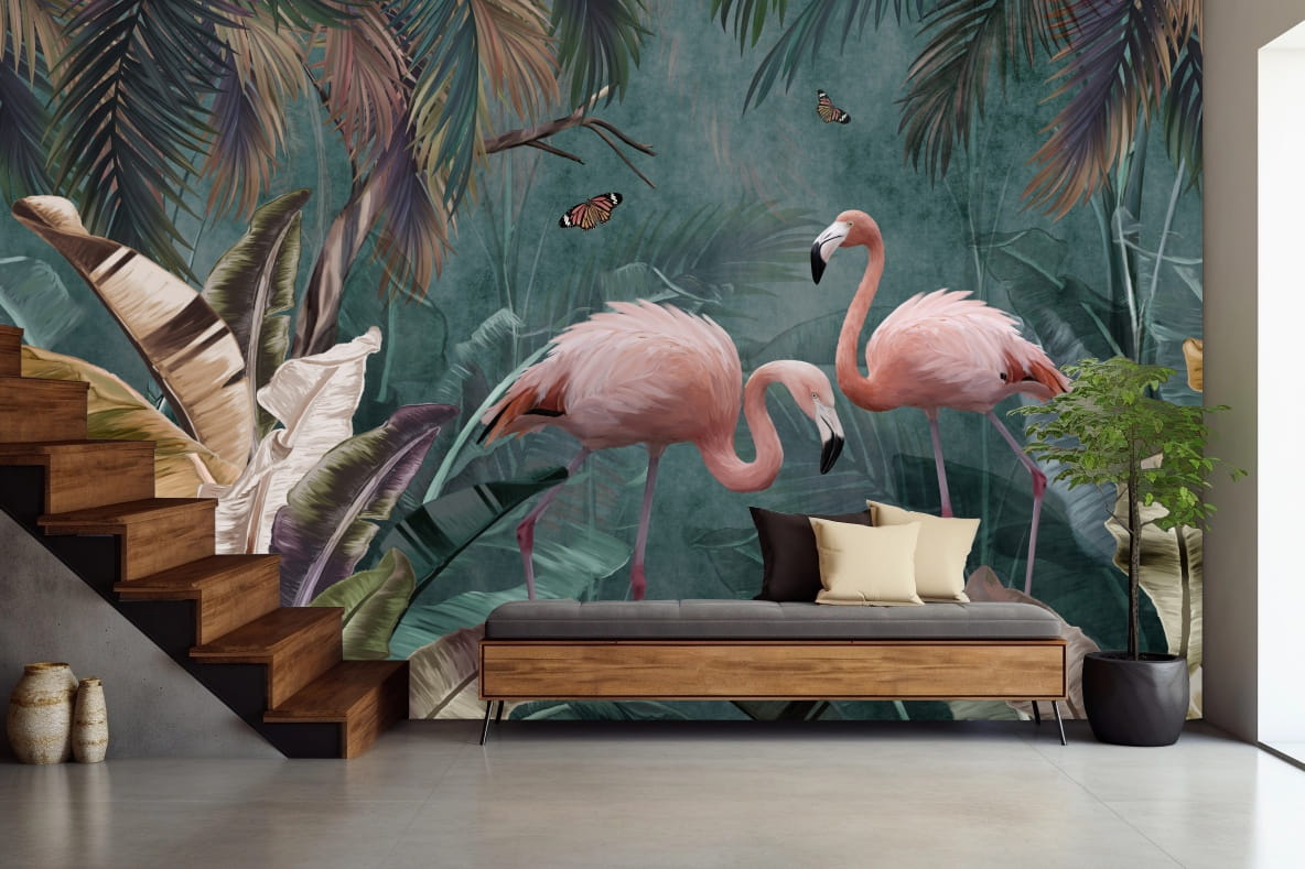 Fototapeta FLAMINGO na ścianę do salonu sypialni FLAMINGI W DŻUNGLI