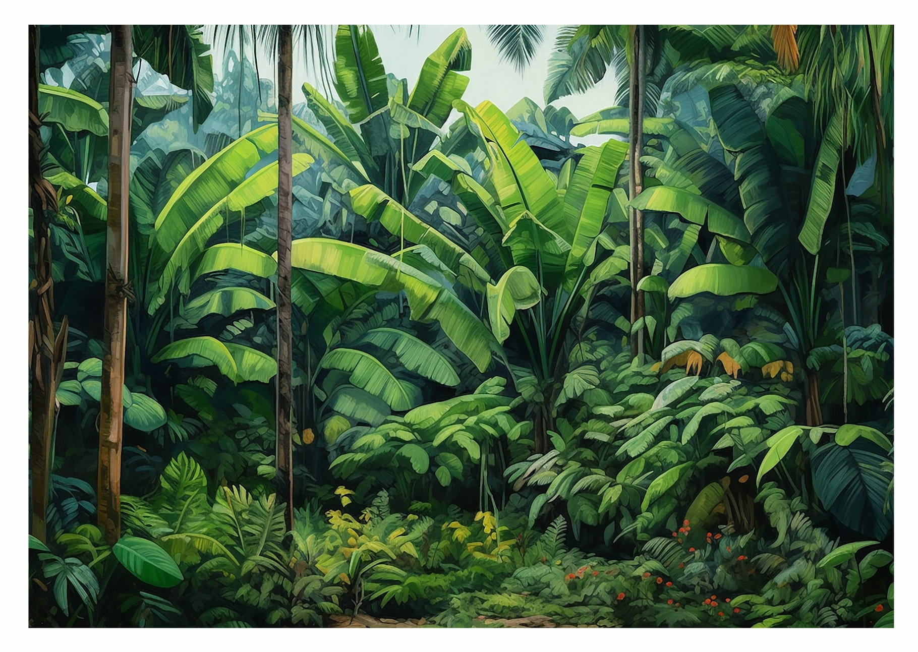 Fototapeta FLORAL na ścianę do salonu sypialni ZIELONY LAS DESZCZOWY