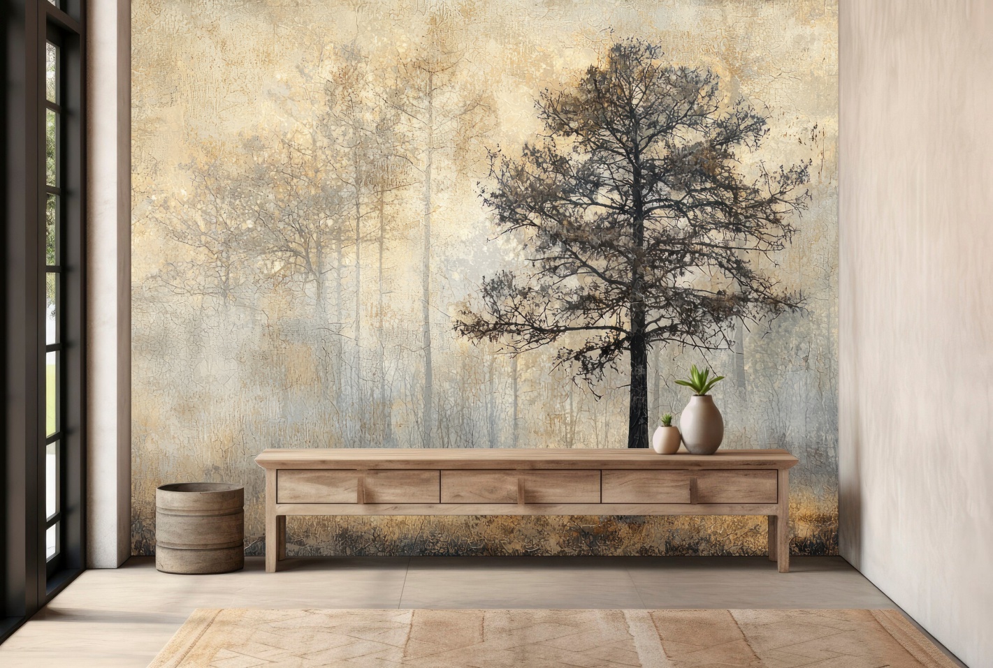 Fototapeta FOREST VINTAGE do salonu sypialni Zamglony las drzewa