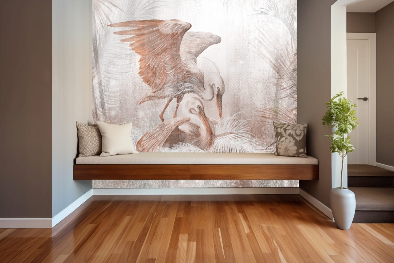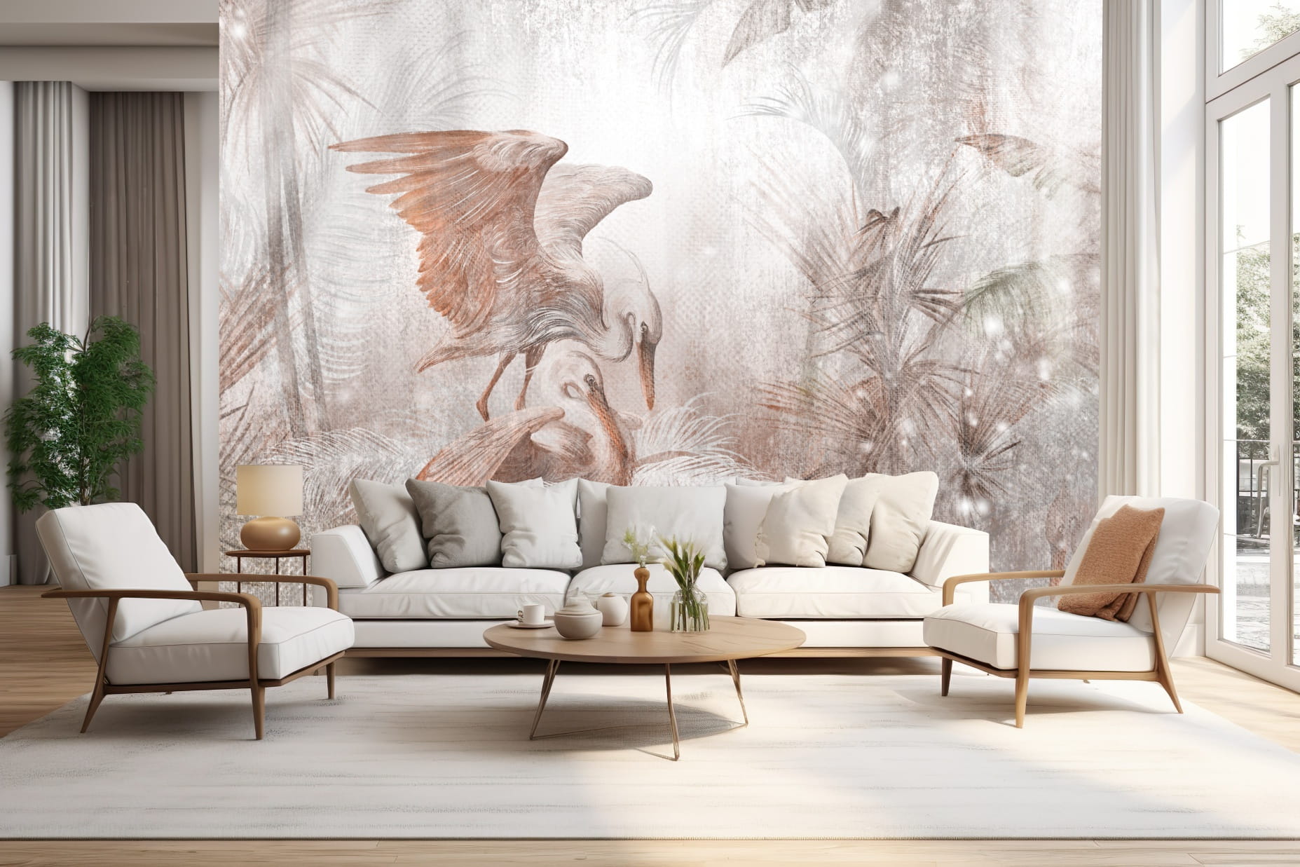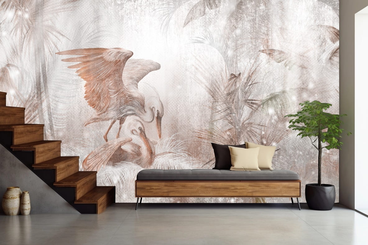 Fototapeta HERON na ścianę do salonu MURAL PTAKI LIŚCIE ABSTRAKT