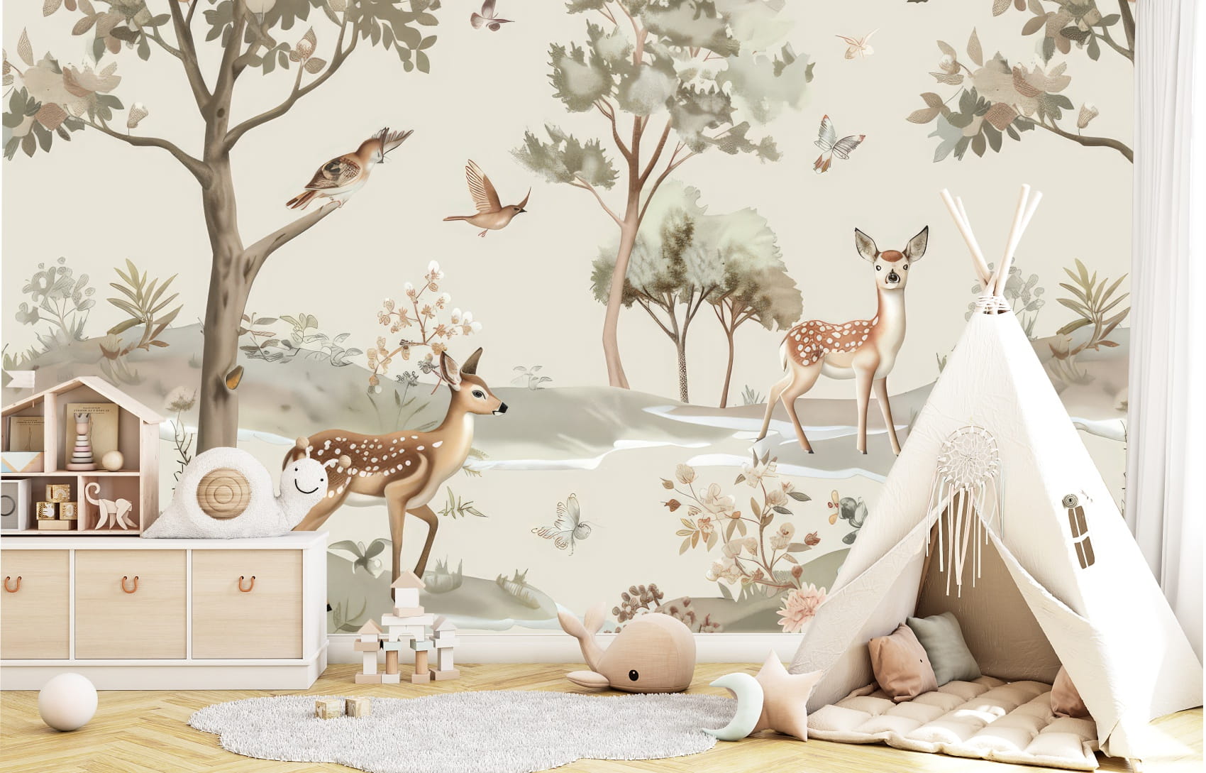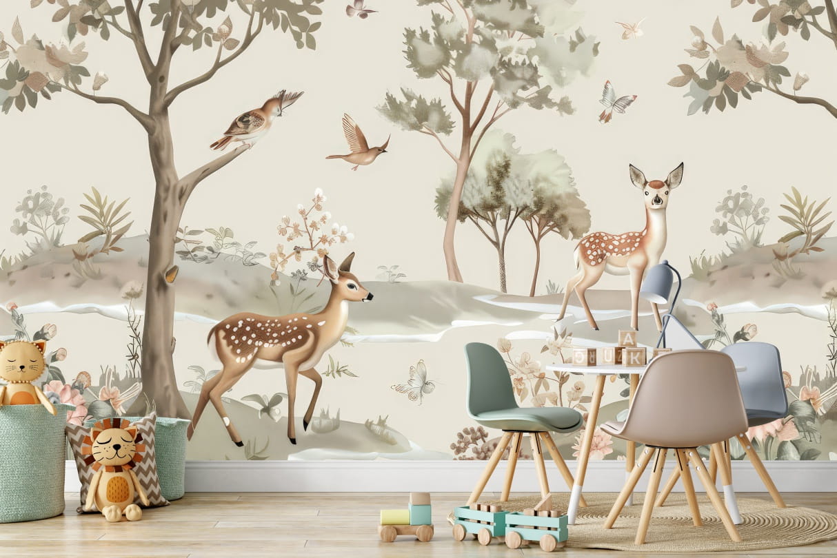 Fototapeta LAS FORESTLAND tapeta dla dzieci BOHO ZWIERZĄTKA LEŚNE