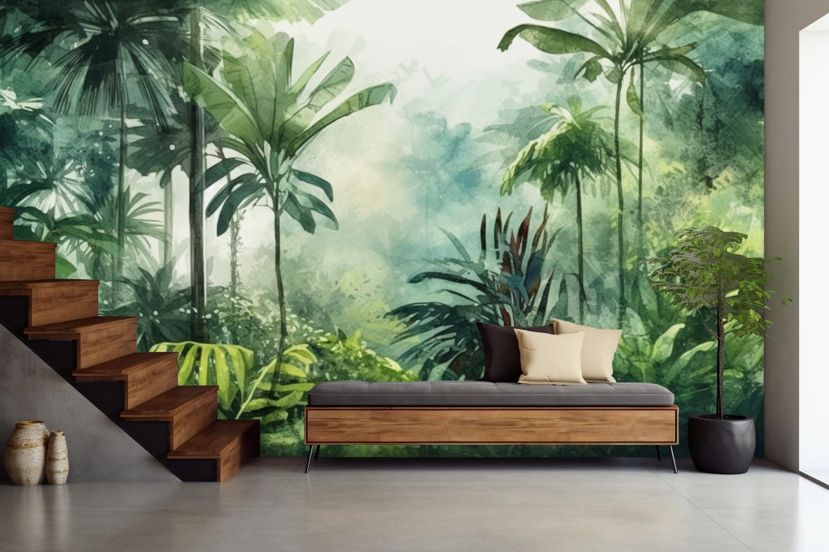 Fototapeta LAS do salonu sypialni MALOWANY TROPIKALNY LAS DŻUGLA