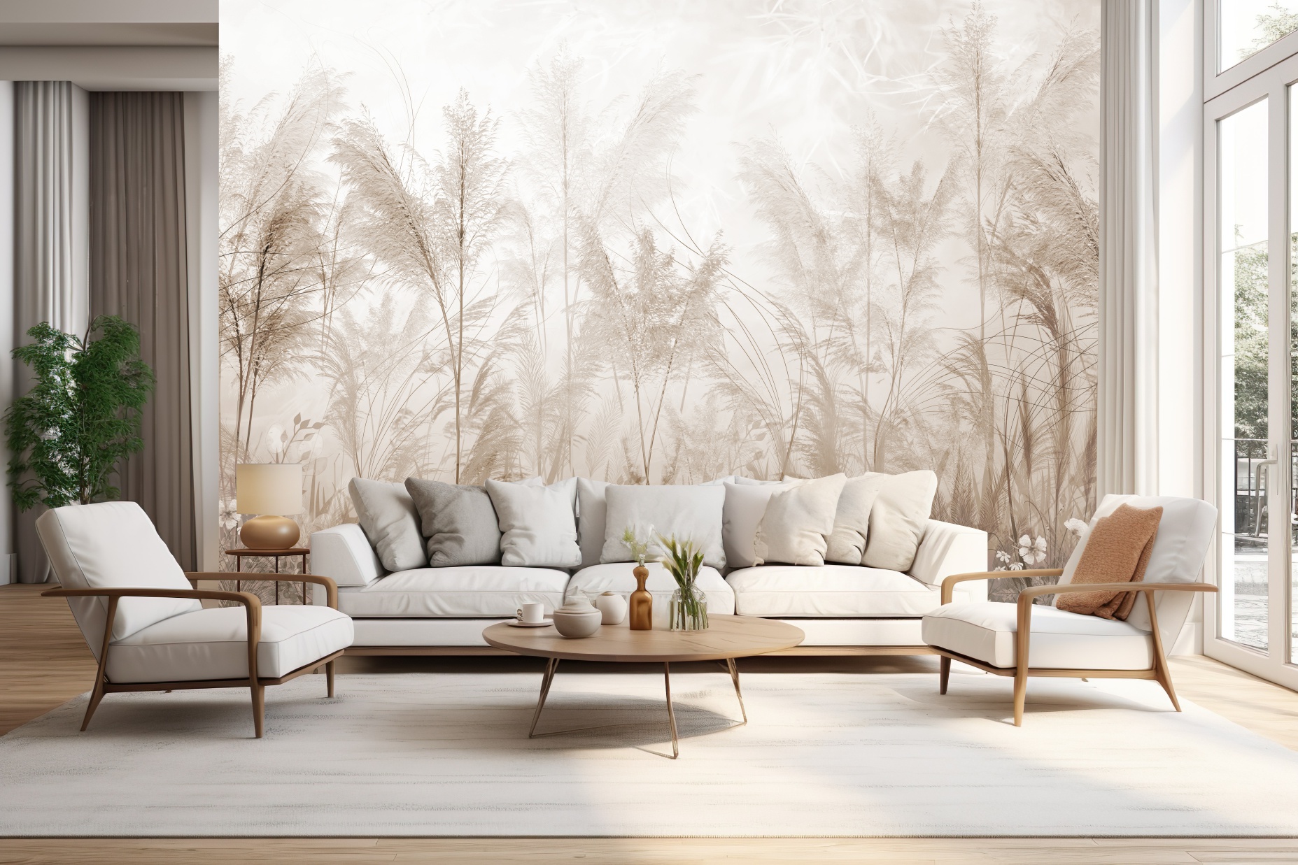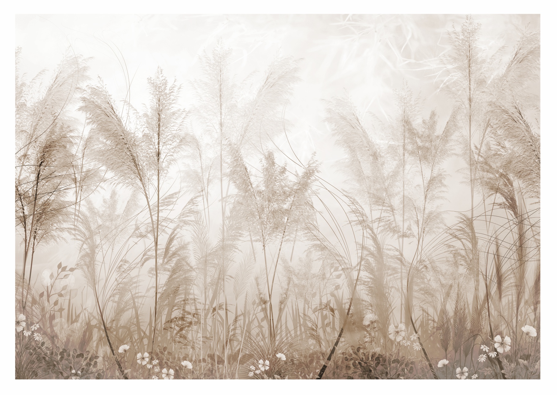 Fototapeta Mural do salonu Beton Liście Suche Trawy Pampas Loft Boho