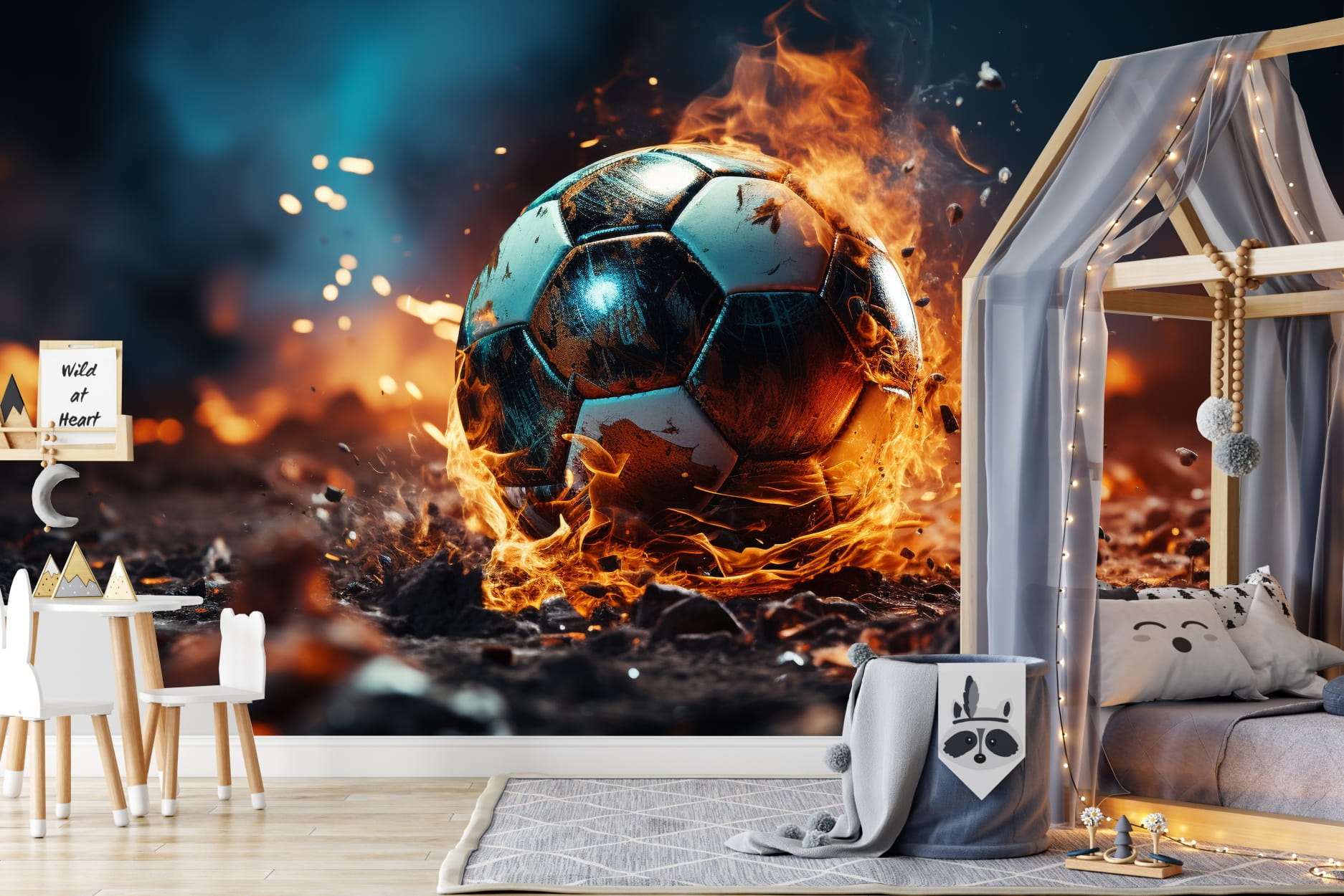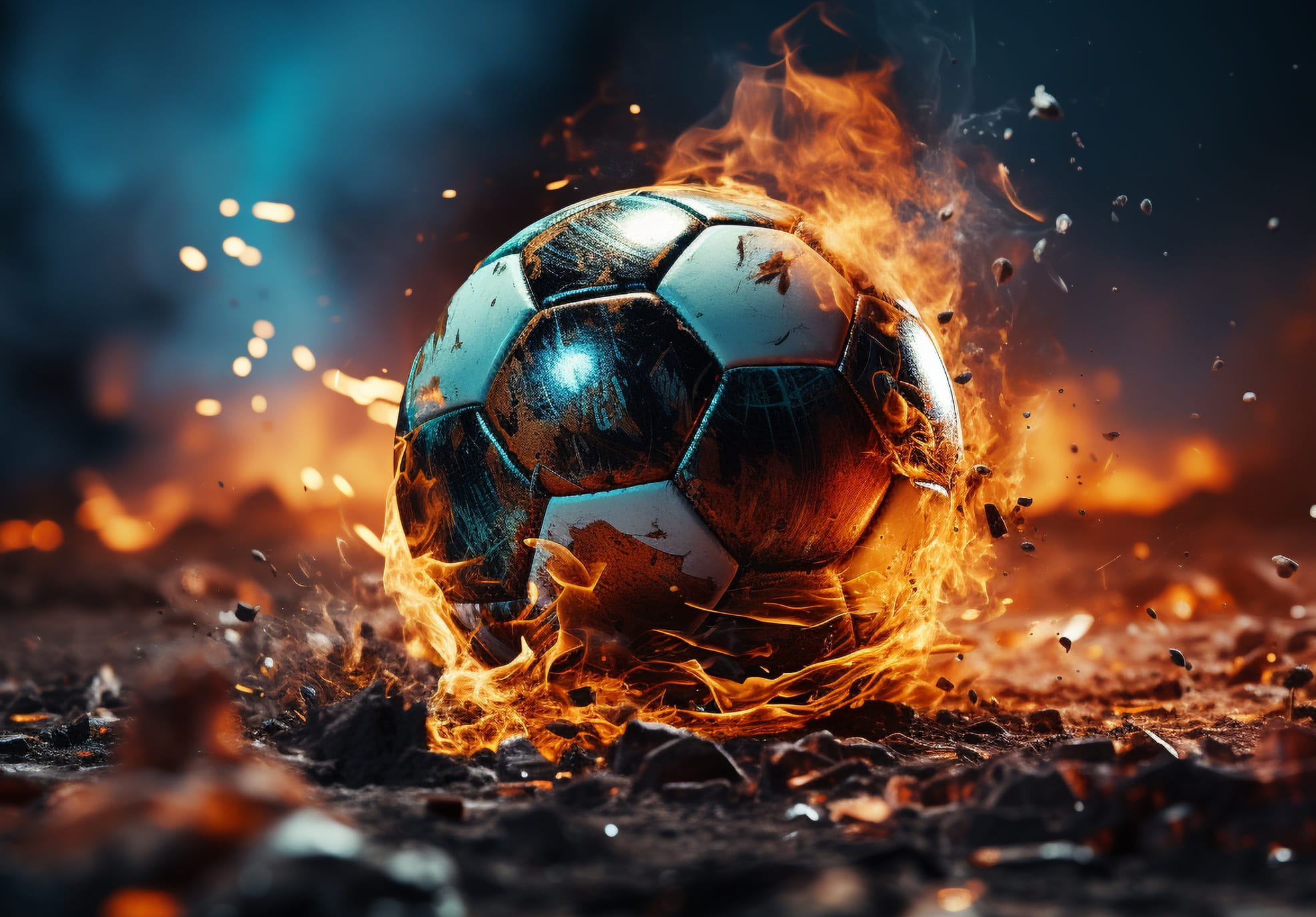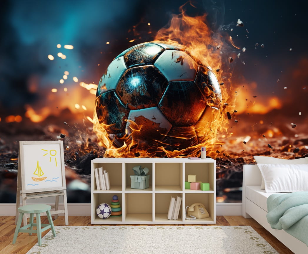 Fototapeta PIŁKA NOŻNA W OGNIU SPORT BOISKO tapeta dla chłopaka
