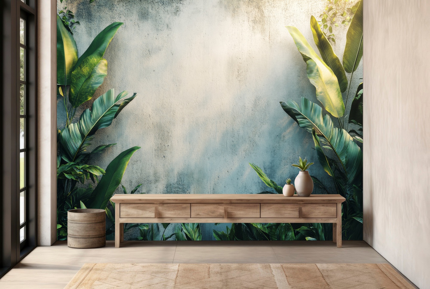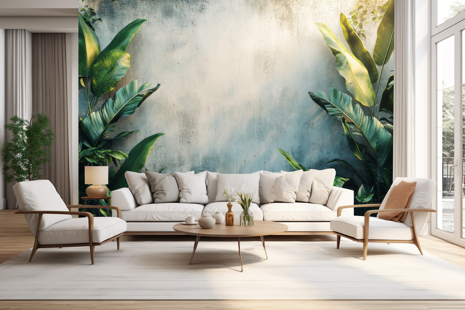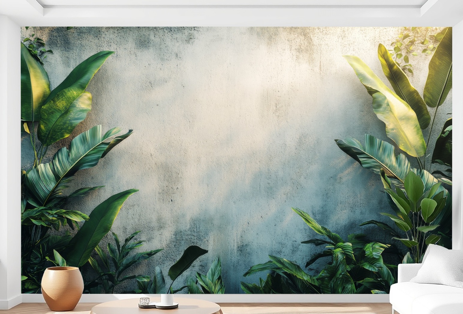 Fototapeta Tropikalne duże liście kwiaty na betonie Do salonu sypialni