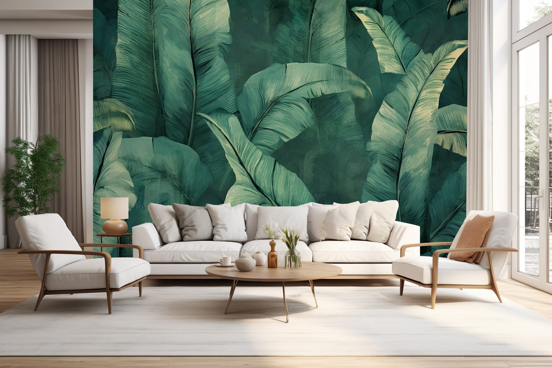 Fototapeta VERDE na ścianę do salonu sypialni TROPIKALNE ZIELONE LIŚCIE