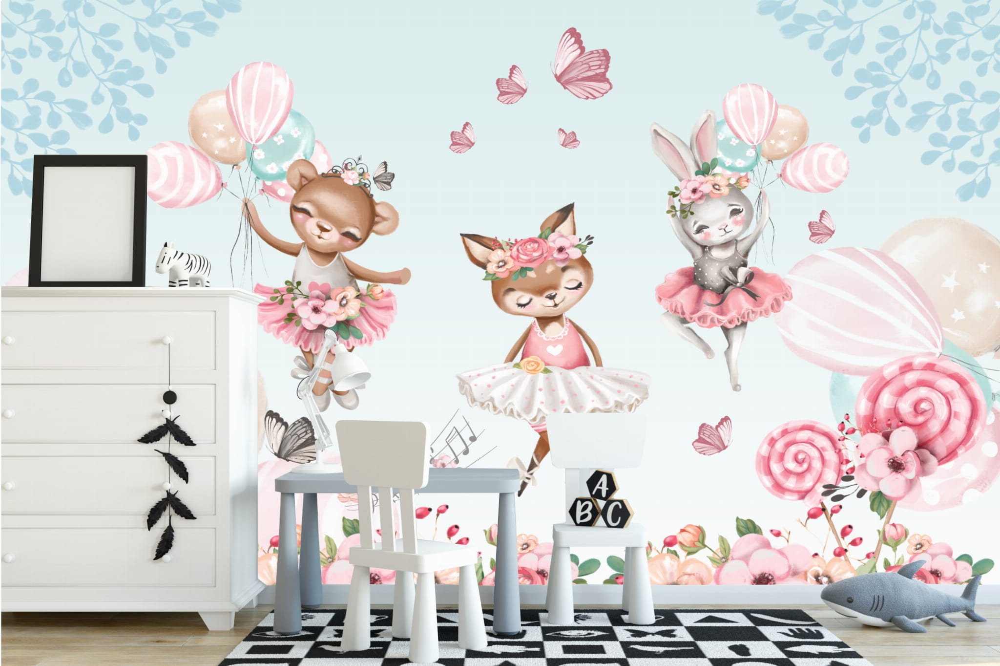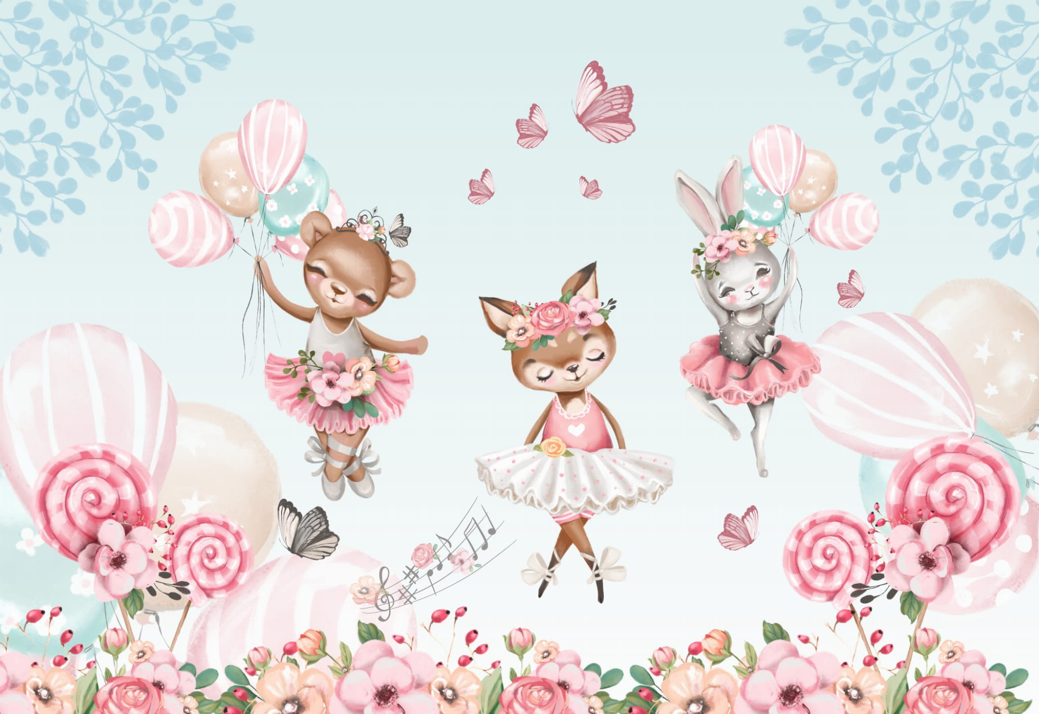 Fototapeta dla dzieci balony baletnice balet róż