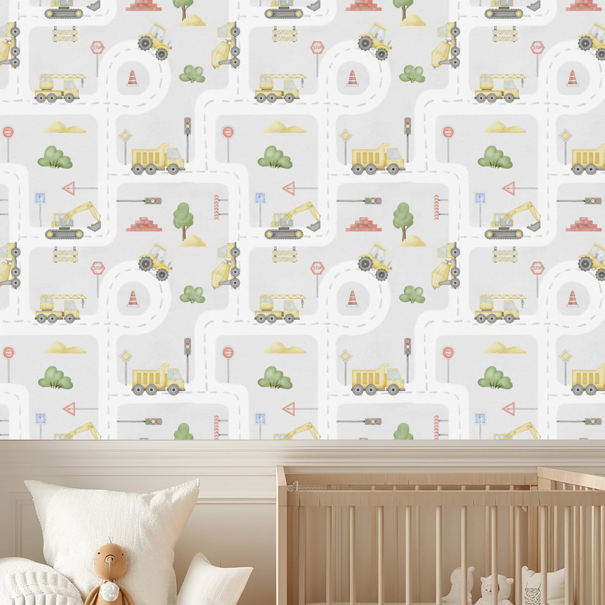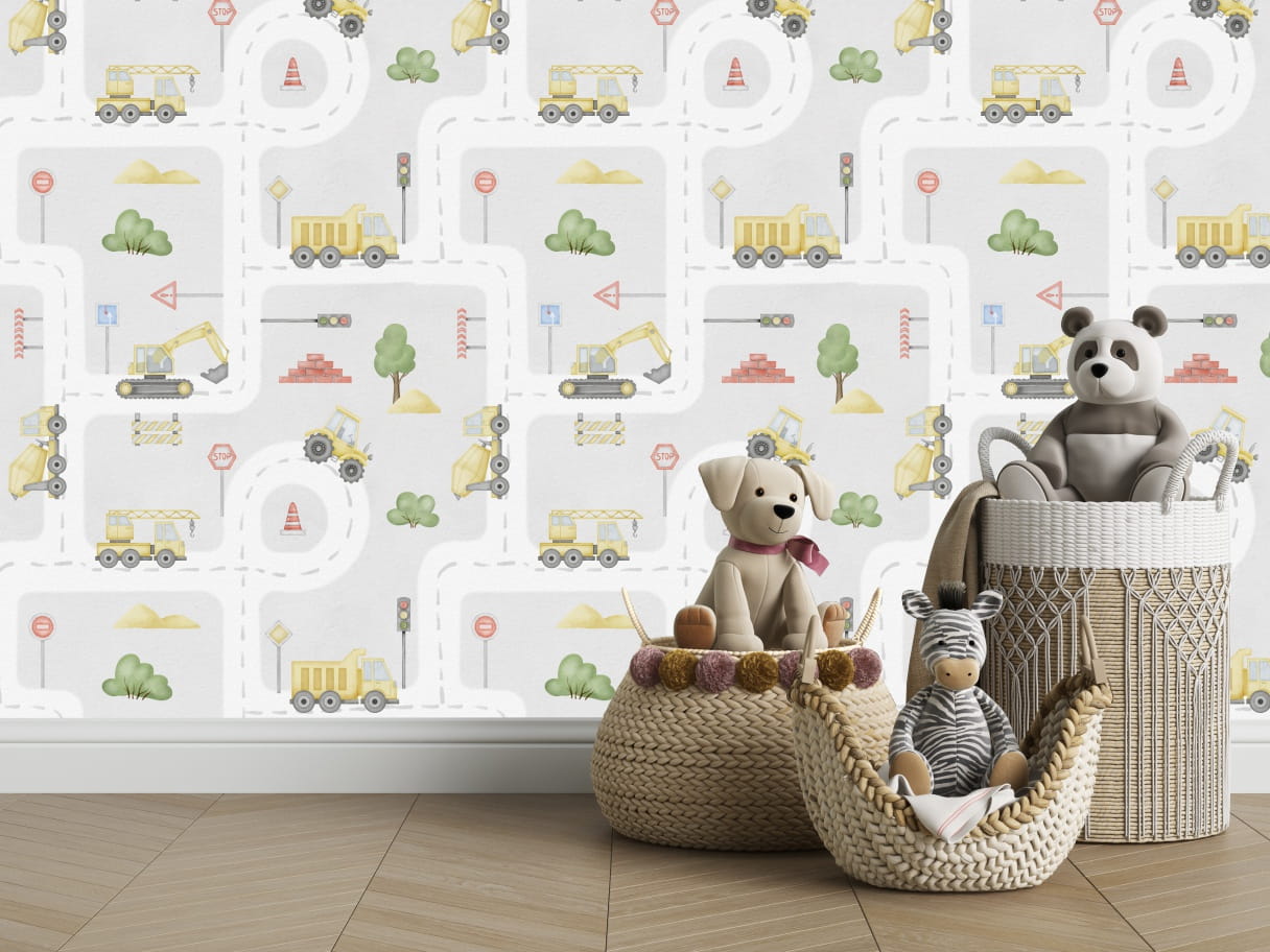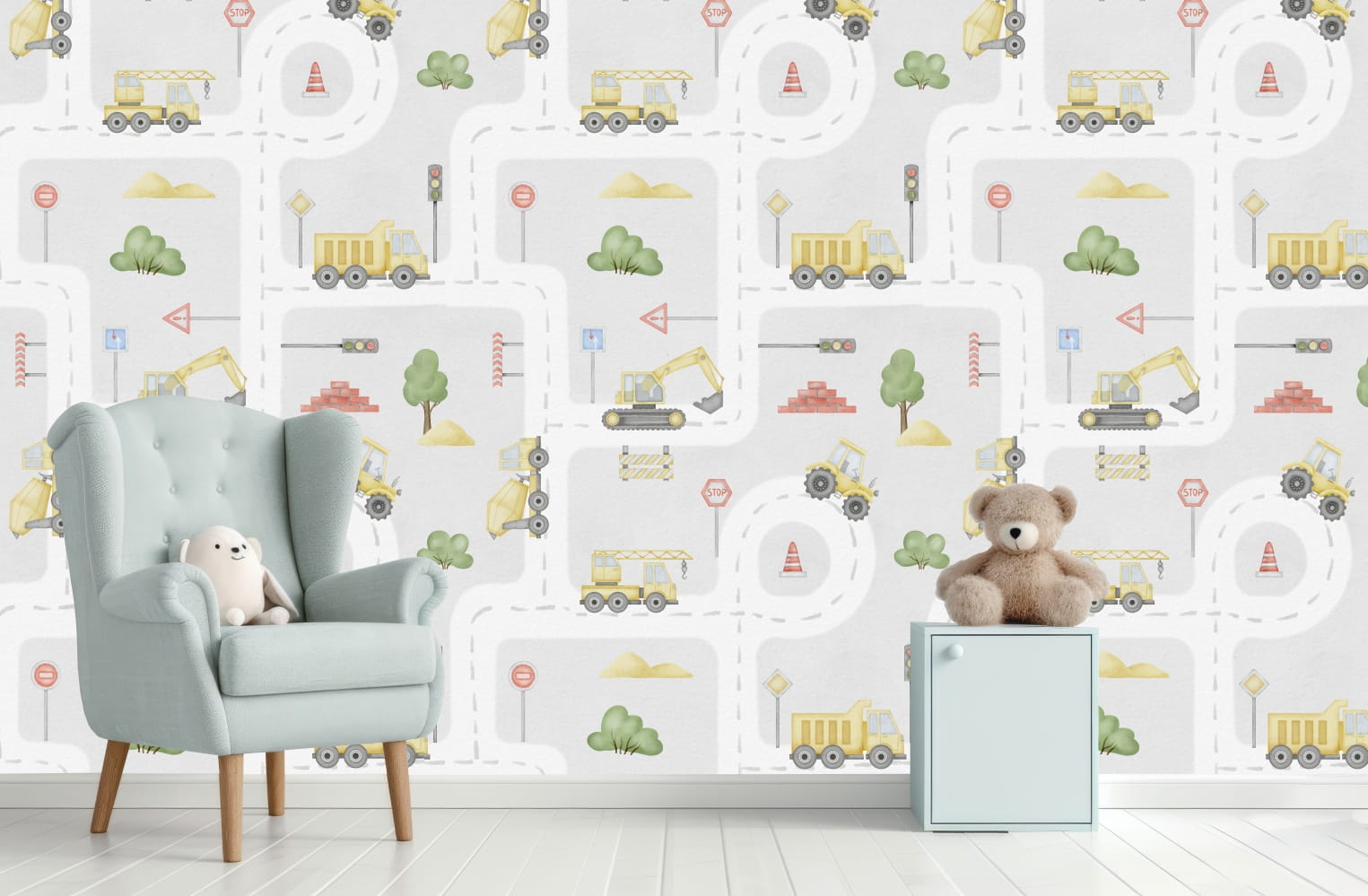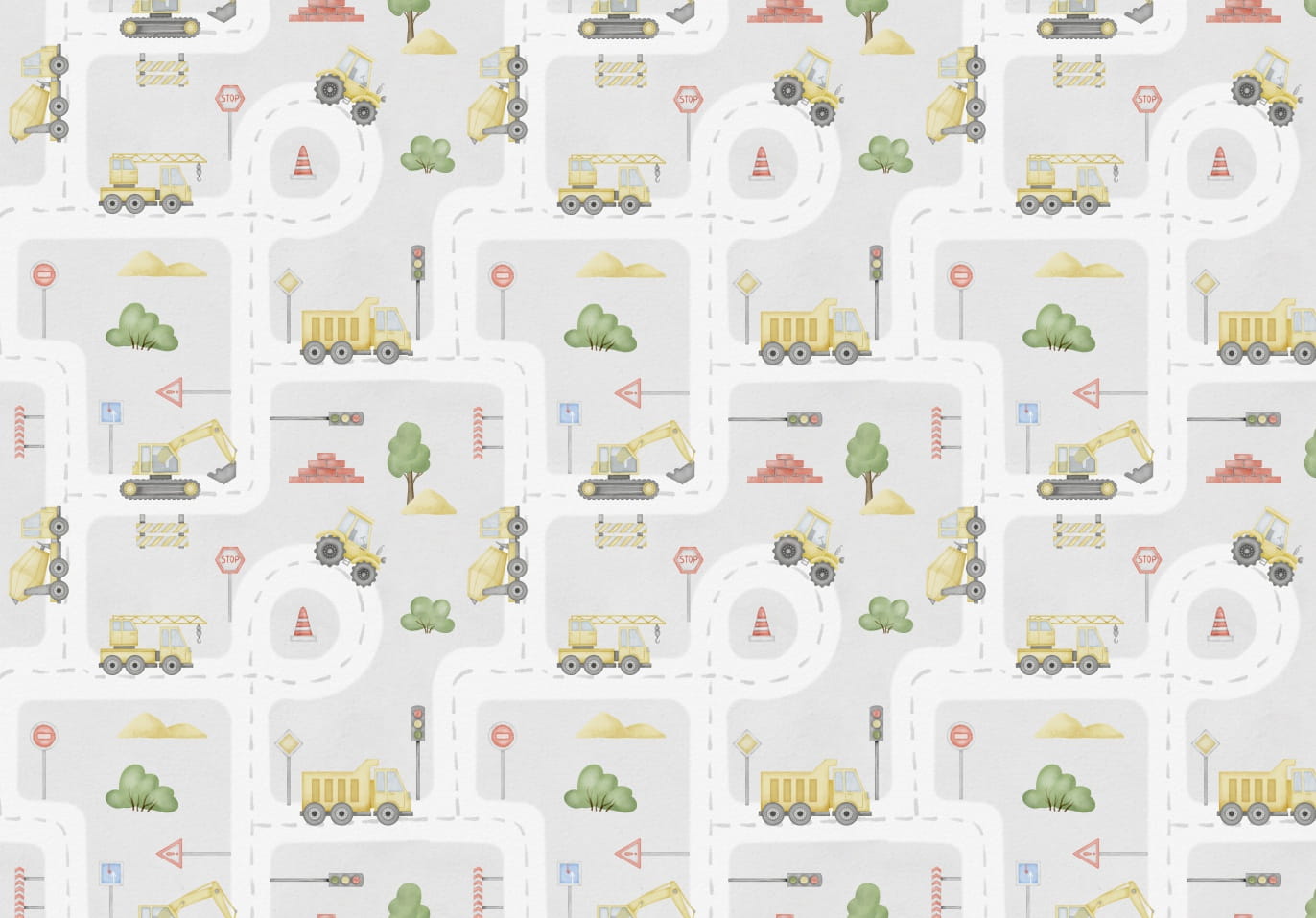 Fototapeta dla dzieci do pokoju KOPARKA TRAKTOR DROGA