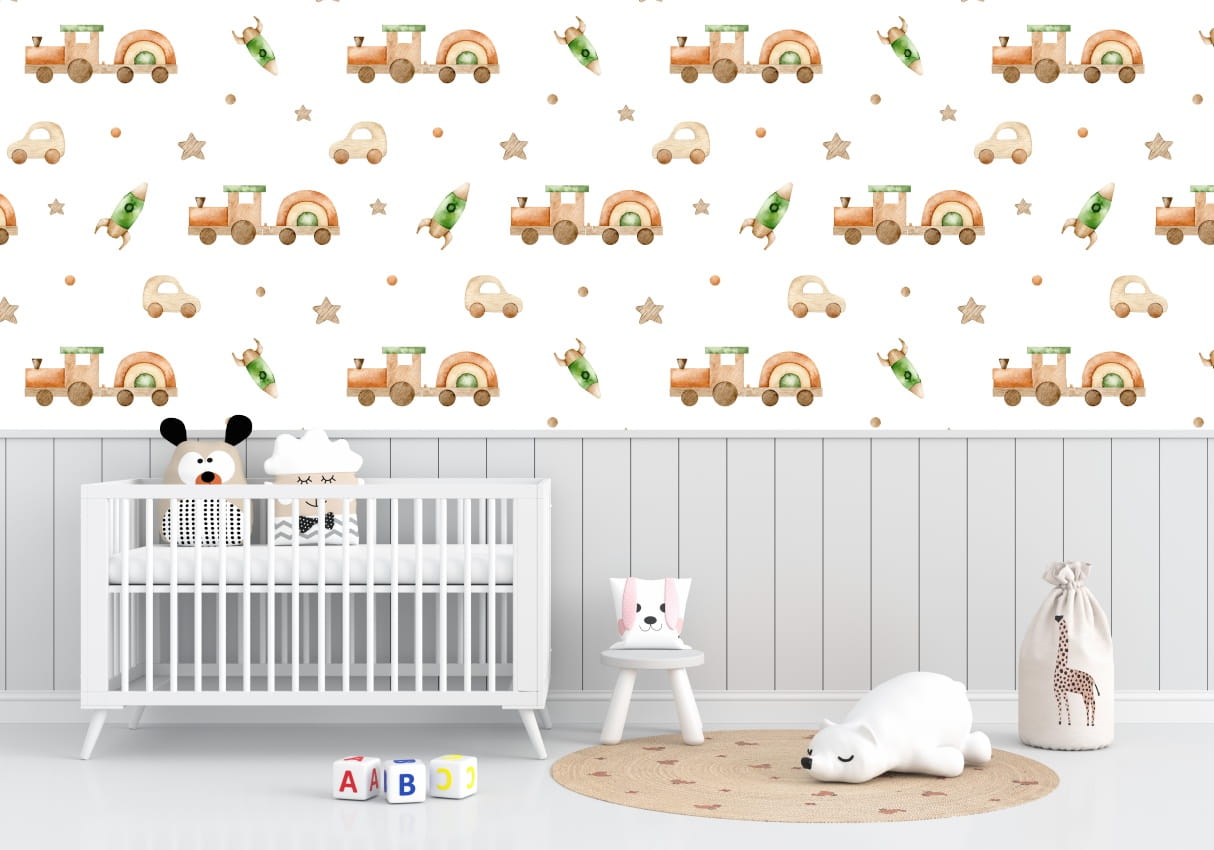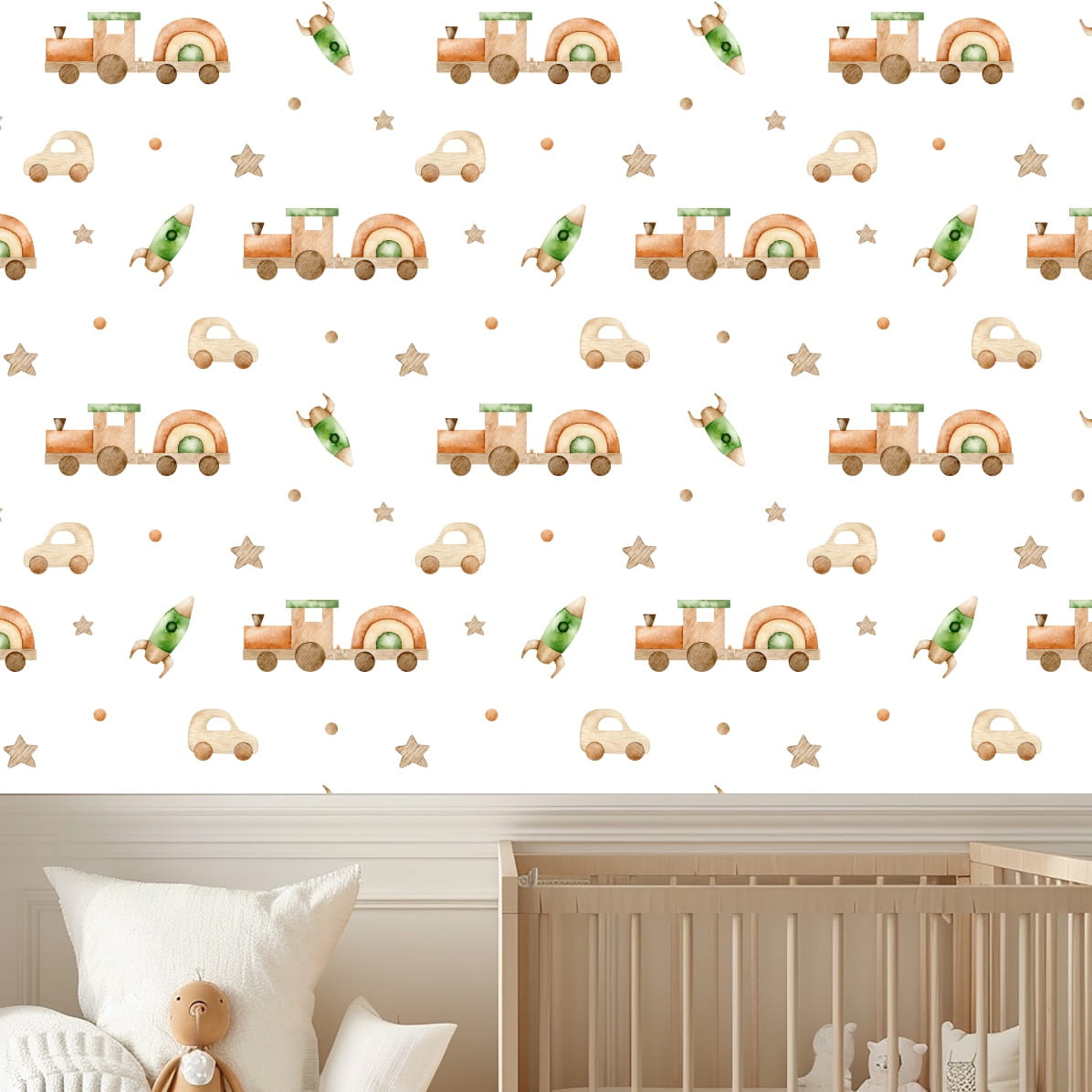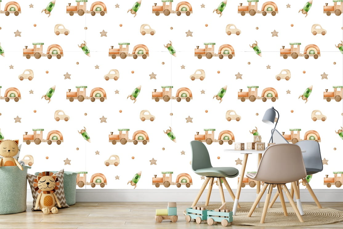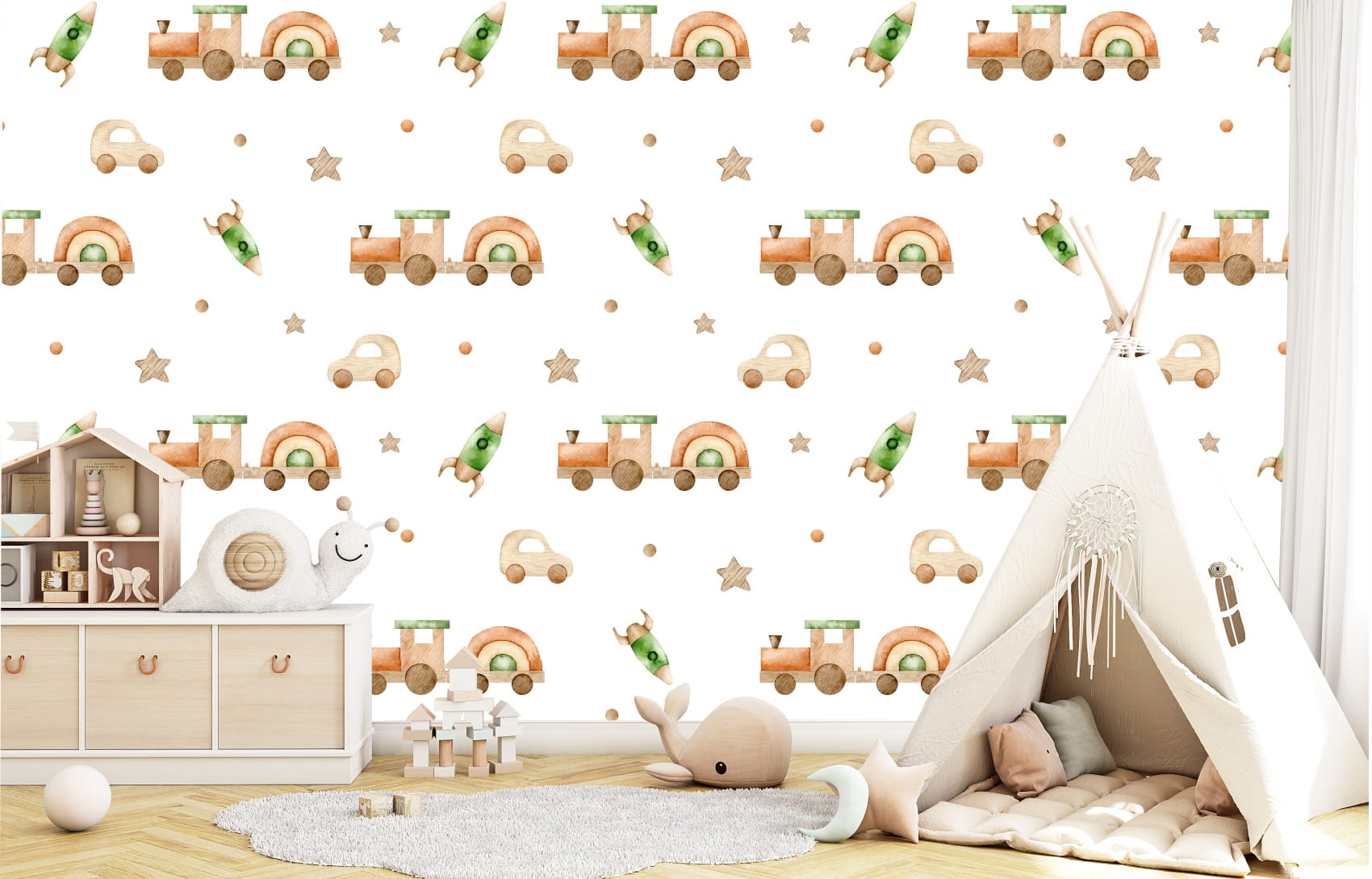 Fototapeta dla dzieci do pokoju POCIĄG GWIAZDKI RAKIETA