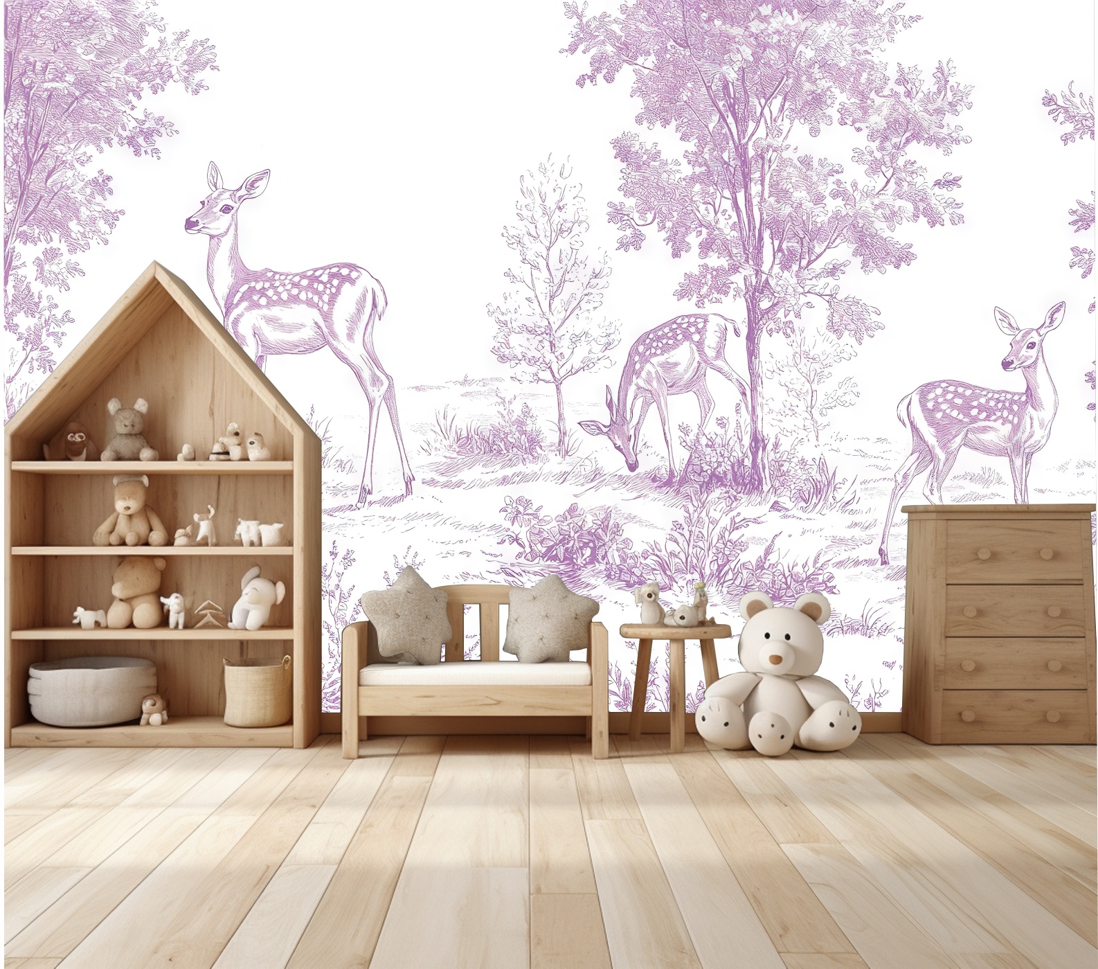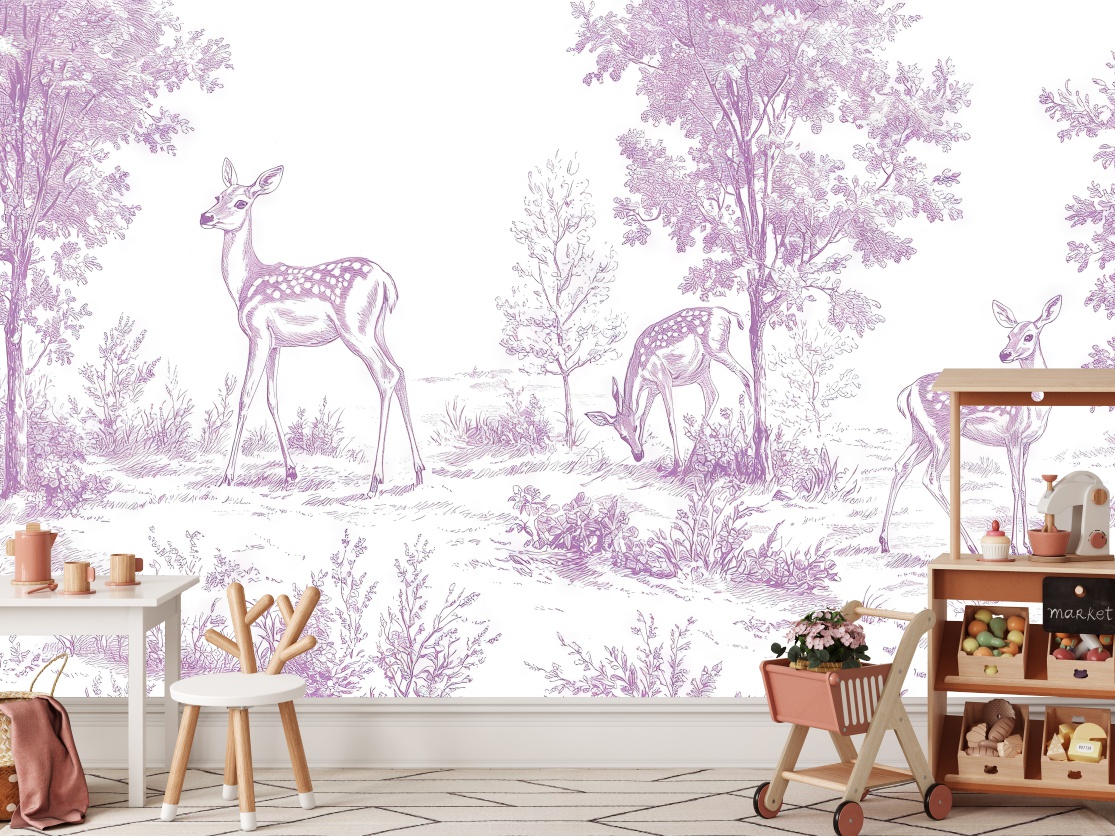 Fototapeta dla dzieci dziecięcy wzór LEŚNA POLANA ZWIERZĄTKA LAS