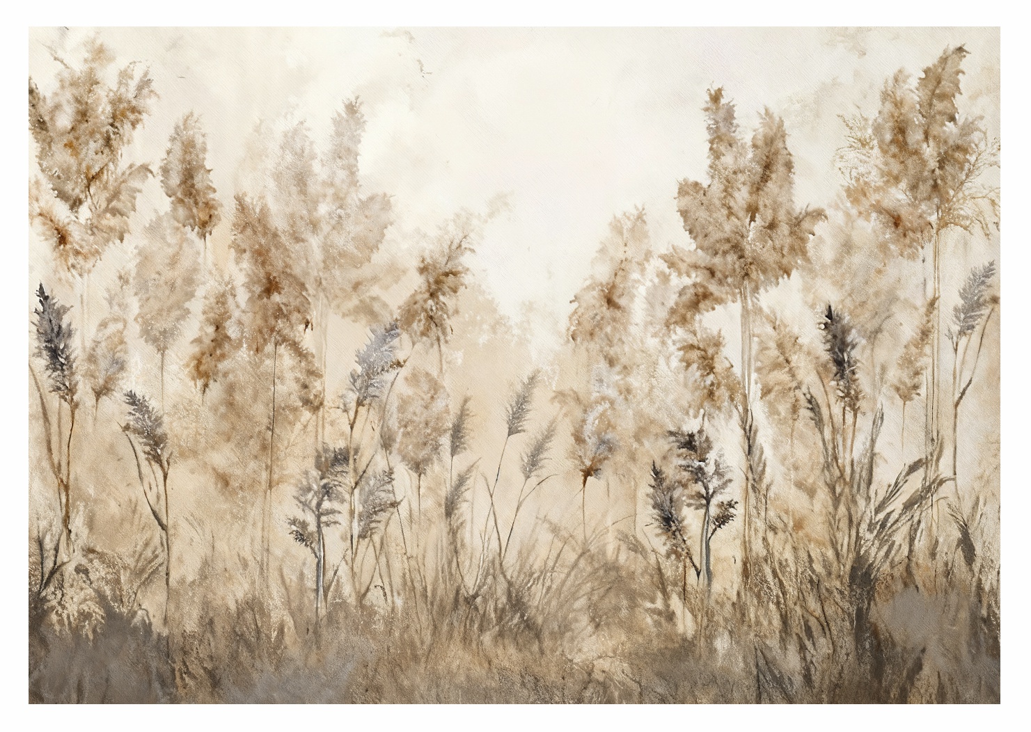 Fototapeta do salonu PIÓROPUSZE NA WIETRZE BOHO TRAWY premium na wymiar